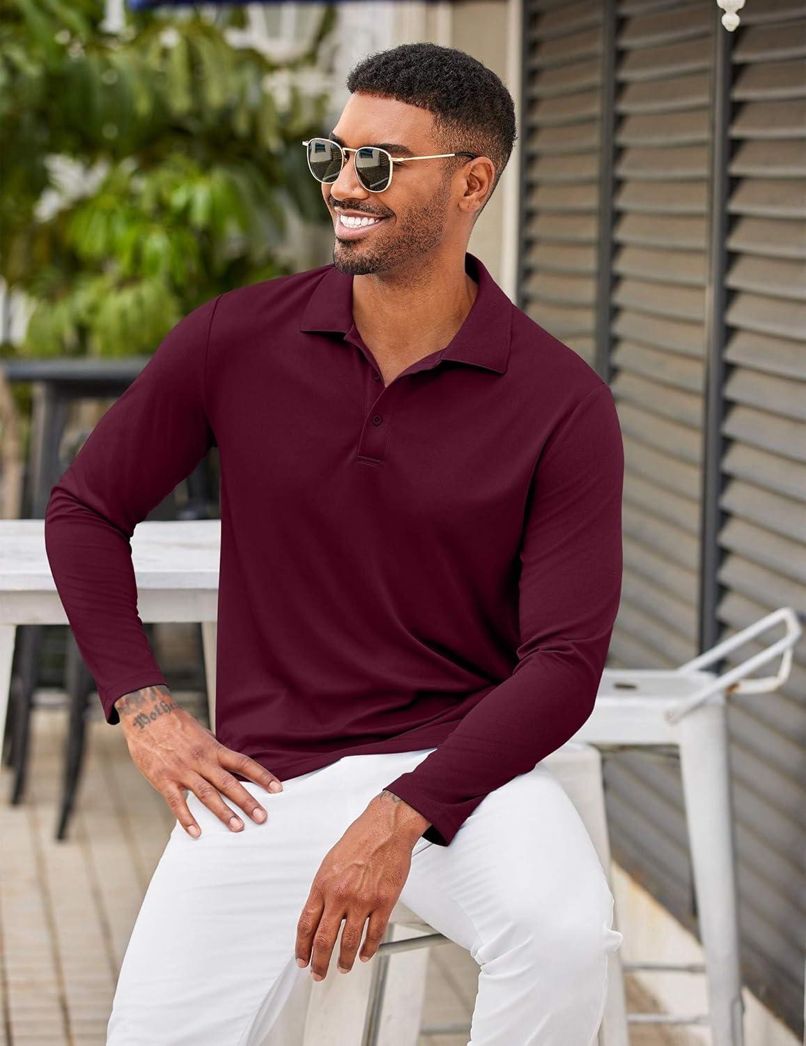 COOFANDY Men's Polo Shirt Long Sleeve Moisture Wicking Golf Shirts Sun Protection Collared Work Shirts(3 Pack Black & Dark Grey & Wine Red)