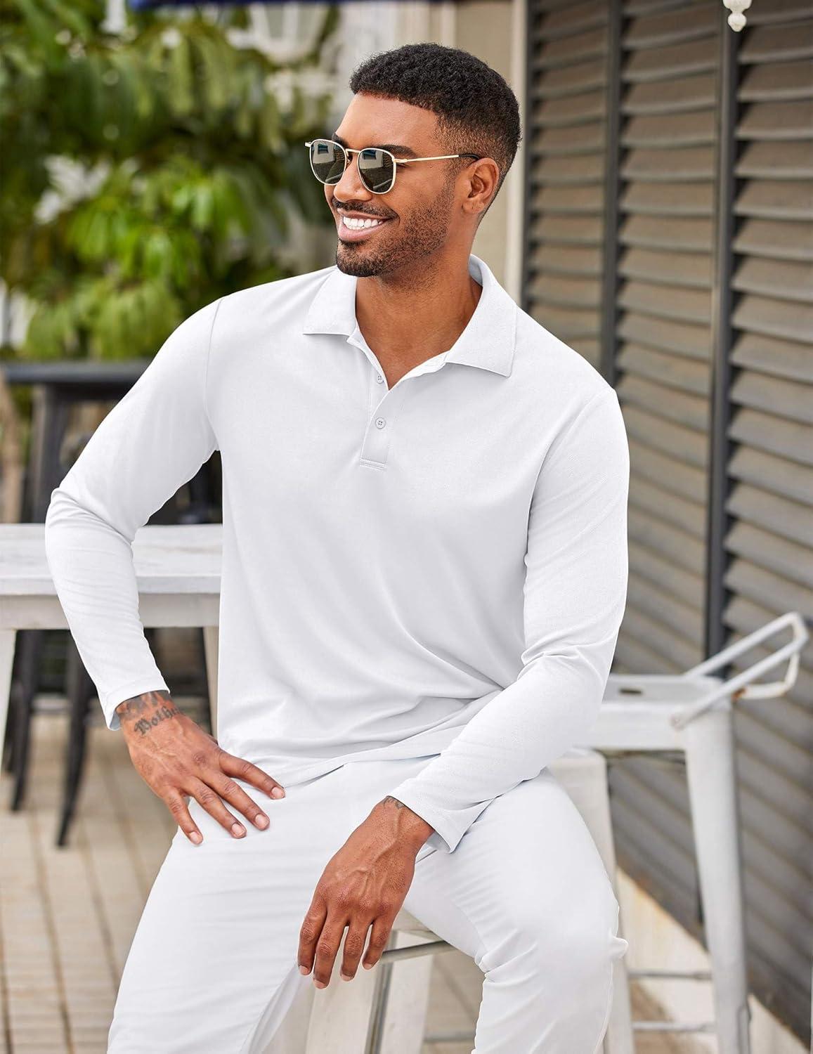 COOFANDY Men's Polo Shirt Long Sleeve Moisture Wicking Golf Shirts Sun Protection Collared Work Shirts(White)