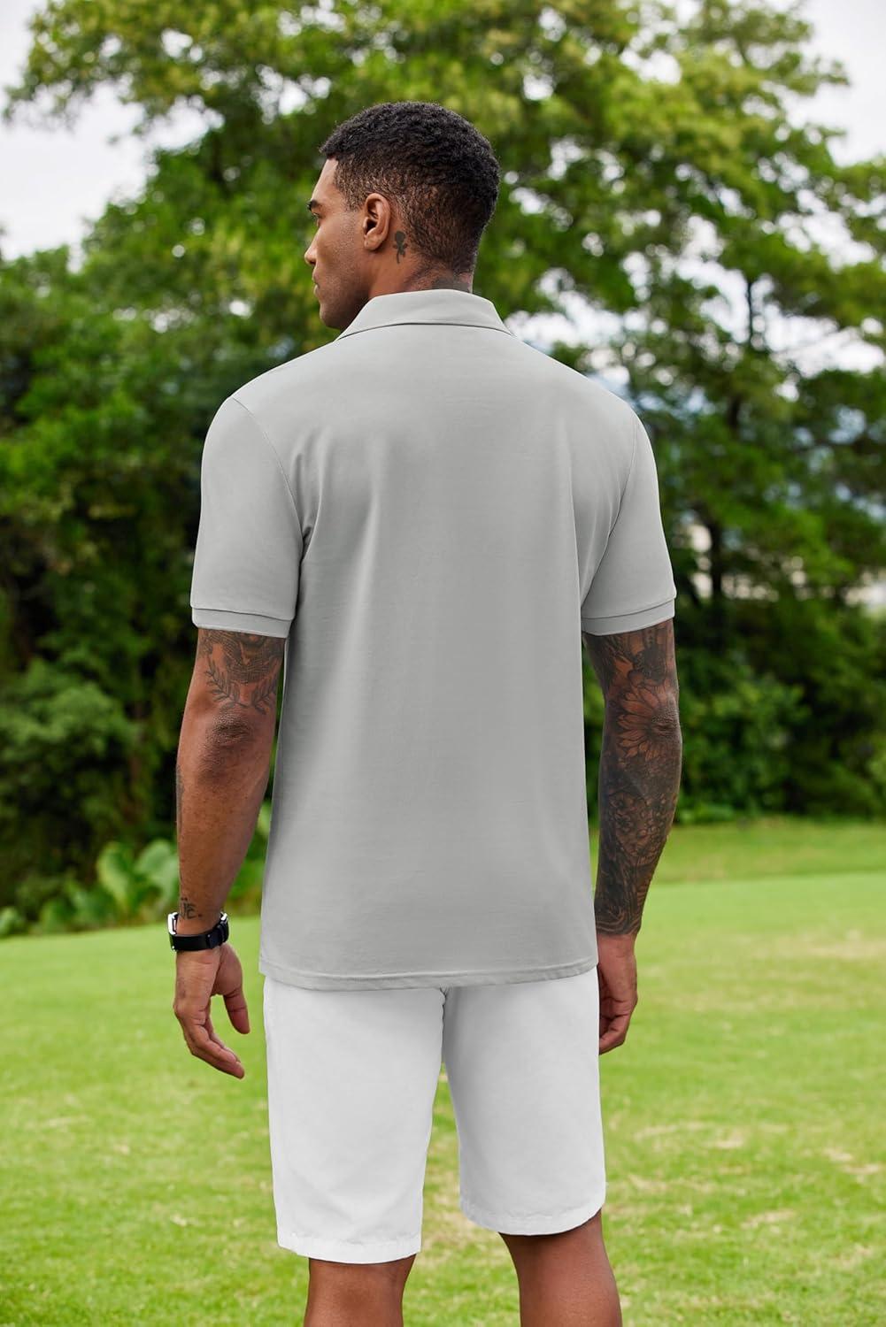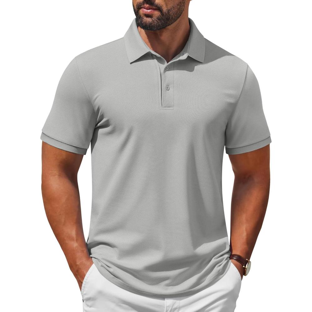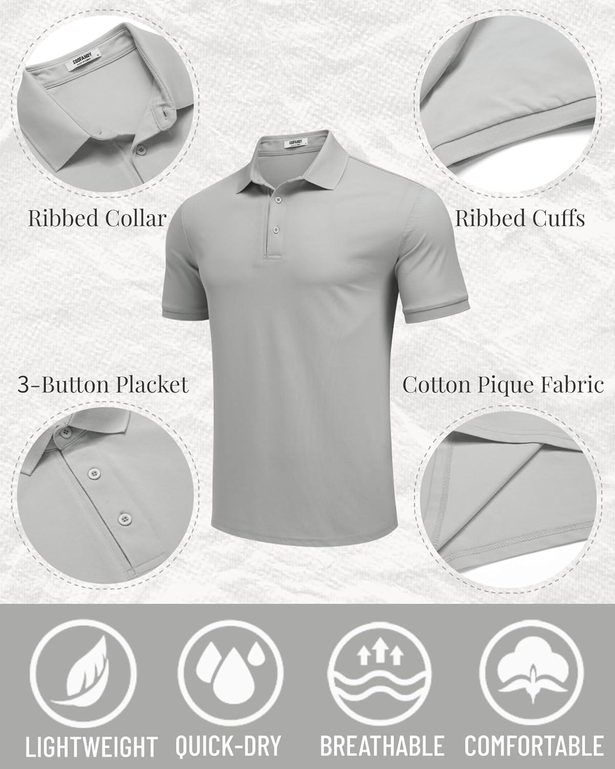 COOFANDY Mens Polo Shirt Short Sleeve Moisture Wicking Quick-Dry Golf Polo Athletic Tennis Collared T-Shirts(Grey)