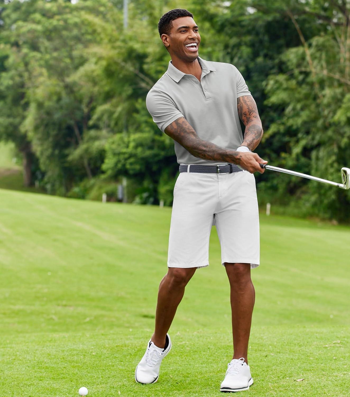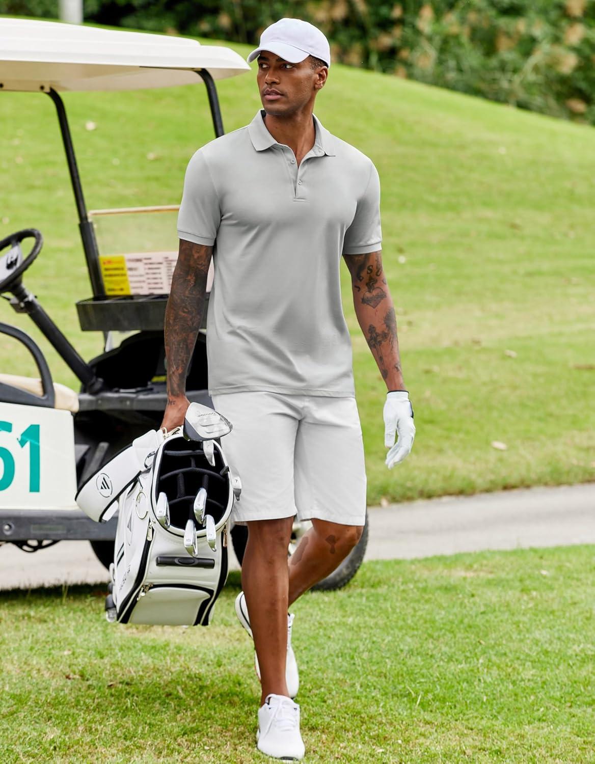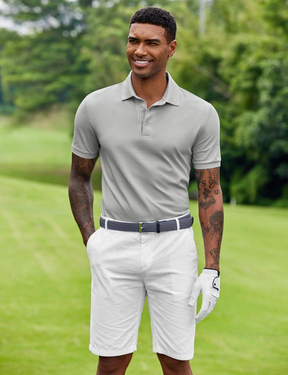COOFANDY Mens Polo Shirt Short Sleeve Moisture Wicking Quick-Dry Golf Polo Athletic Tennis Collared T-Shirts(Grey)