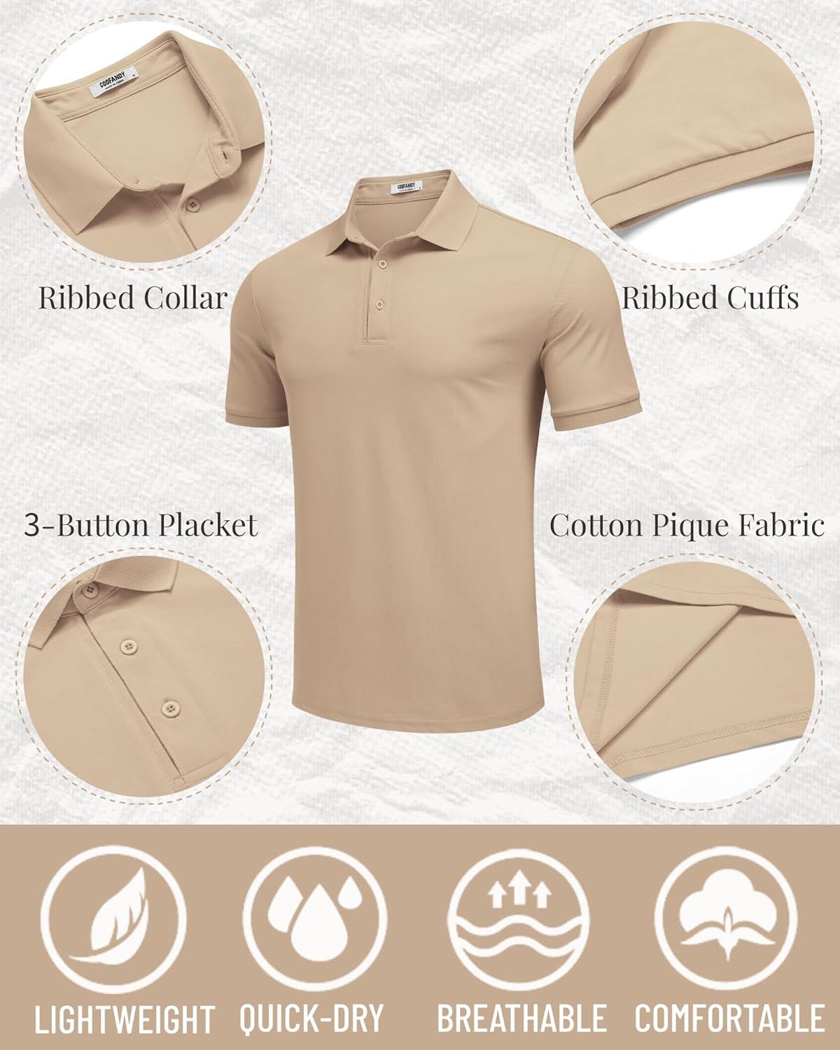 Don’t miss out on our limited-time offer: buy COOFANDY Mens Polo Shirt Short Sleeve Moisture Wicking Quick-Dry Golf Polo Athletic Tennis Collared T-Shirts(Khaki), get {accessory} free!