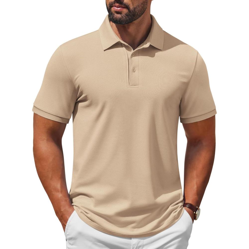 COOFANDY Mens Polo Shirt Short Sleeve Moisture Wicking Quick-Dry Golf Polo Athletic Tennis Collared T-Shirts(Khaki)