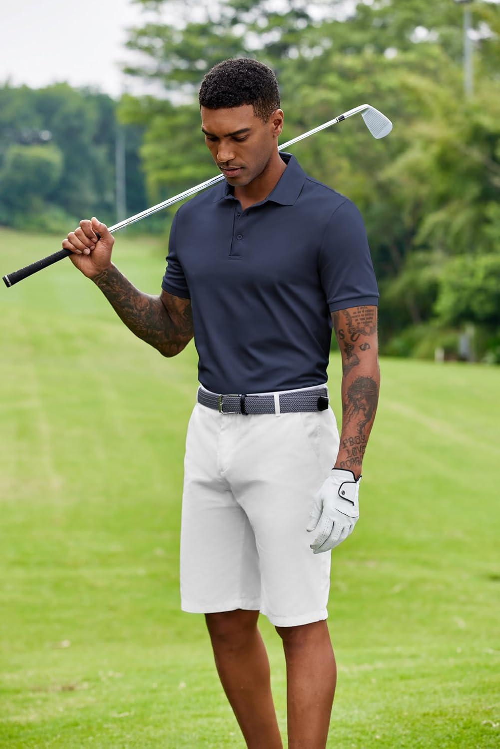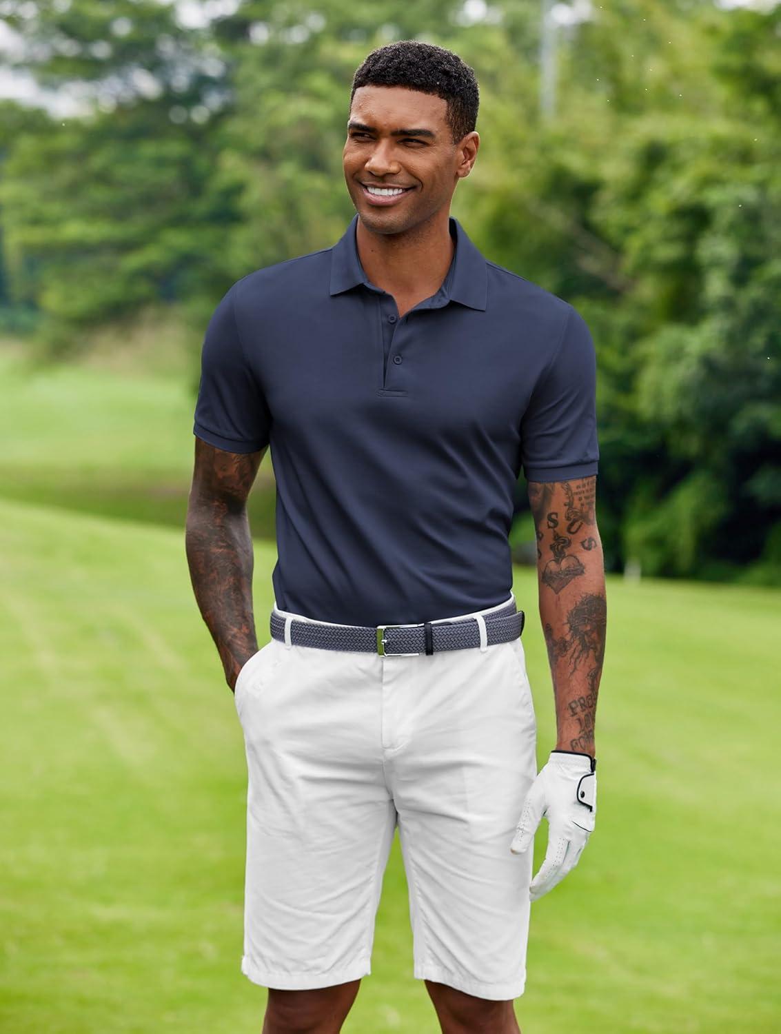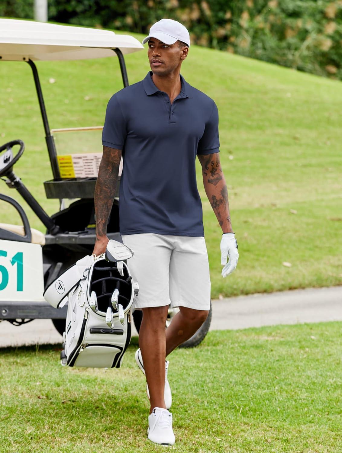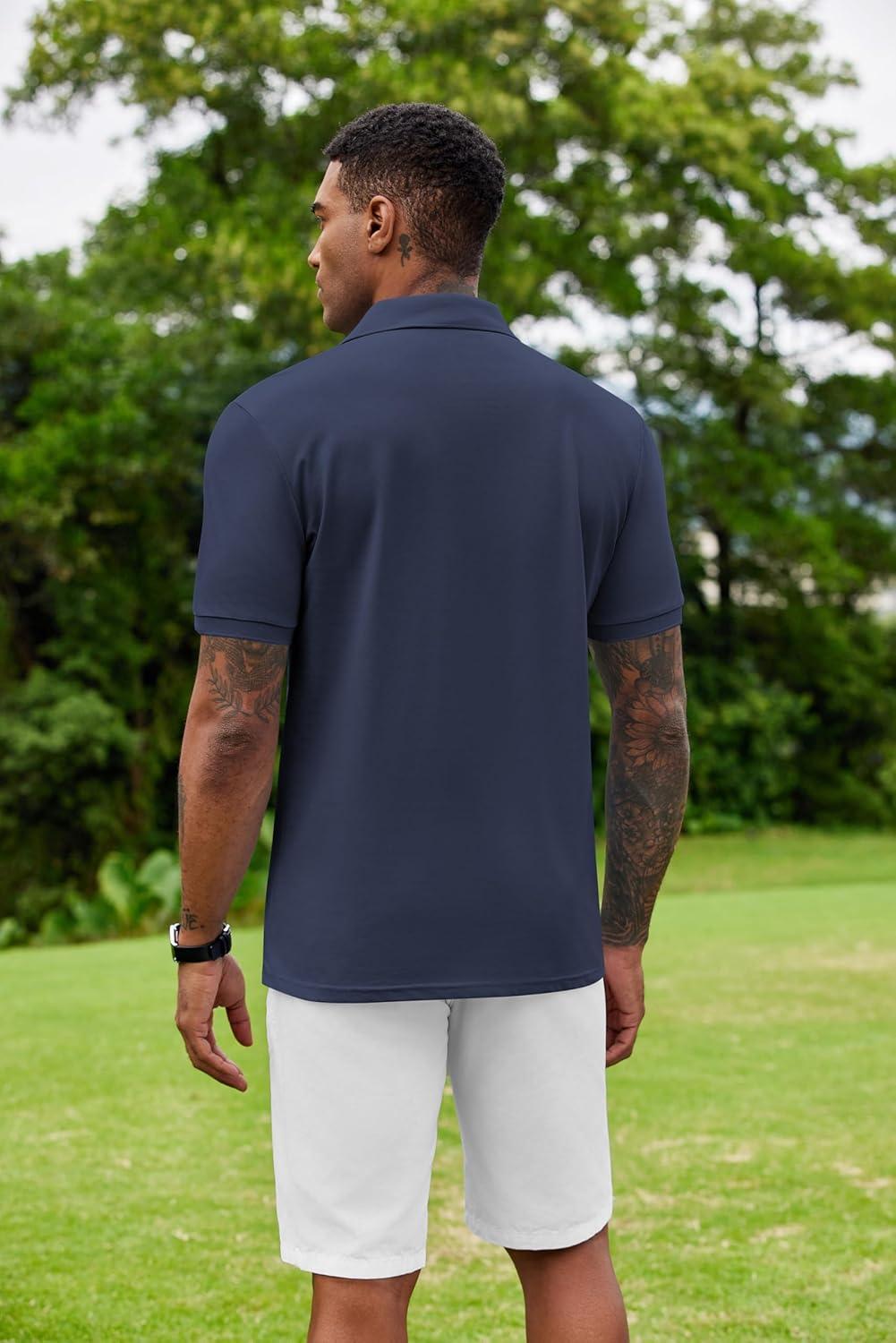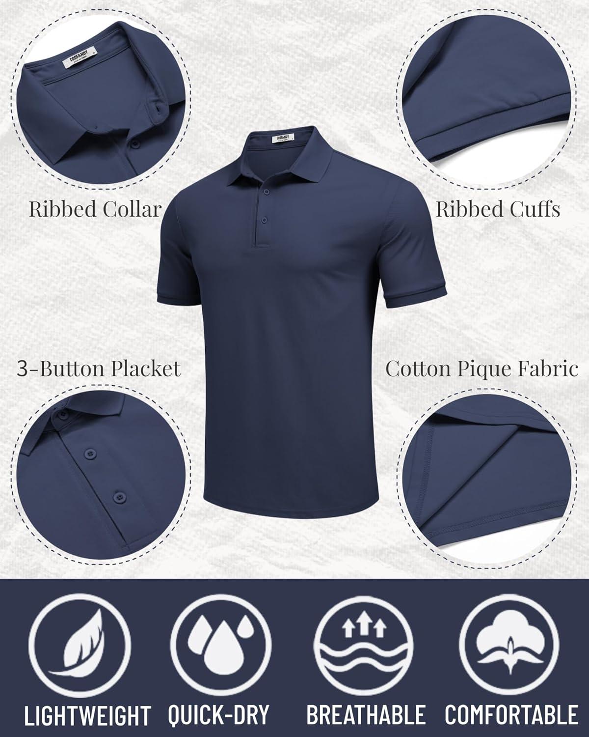 COOFANDY Mens Polo Shirt Short Sleeve Moisture Wicking Quick-Dry Golf Polo Athletic Tennis Collared T-Shirts(Navy Blue)