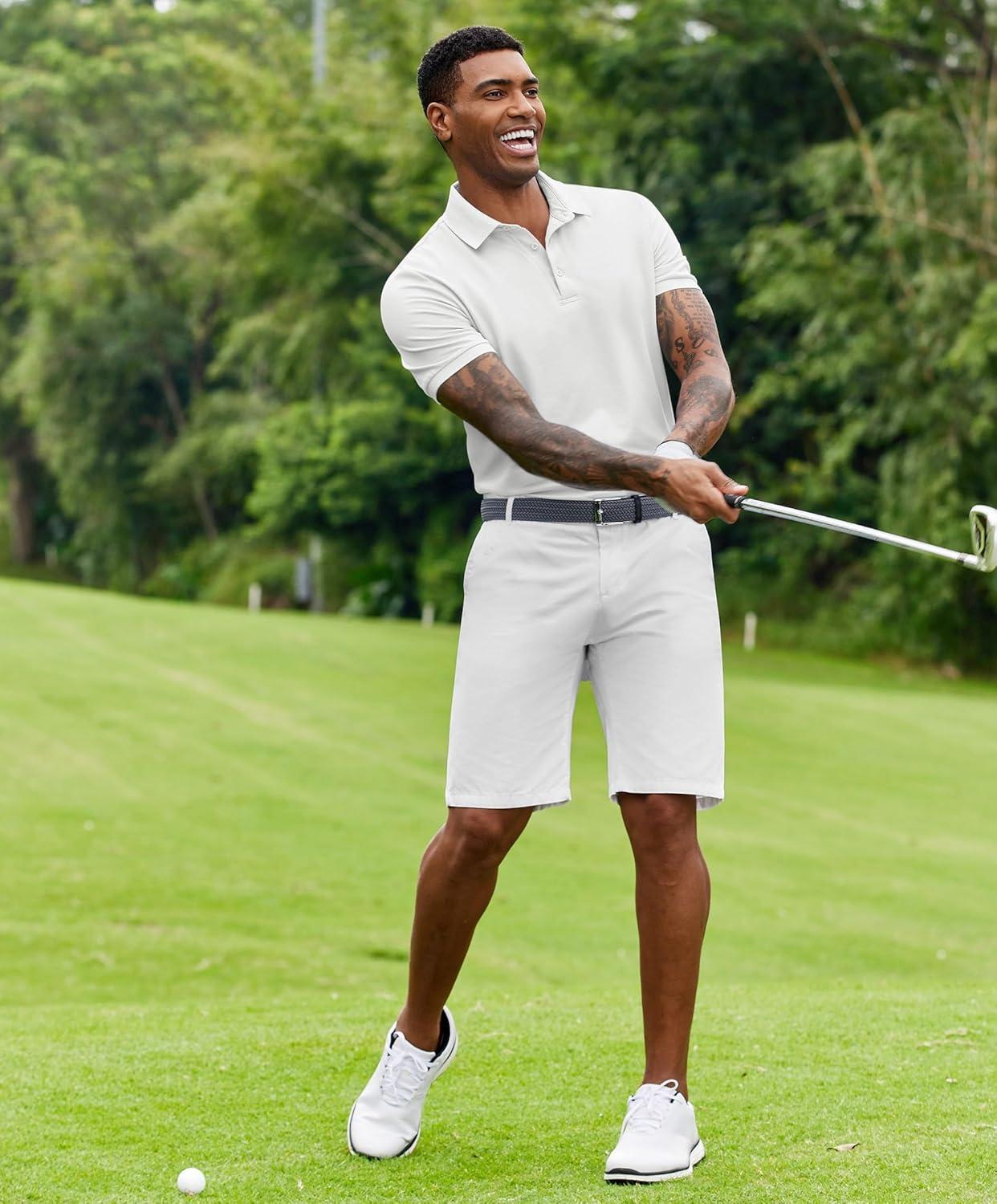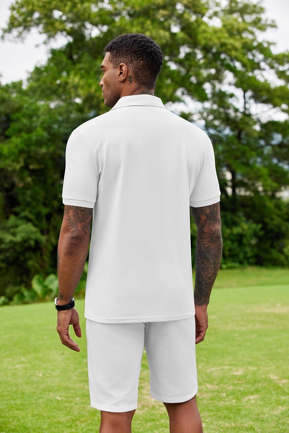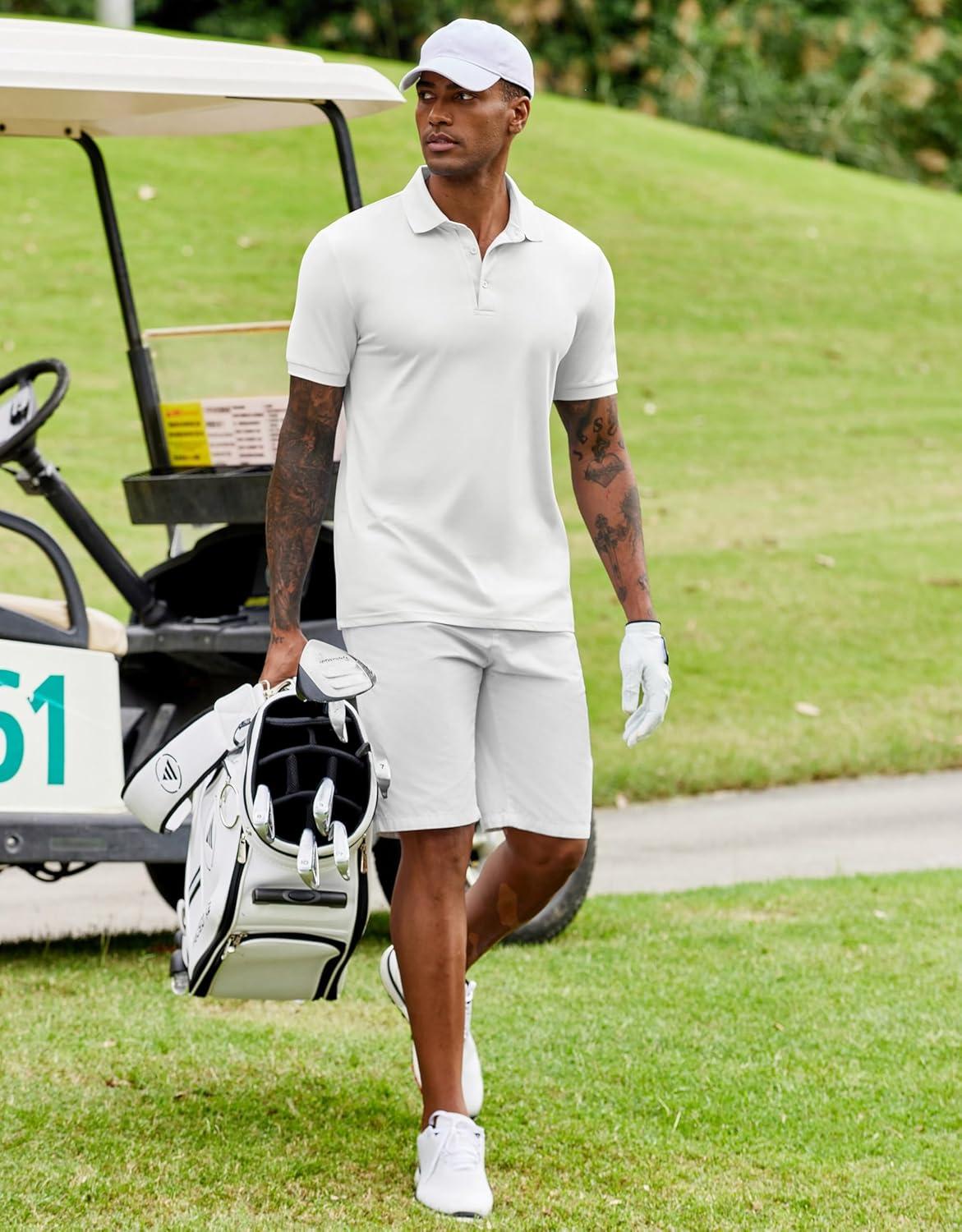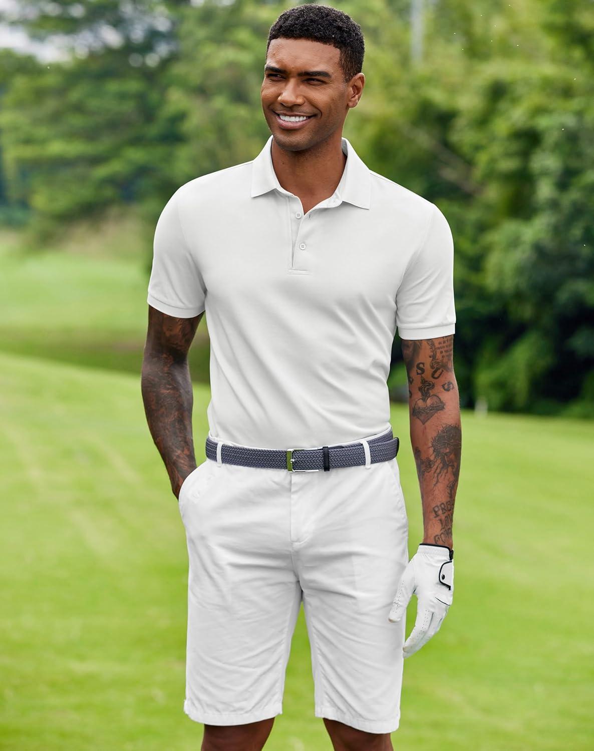 COOFANDY Mens Polo Shirt Short Sleeve Moisture Wicking Quick-Dry Golf Polo Athletic Tennis Collared T-Shirts(White)