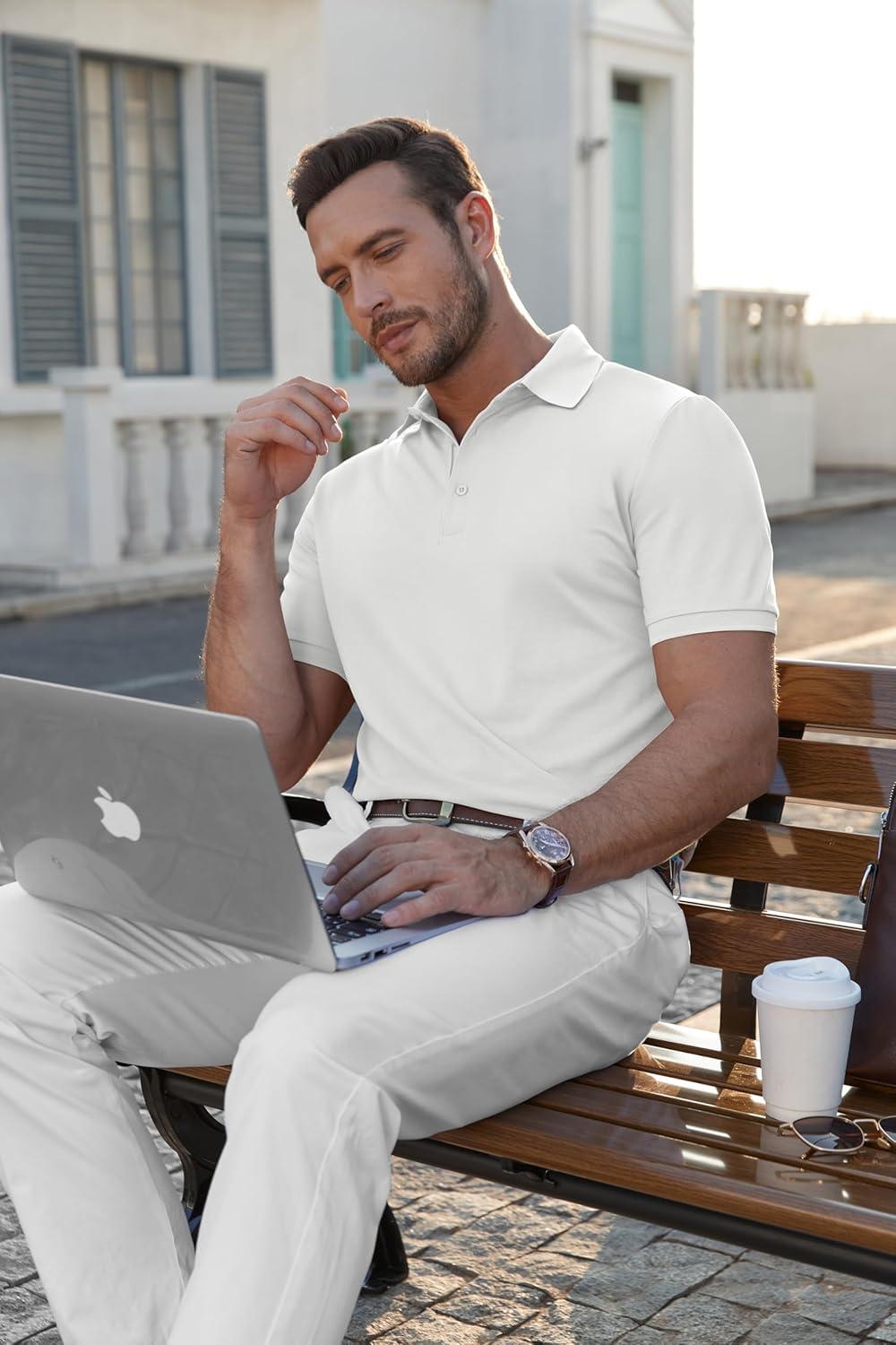 Don’t wait, get up to 50% off on COOFANDY Mens Polo Shirt Short Sleeve Moisture Wicking Quick-Dry Golf Polo Athletic Tennis Collared T-Shirts(White) during our end-of-season sale event.