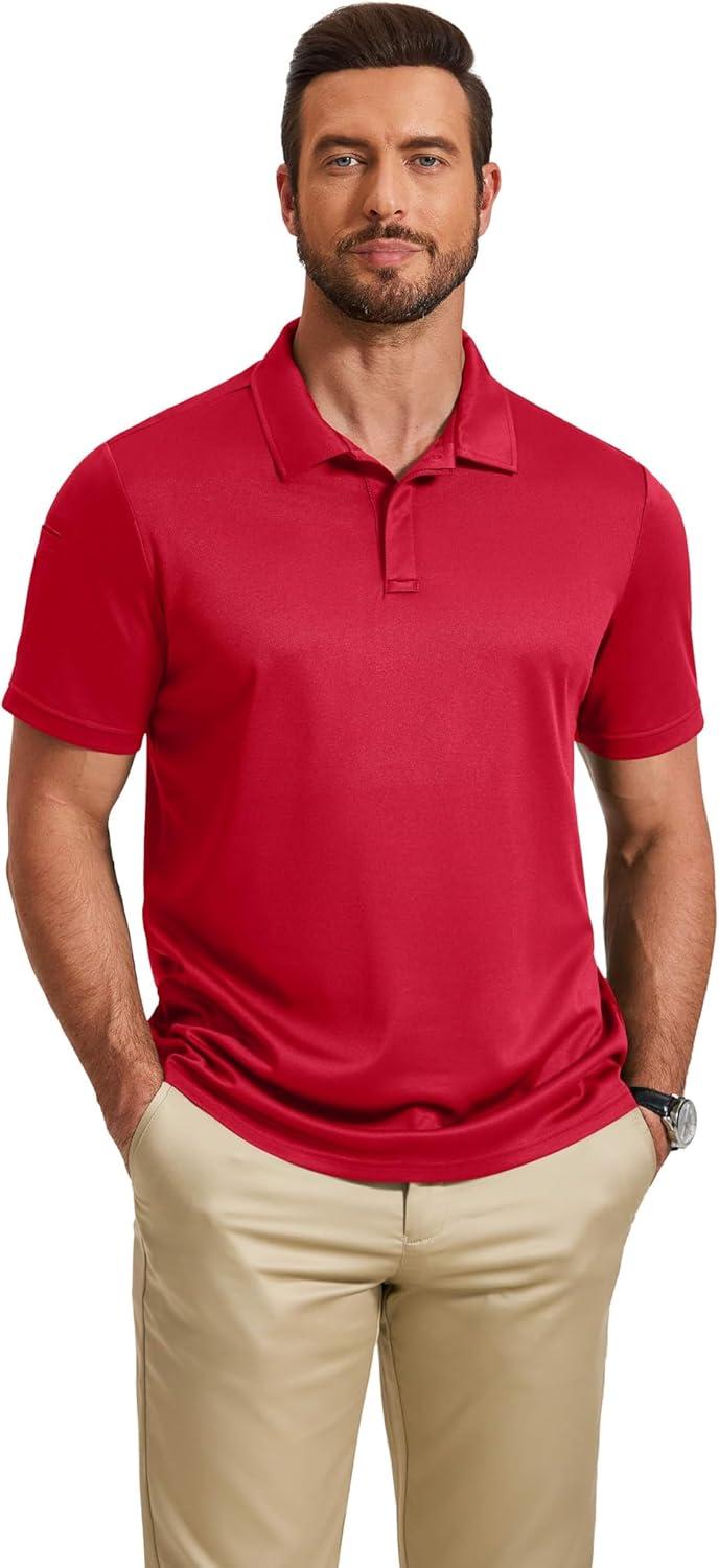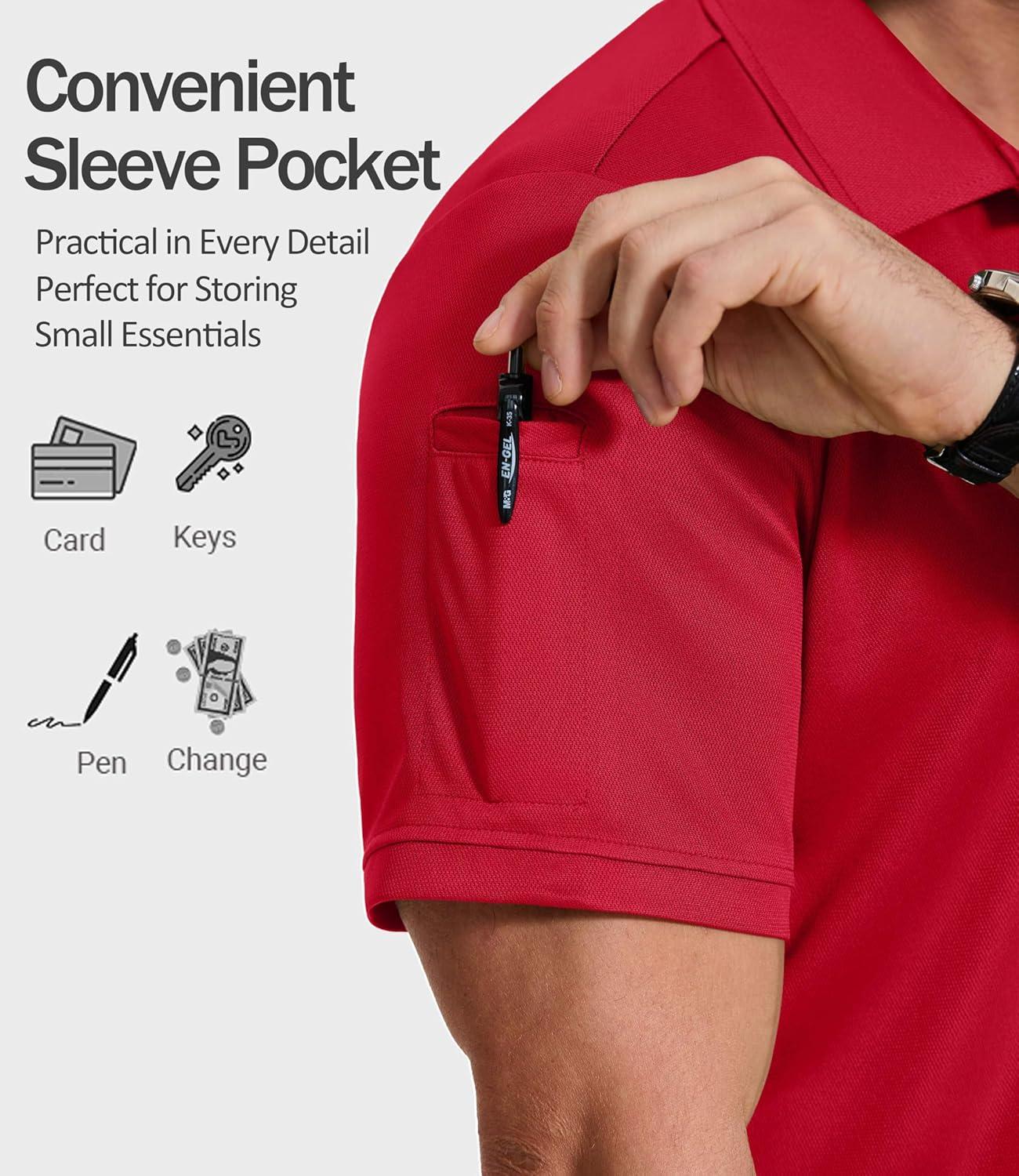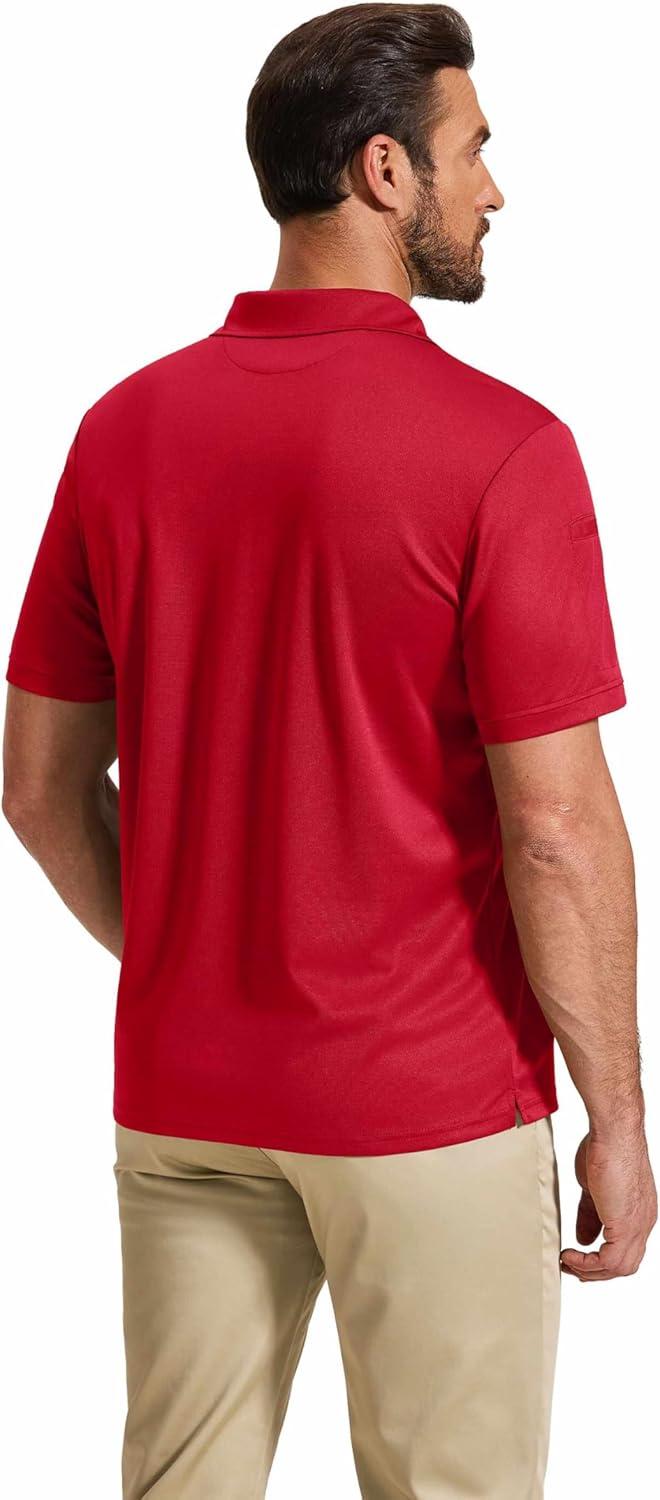 COOFANDY Mens Polo Shirt Short Sleeve Quick Dry Tactical Shirts Golf Polos Collared Work Shirts for Men with Pocket(Red)
