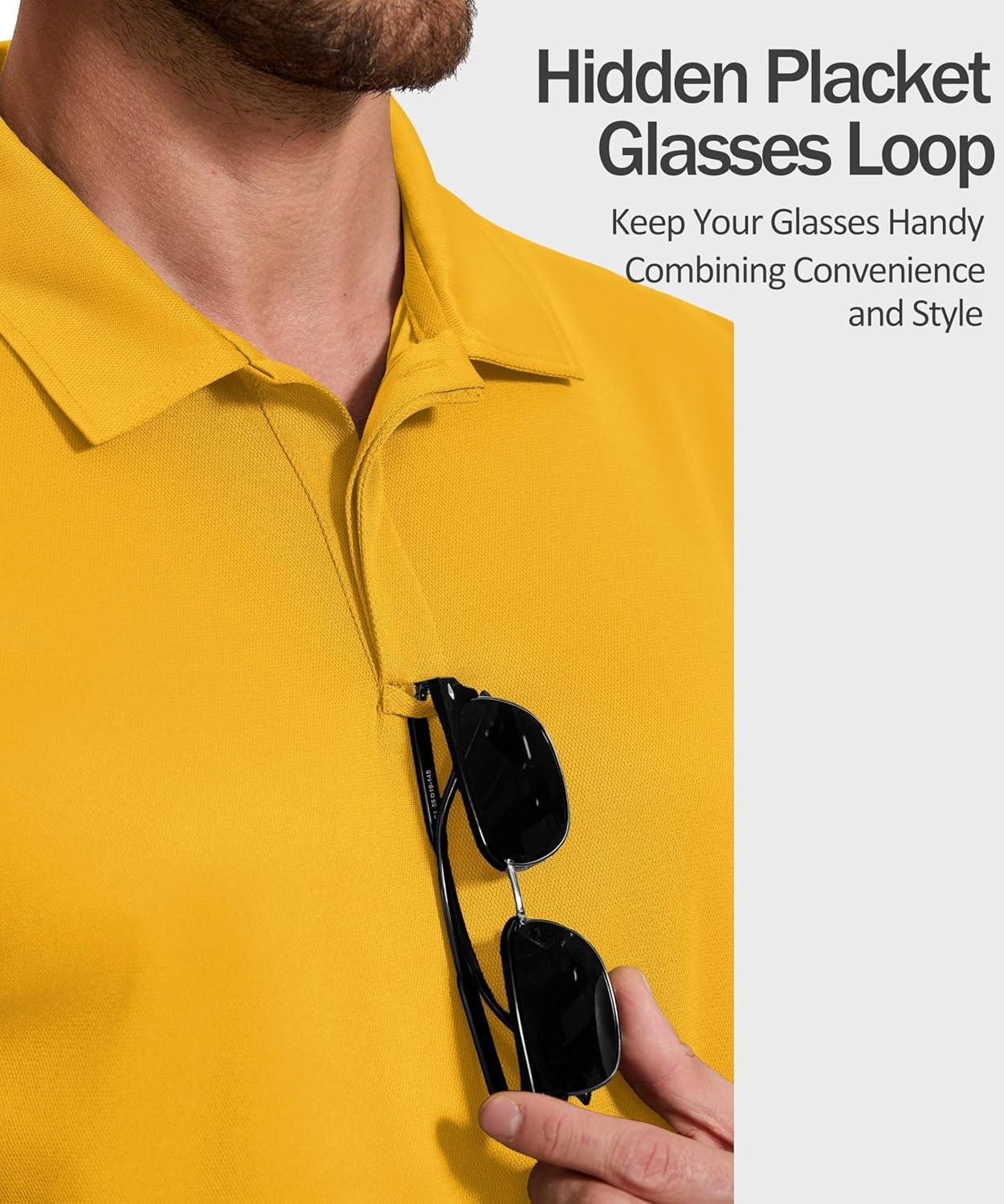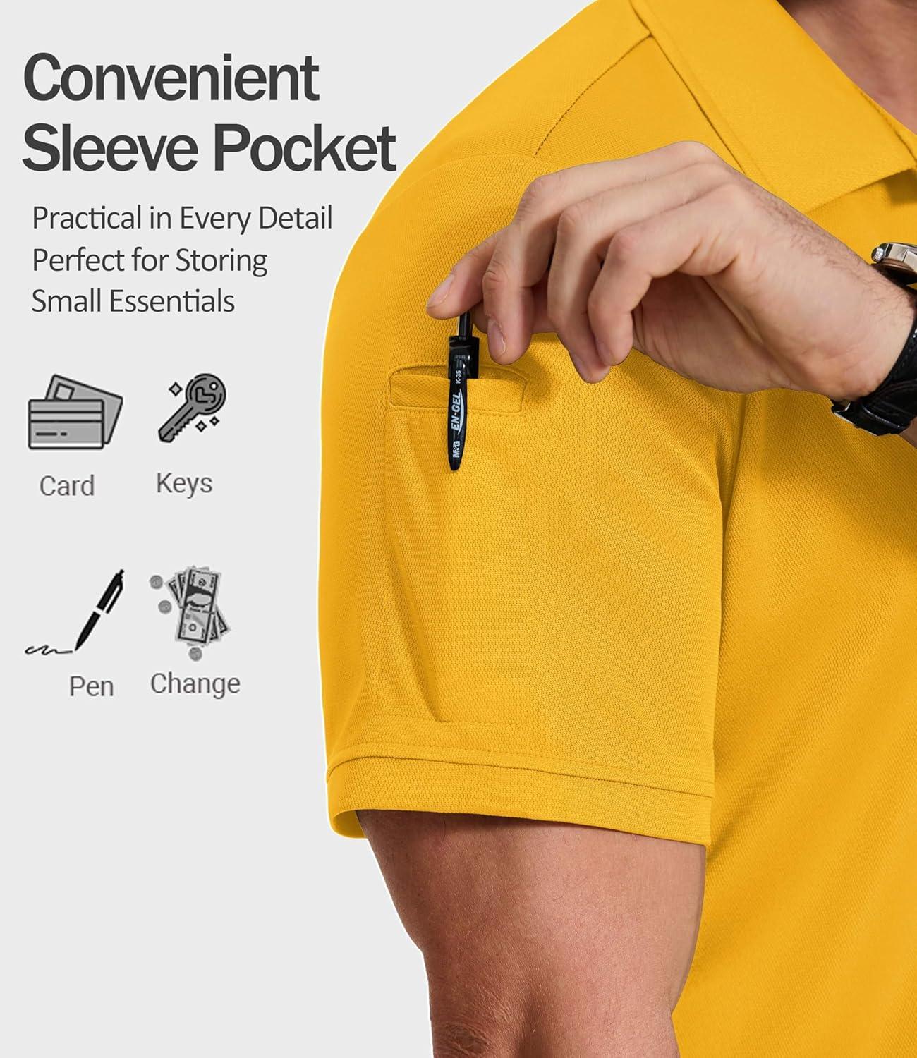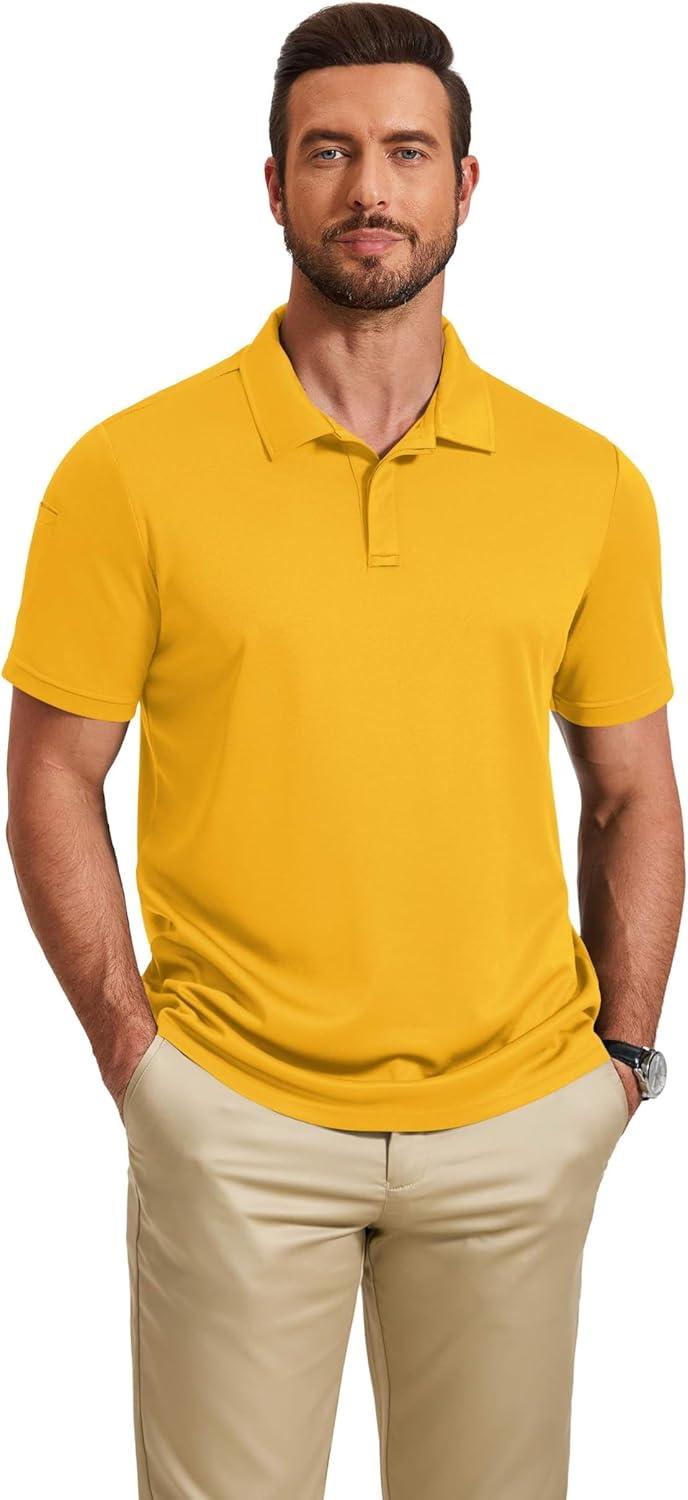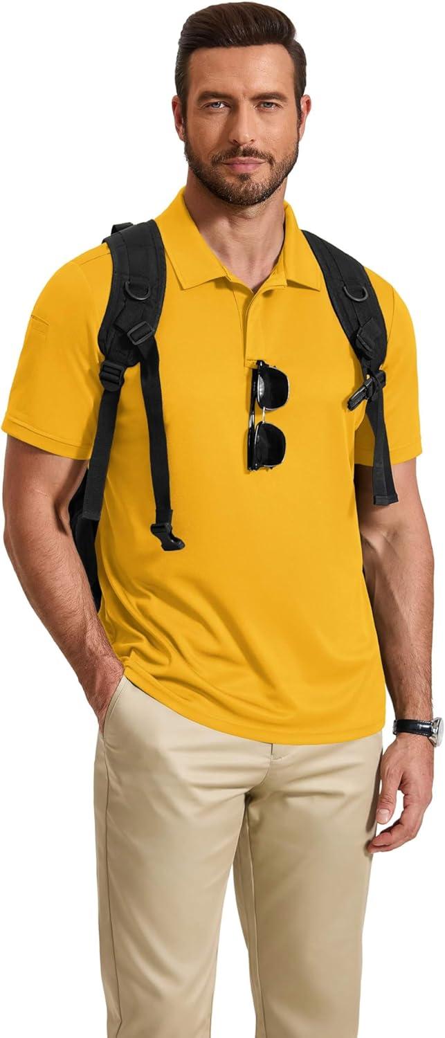 COOFANDY Mens Polo Shirt Short Sleeve Quick Dry Tactical Shirts Golf Polos Collared Work Shirts for Men with Pocket(Yellow)