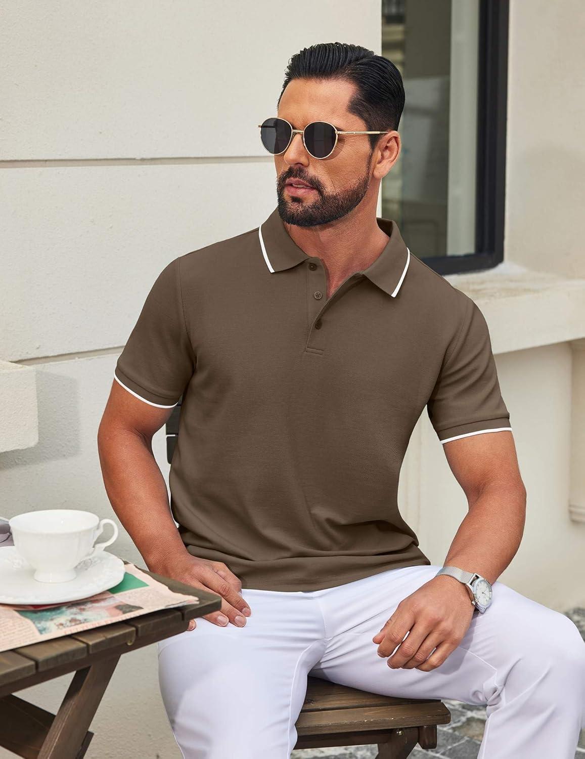 COOFANDY Men’s Polo Shirts Classic Short Sleeve Polo T Shirts Cotton Pique Casual Summer Fashion Golf Shirt(Beige)