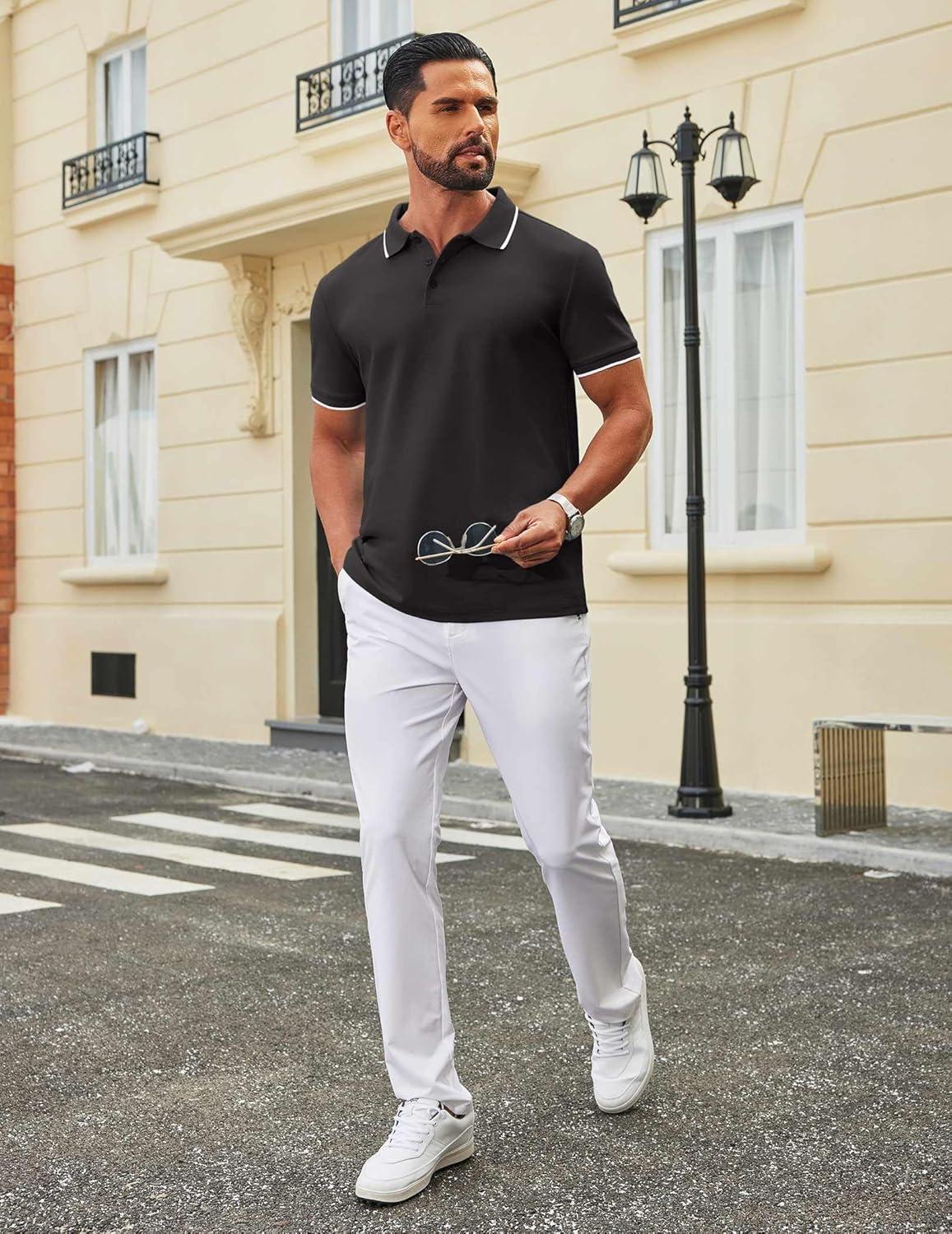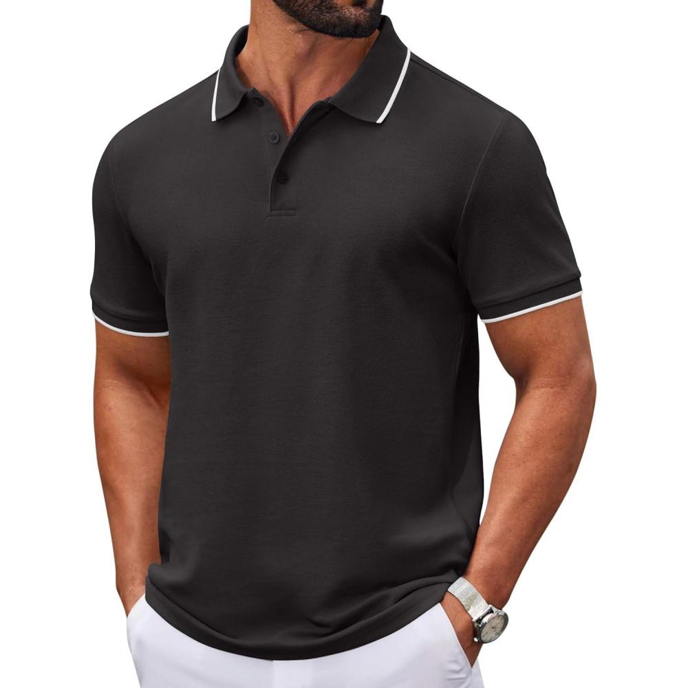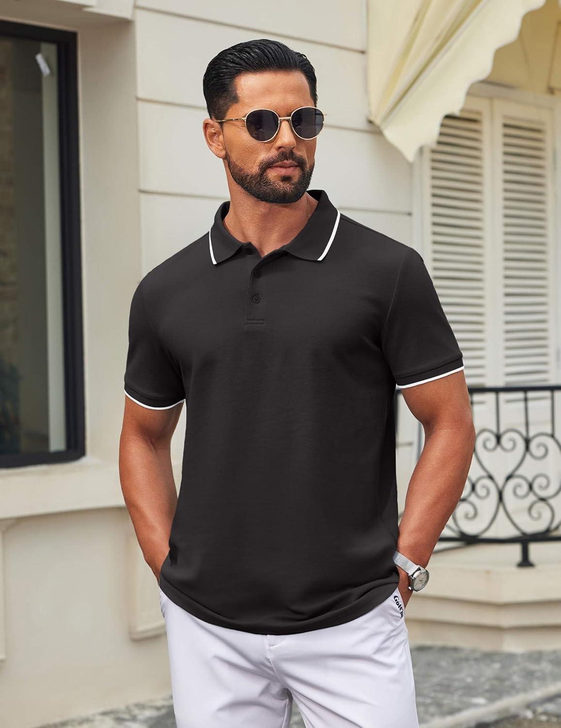 COOFANDY Men's Polo Shirts Classic Short Sleeve Polo T Shirts Cotton Pique Casual Summer Fashion Golf Shirt(Black)
