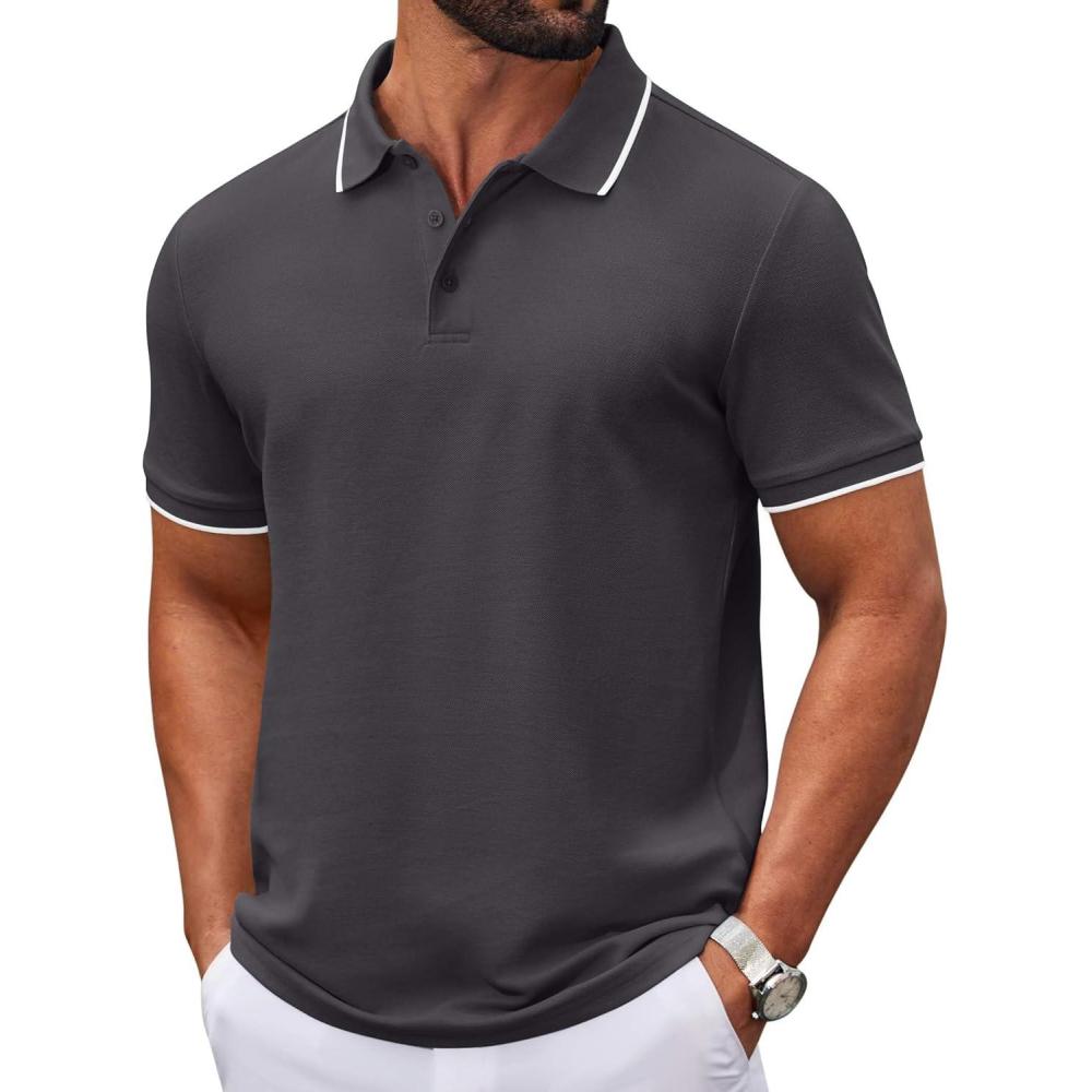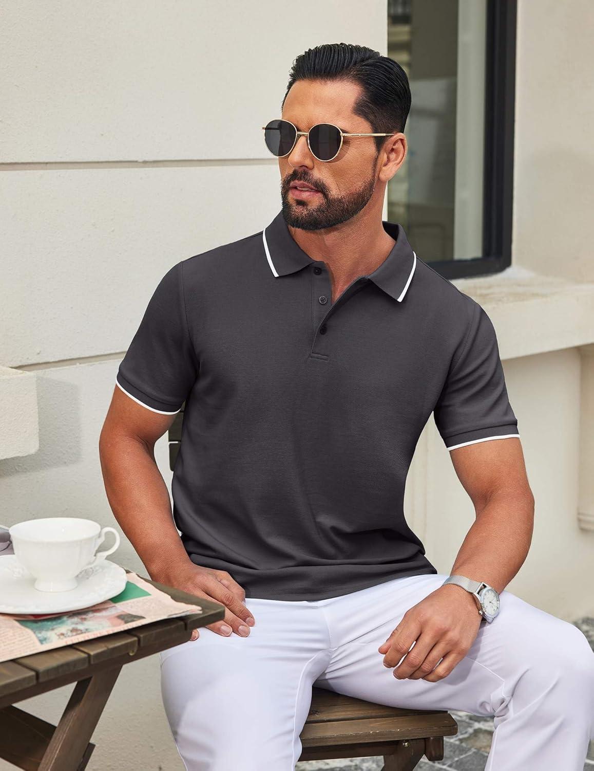 COOFANDY Men's Polo Shirts Classic Short Sleeve Polo T Shirts Cotton Pique Casual Summer Fashion Golf Shirt(Dark Grey)