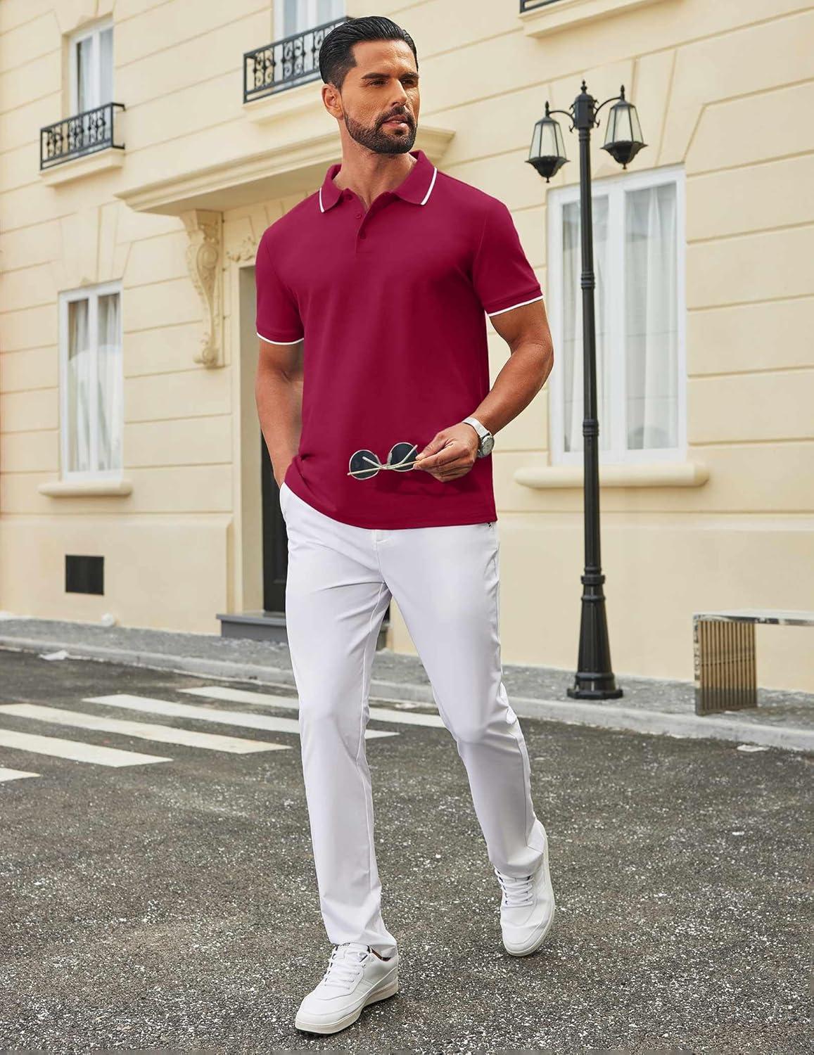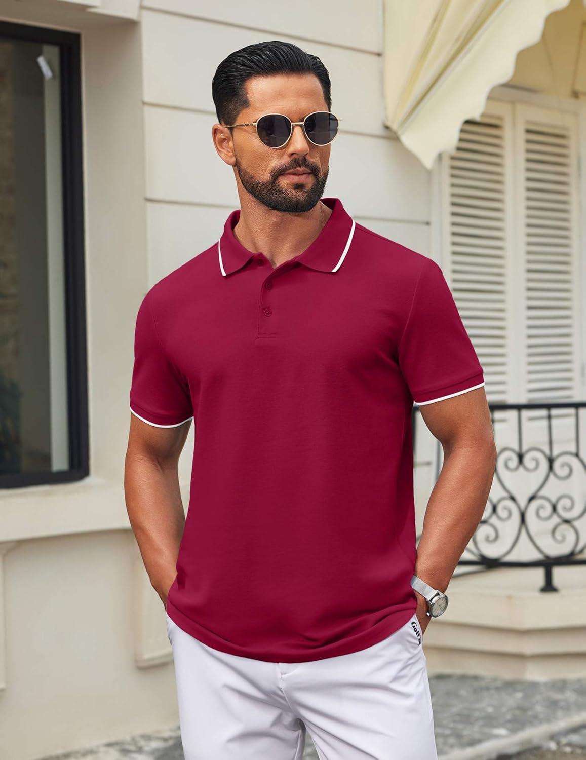COOFANDY Men's Polo Shirts Classic Short Sleeve Polo T Shirts Cotton Pique Casual Summer Fashion Golf Shirt(Dark Red)