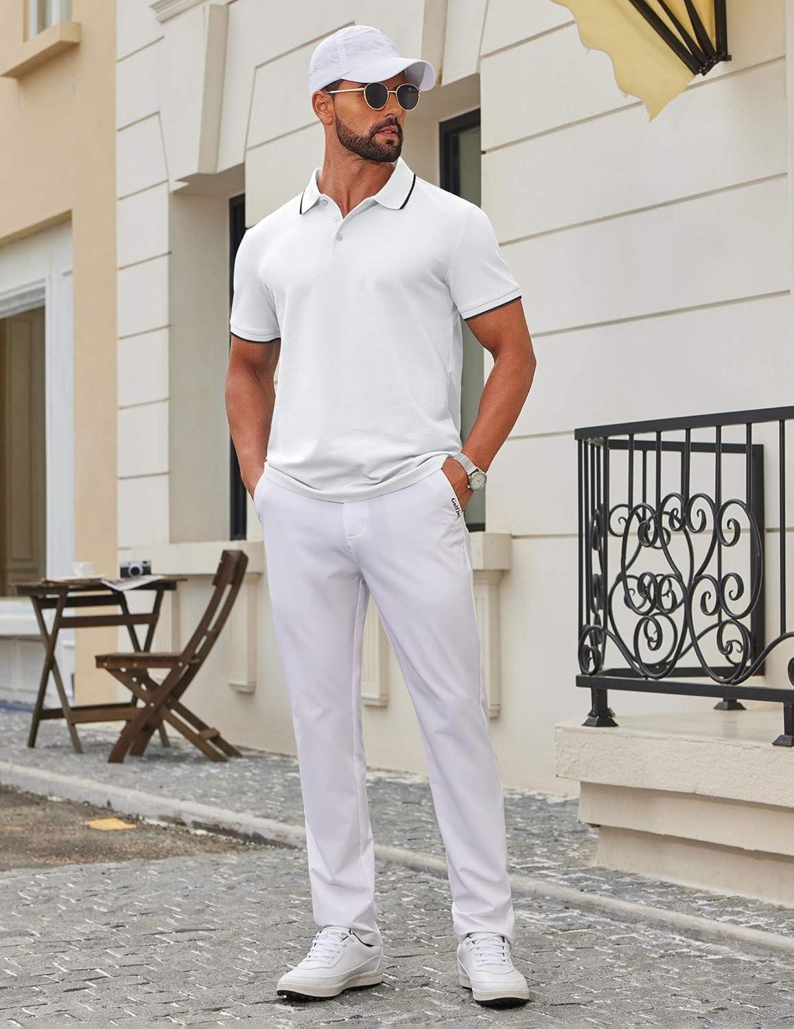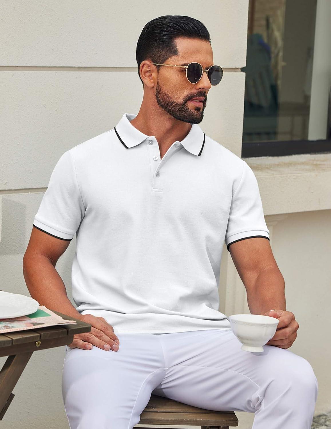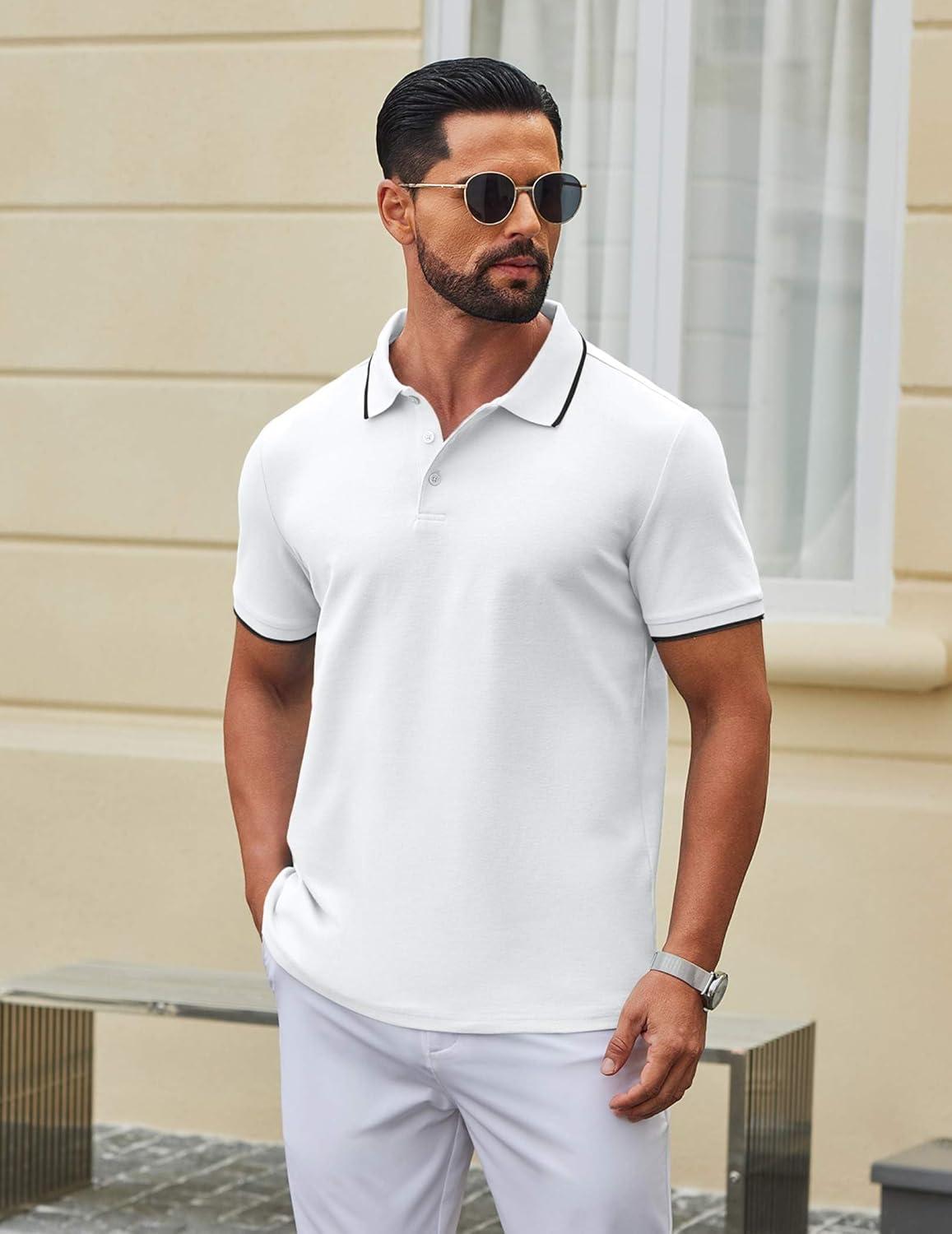 COOFANDY Men's Polo Shirts Classic Short Sleeve Polo T Shirts Cotton Pique Casual Summer Fashion Golf Shirt(White)