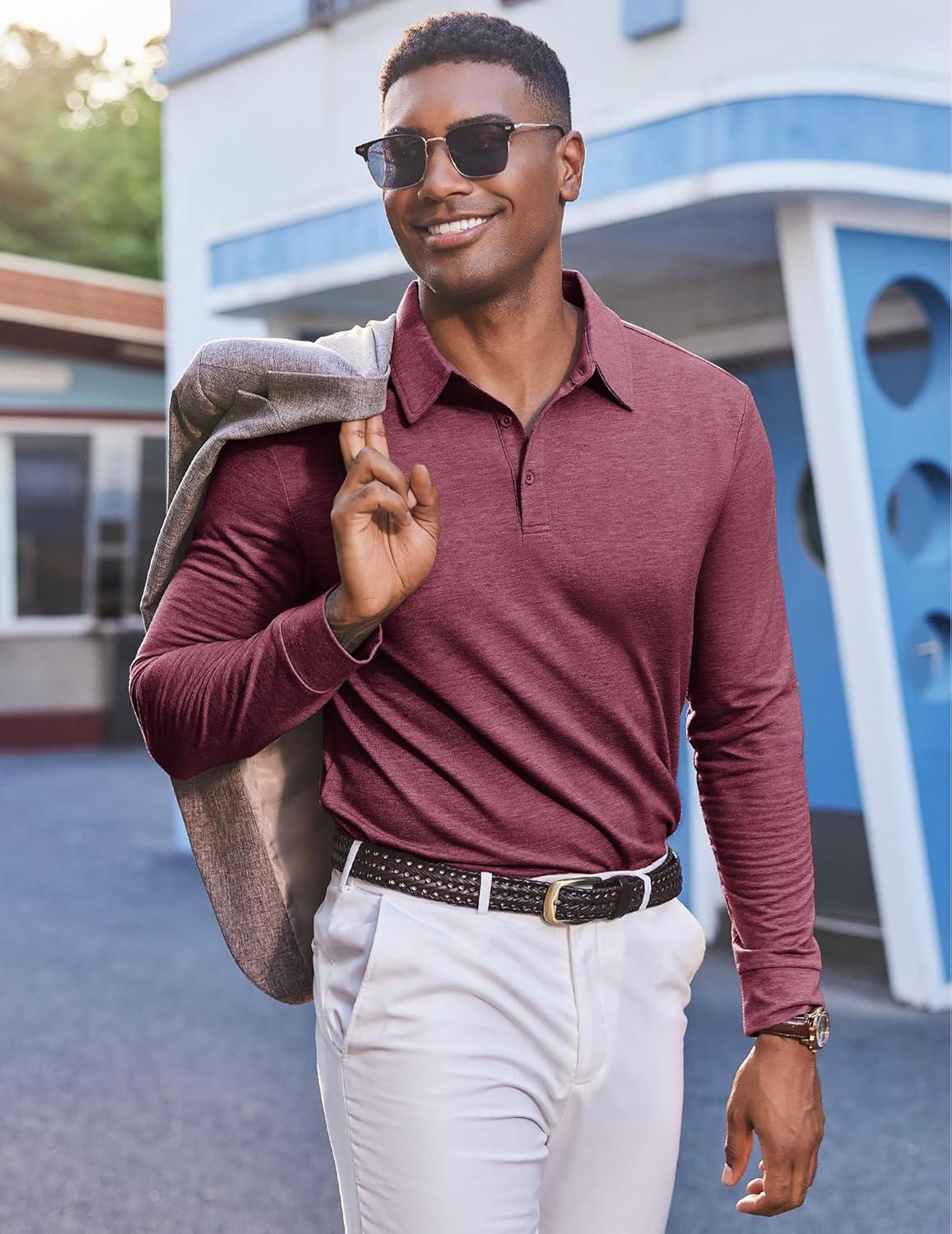 Don’t miss out on our limited-time offer: buy COOFANDY Mens Polo Shirts Long Sleeve Casual Lightweigt Golf Polos Button Collared Tshirt(Wine Red), get {accessory} free!