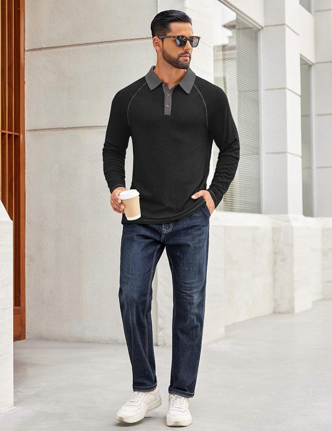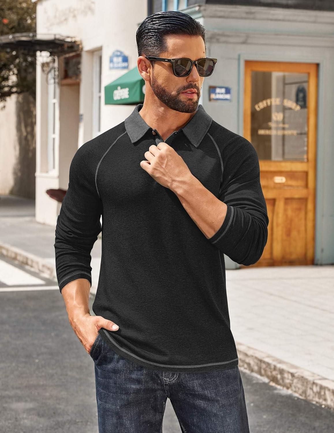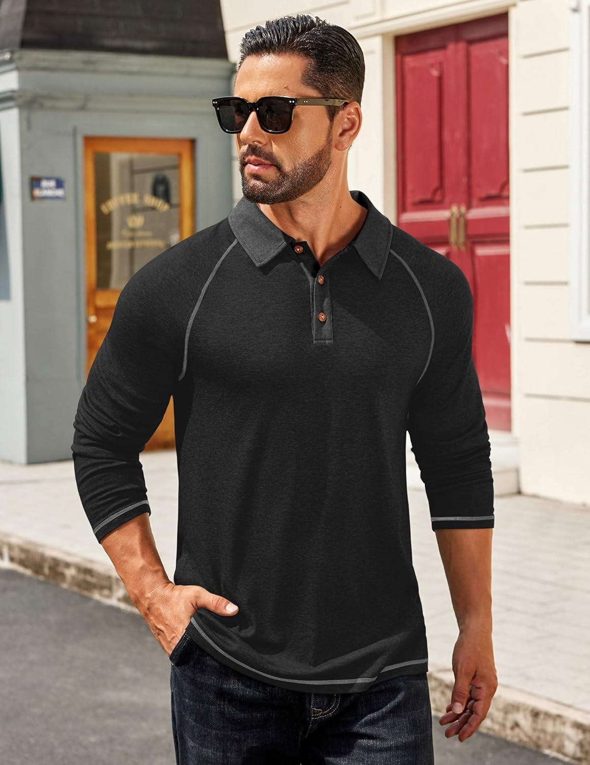 Save up to 40% on COOFANDY Men’s Polo Shirts Long Sleeve Casual Raglan Golf Shirts(Black) styles during our end-of-season sale.