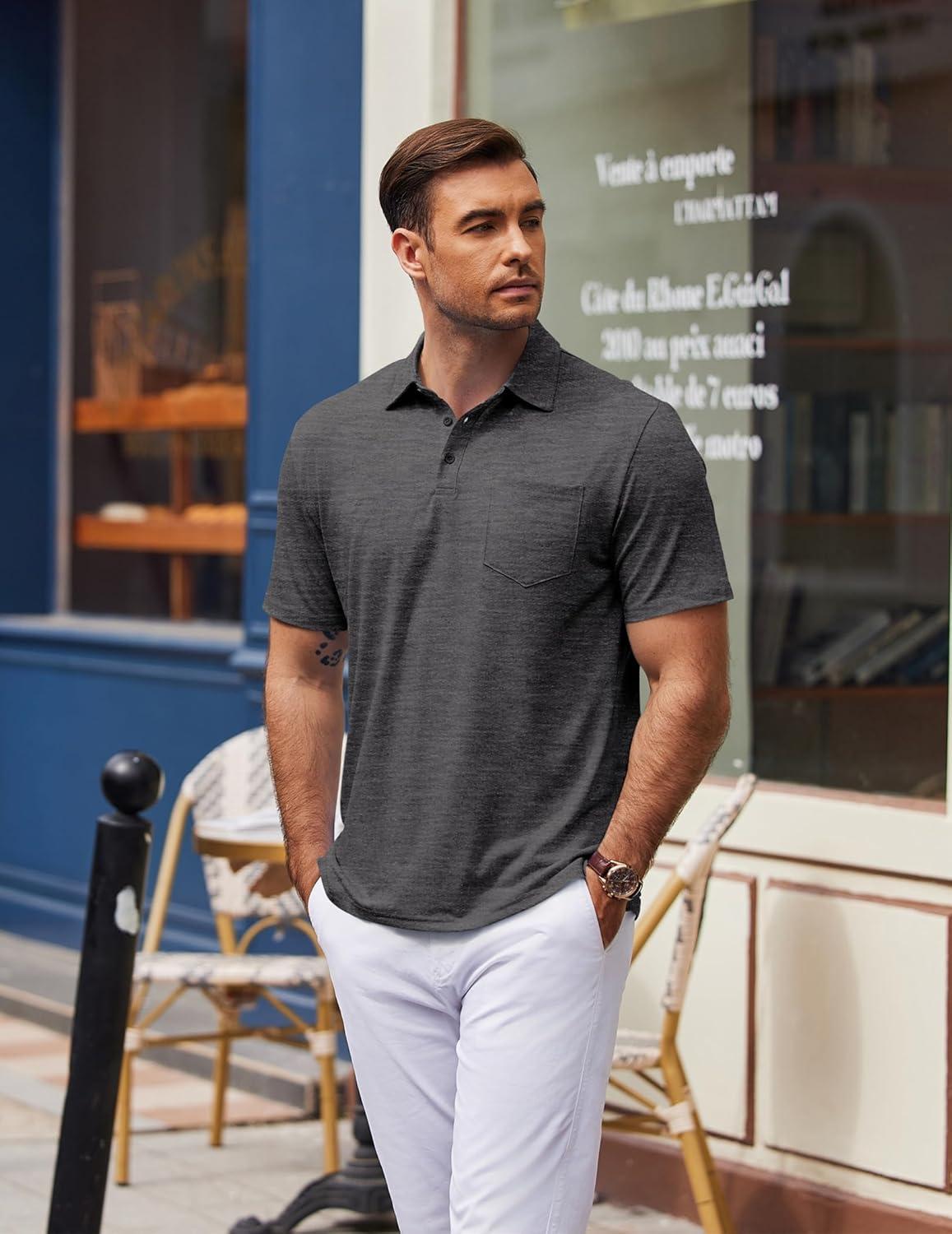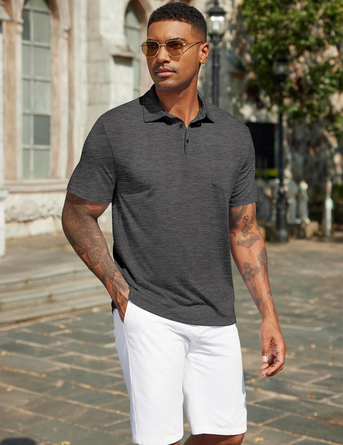 COOFANDY Mens Polo Shirts Short Sleeve Casual Golf Shirt Basic Solid Color Collared T-Shirt Stylish Summer Polo T Shirt(Dark Grey)