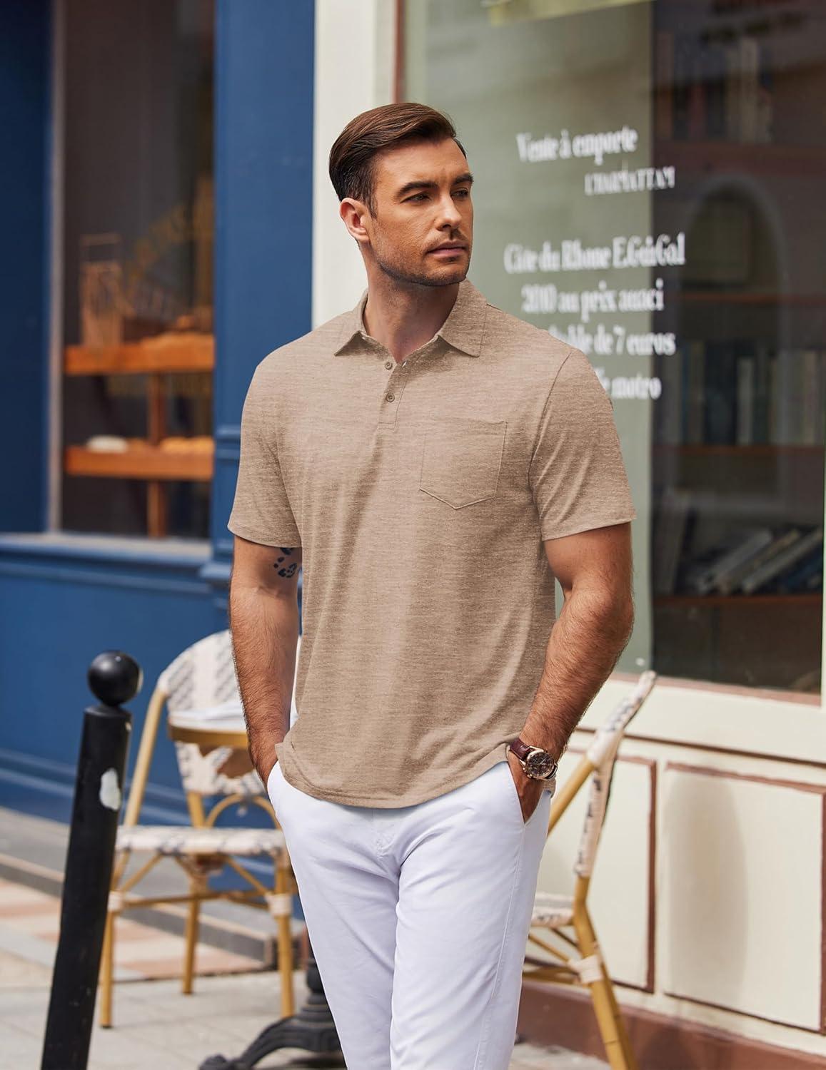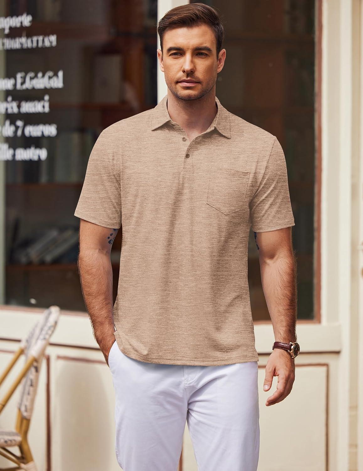 COOFANDY Mens Polo Shirts Short Sleeve Casual Golf Shirt Basic Solid Color Collared T-Shirt Stylish Summer Polo T Shirt(Khaki)