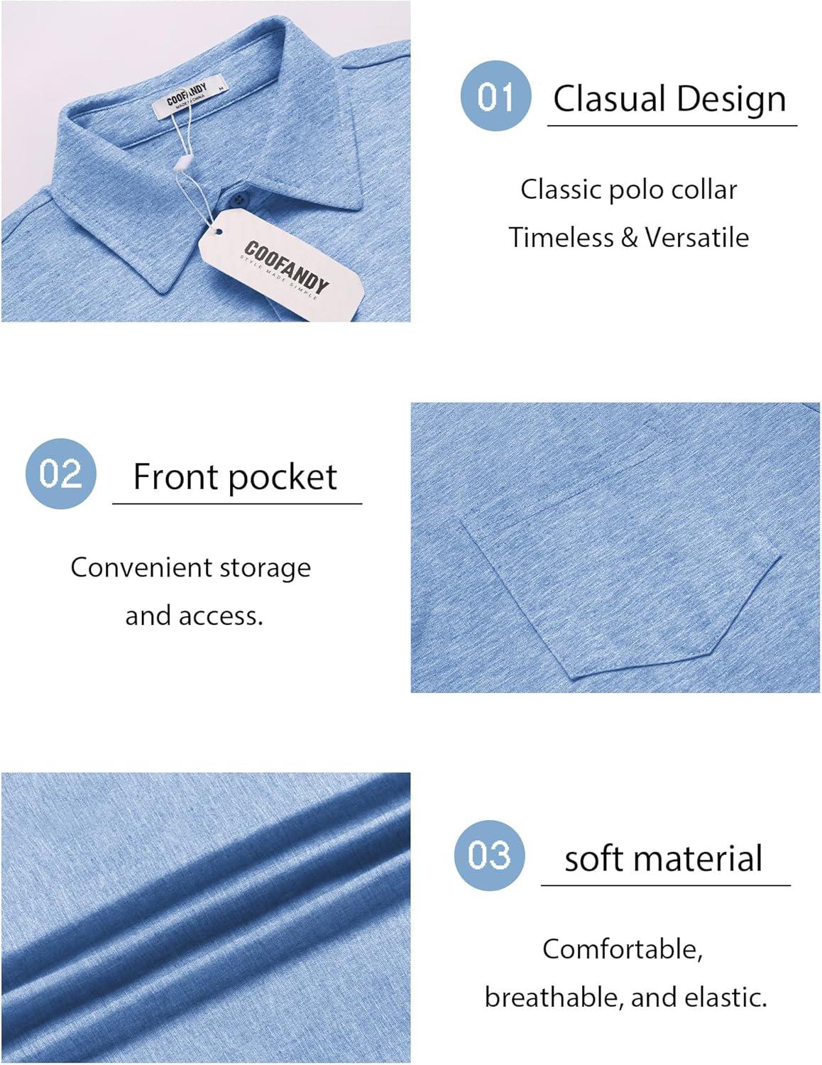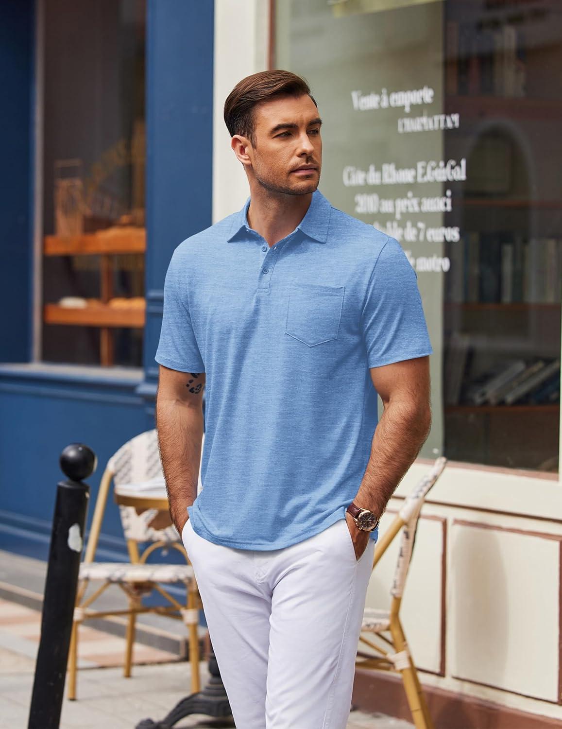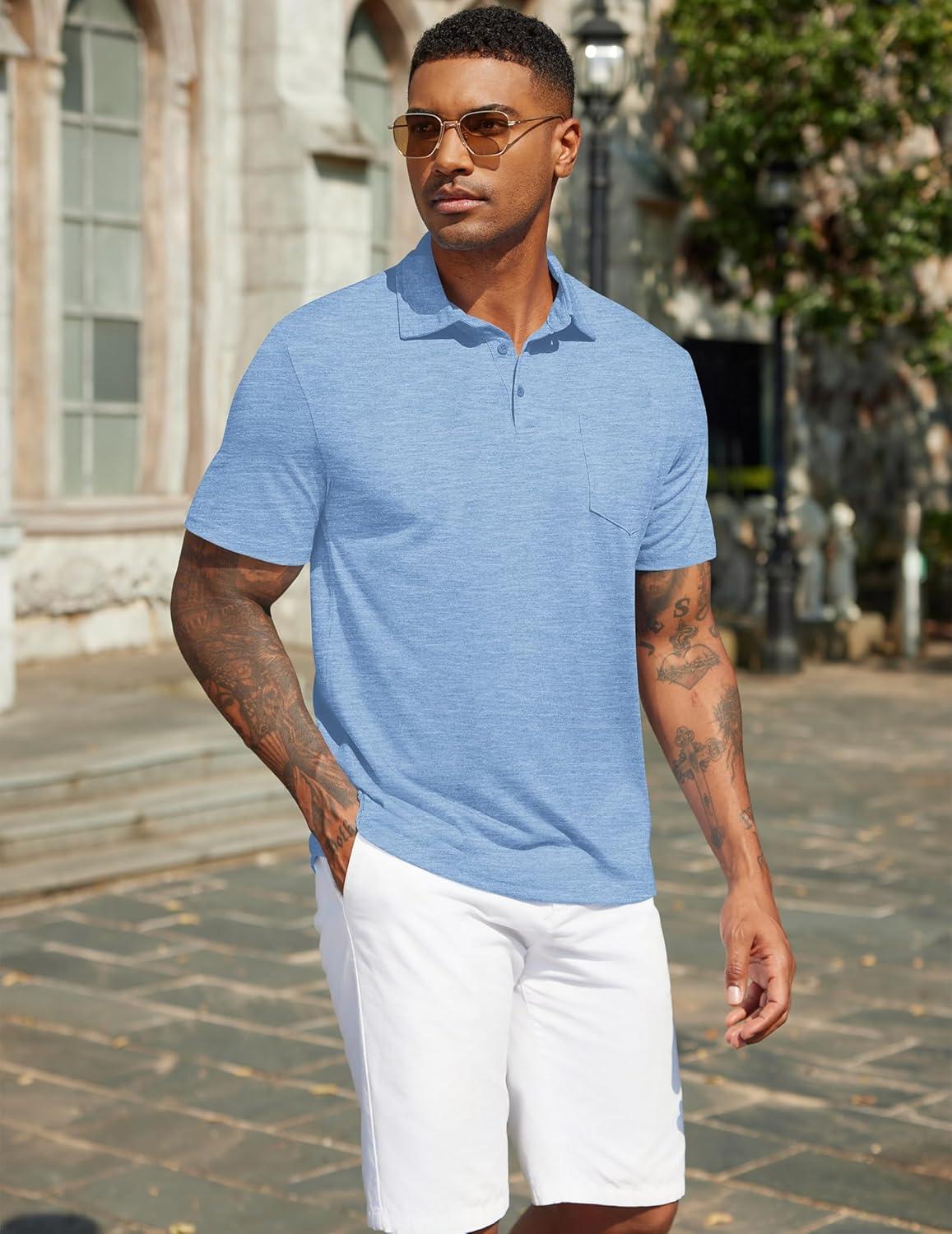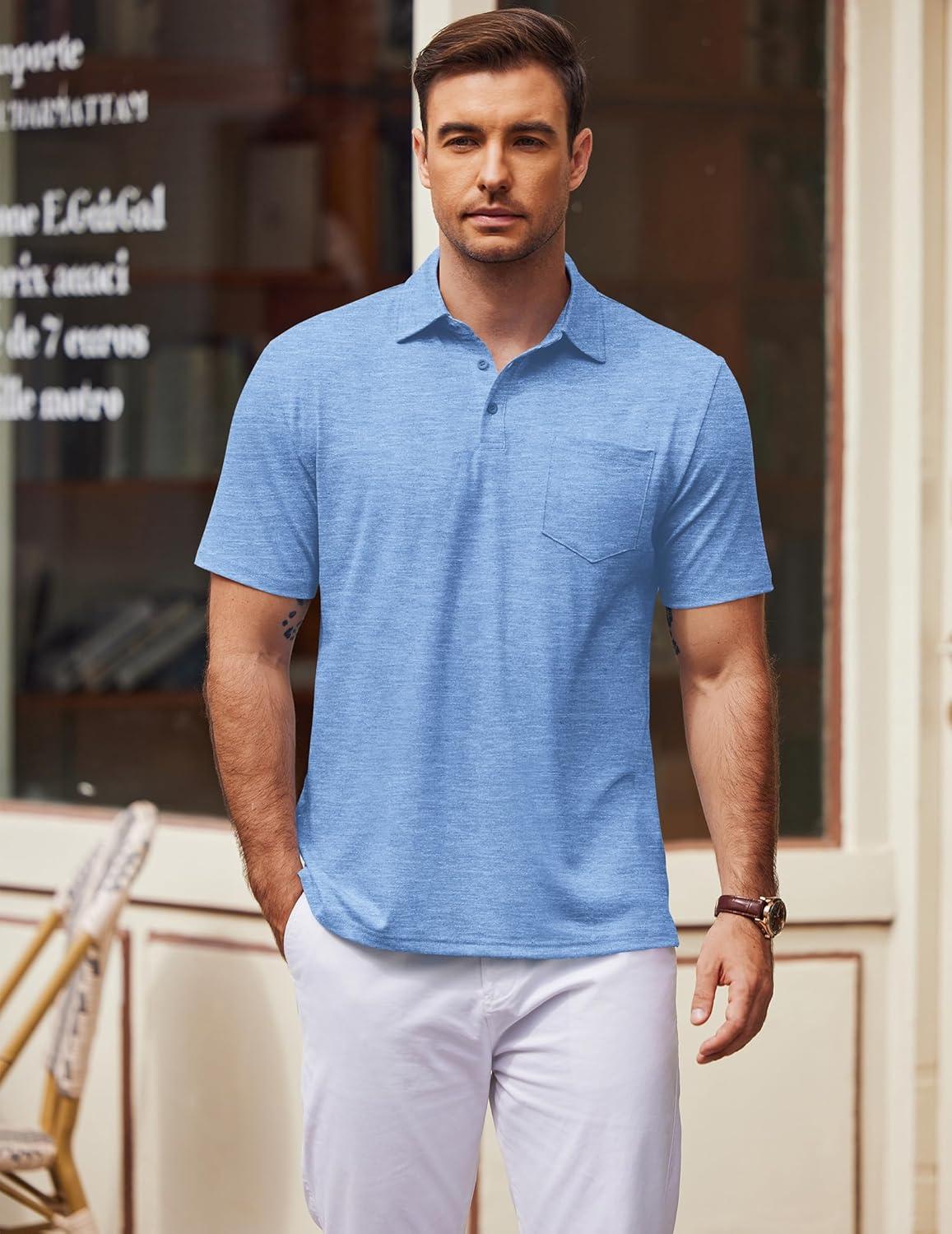 COOFANDY Mens Polo Shirts Short Sleeve Casual Golf Shirt Basic Solid Color Collared T-Shirt Stylish Summer Polo T Shirt(Light Blue)