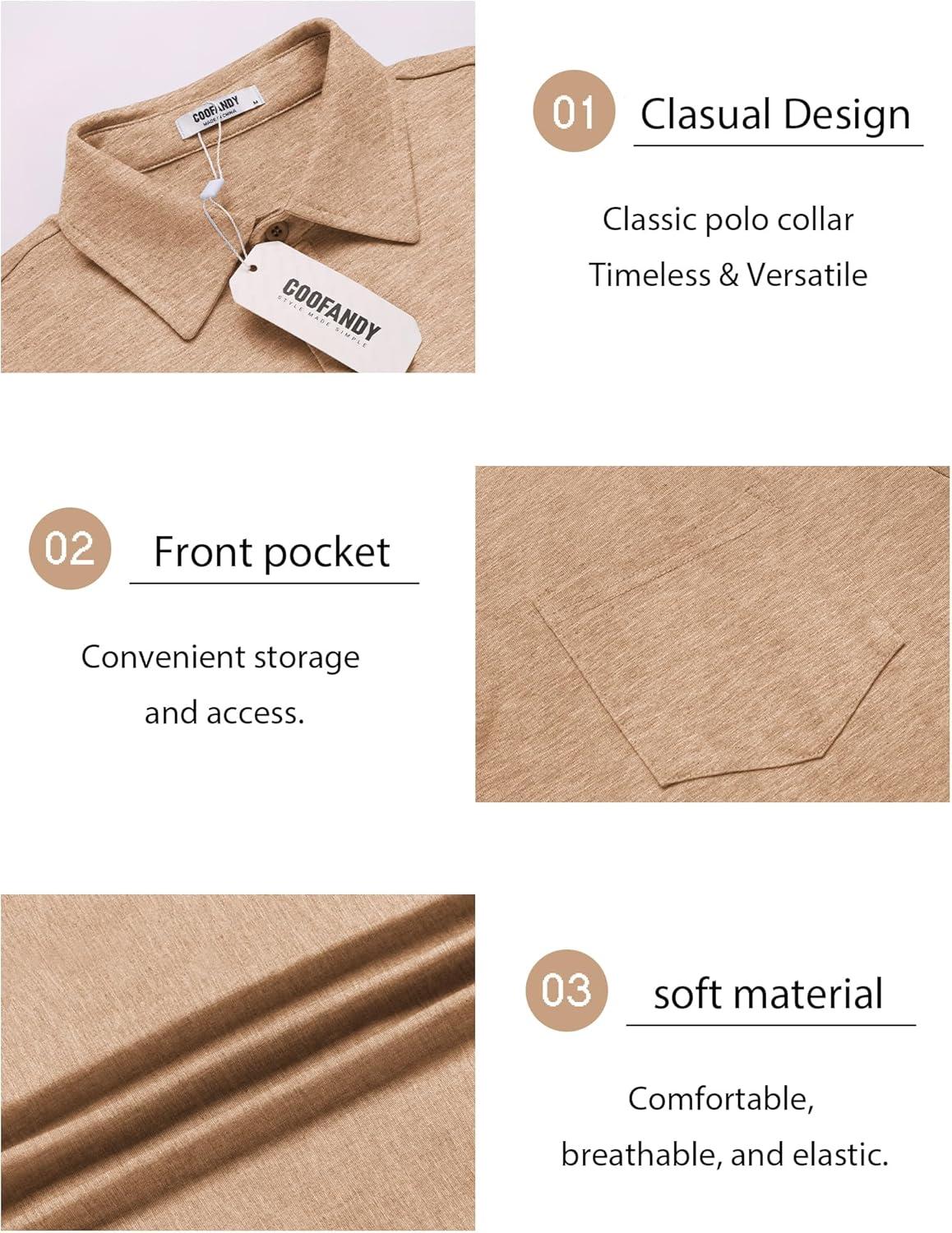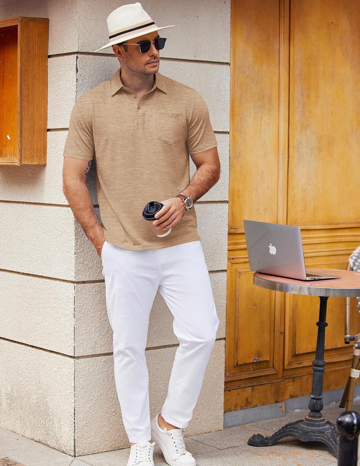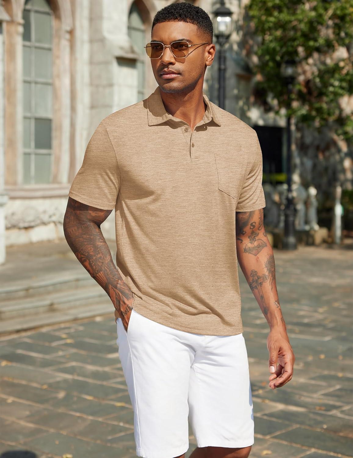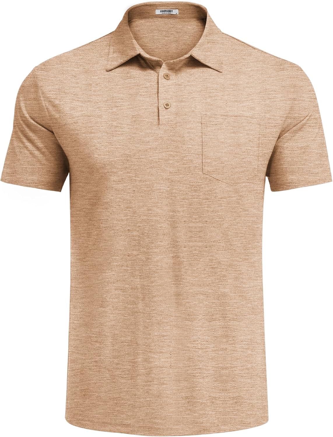 COOFANDY Mens Polo Shirts Short Sleeve Casual Golf Shirt Basic Solid Color Collared T-Shirt Stylish Summer Polo T Shirt(Khaki)