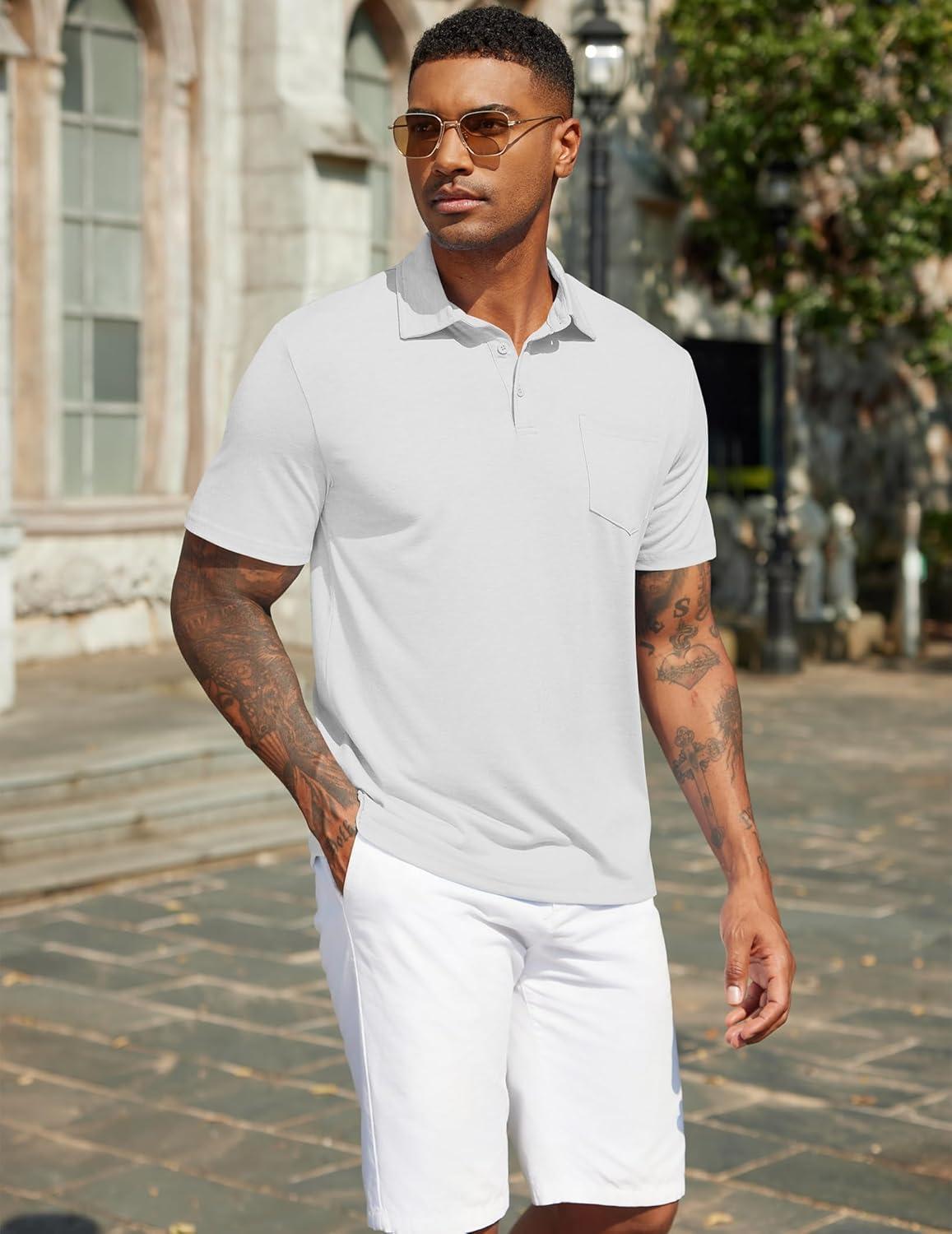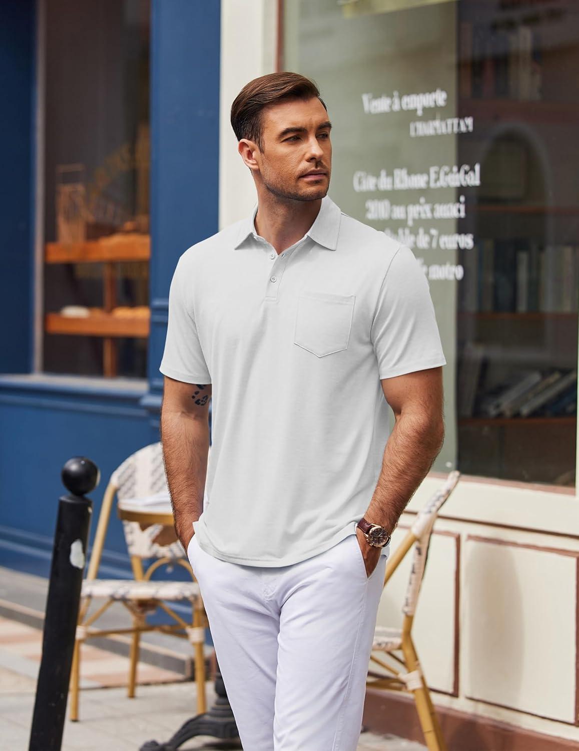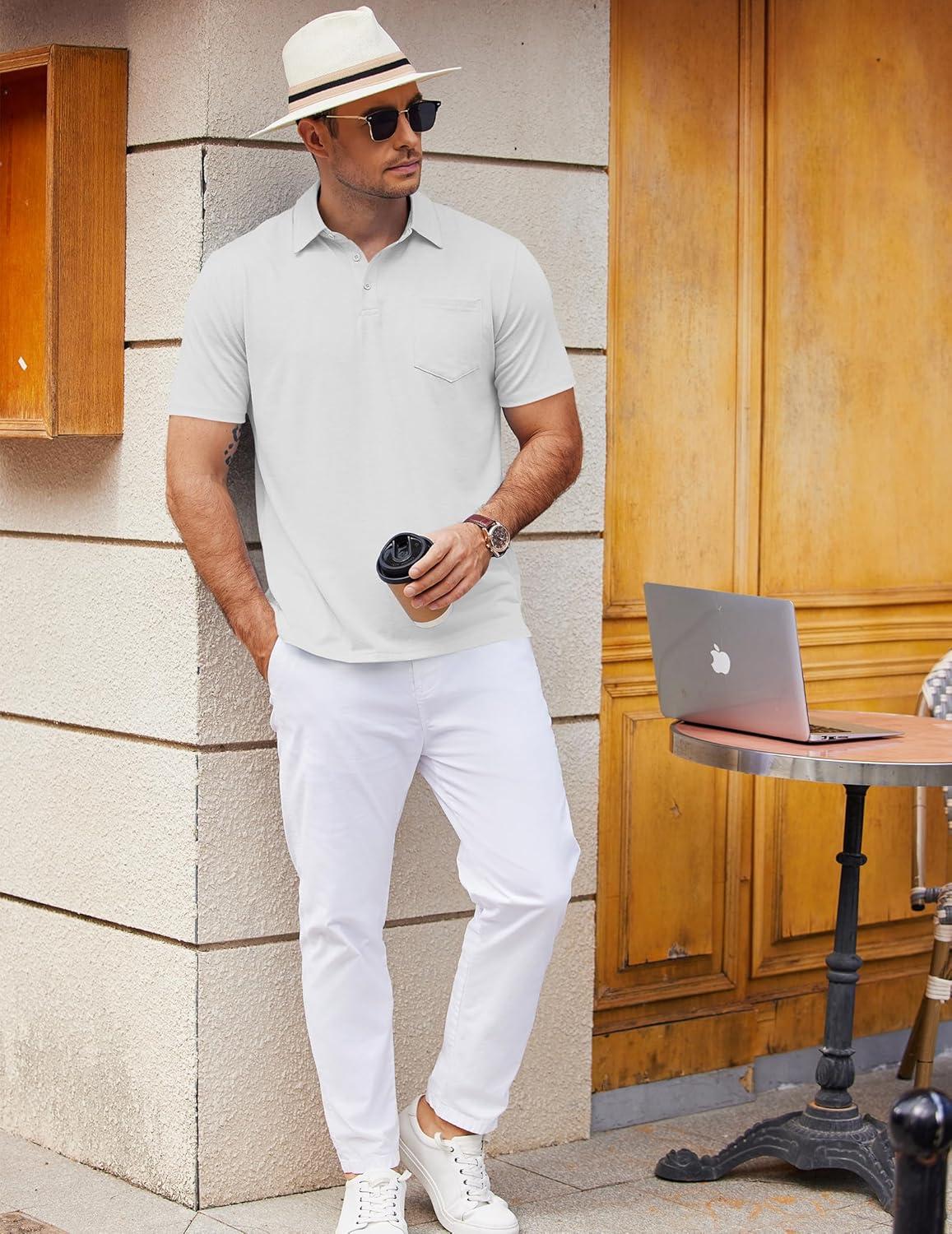 COOFANDY Mens Polo Shirts Short Sleeve Casual Golf Shirt Basic Solid Color Collared T-Shirt Stylish Summer Polo T Shirt(White)
