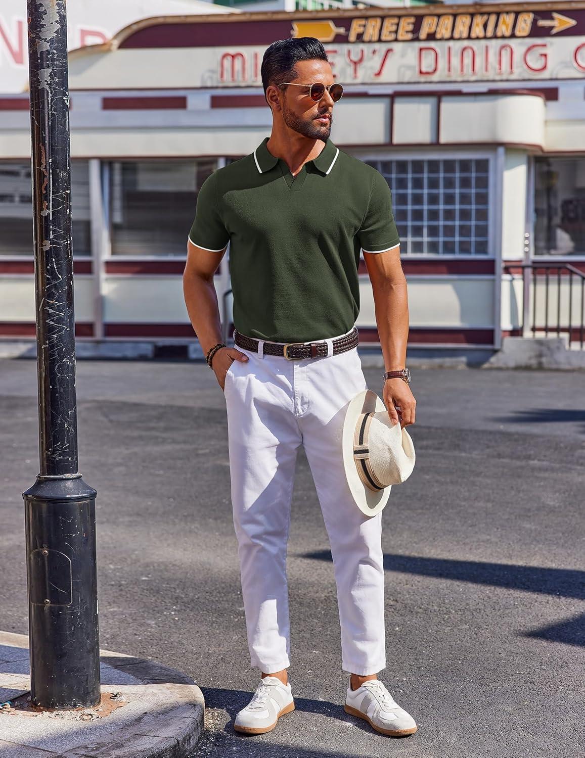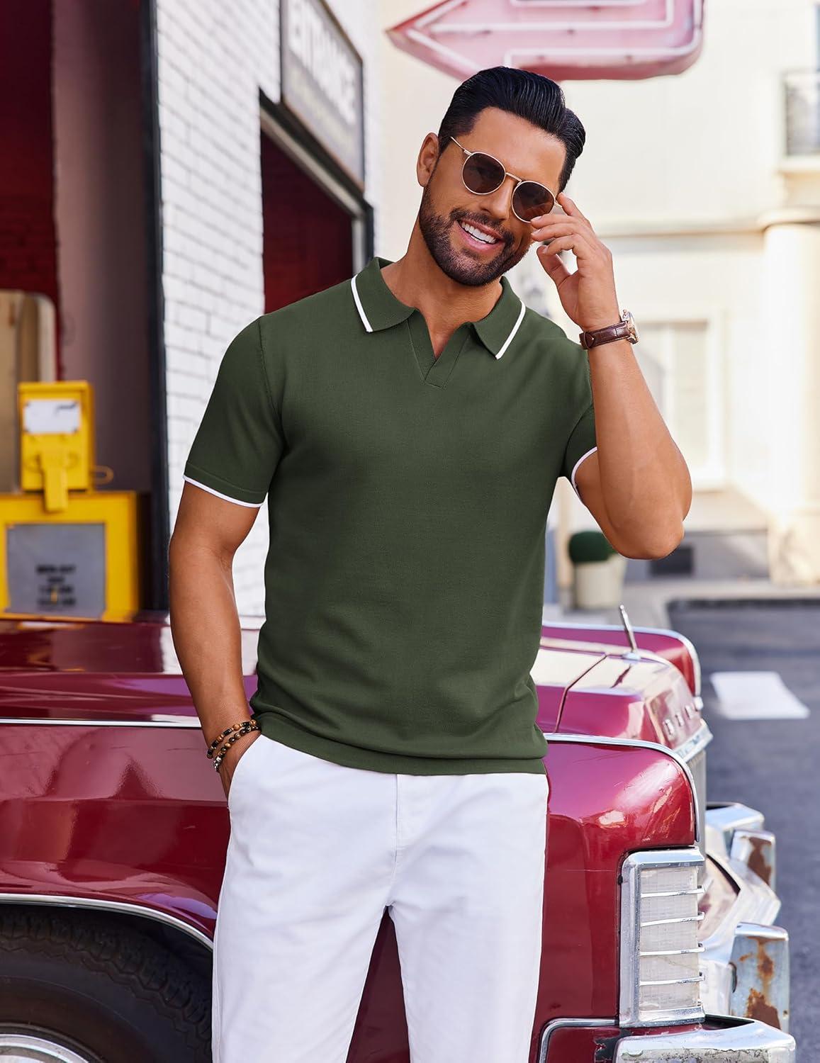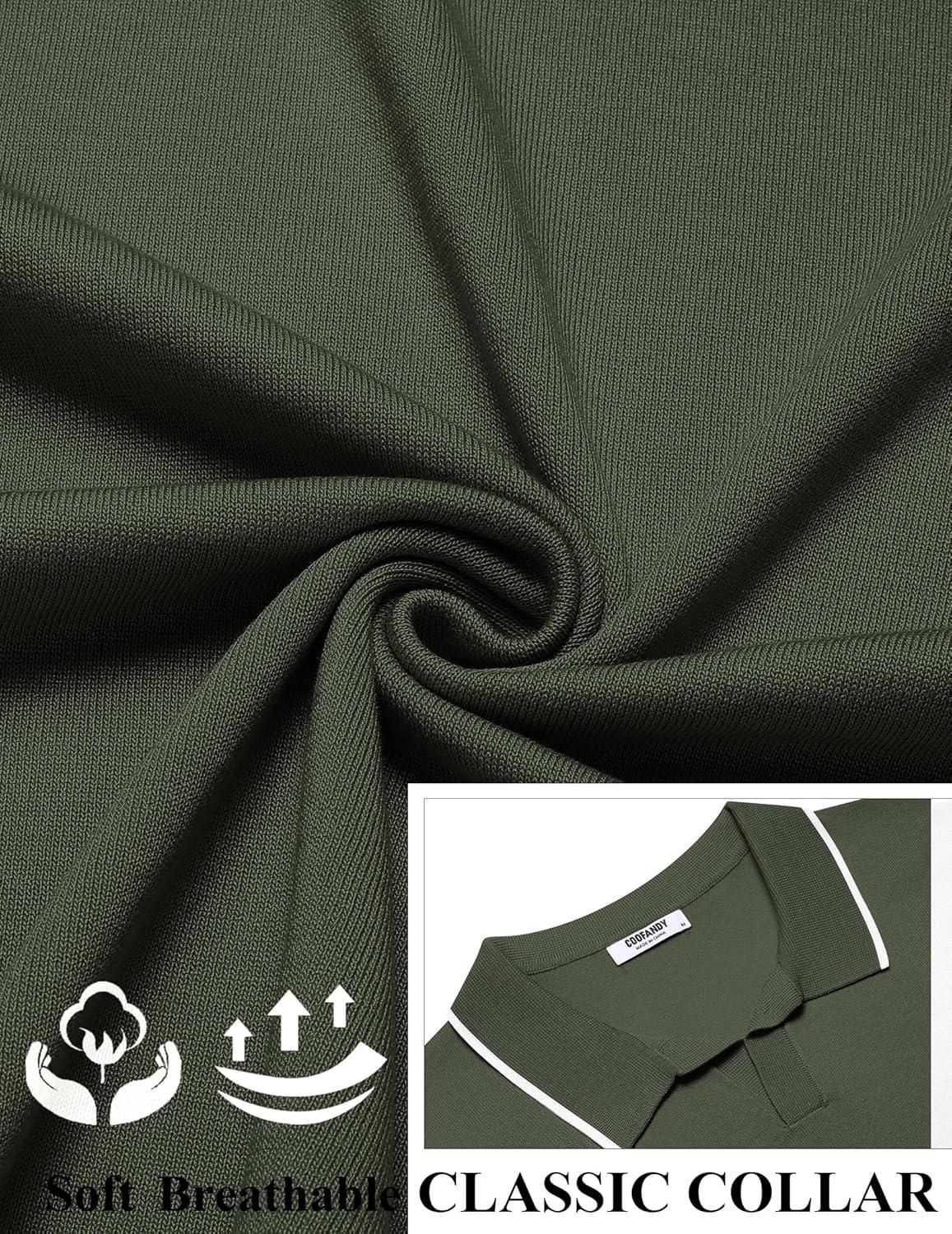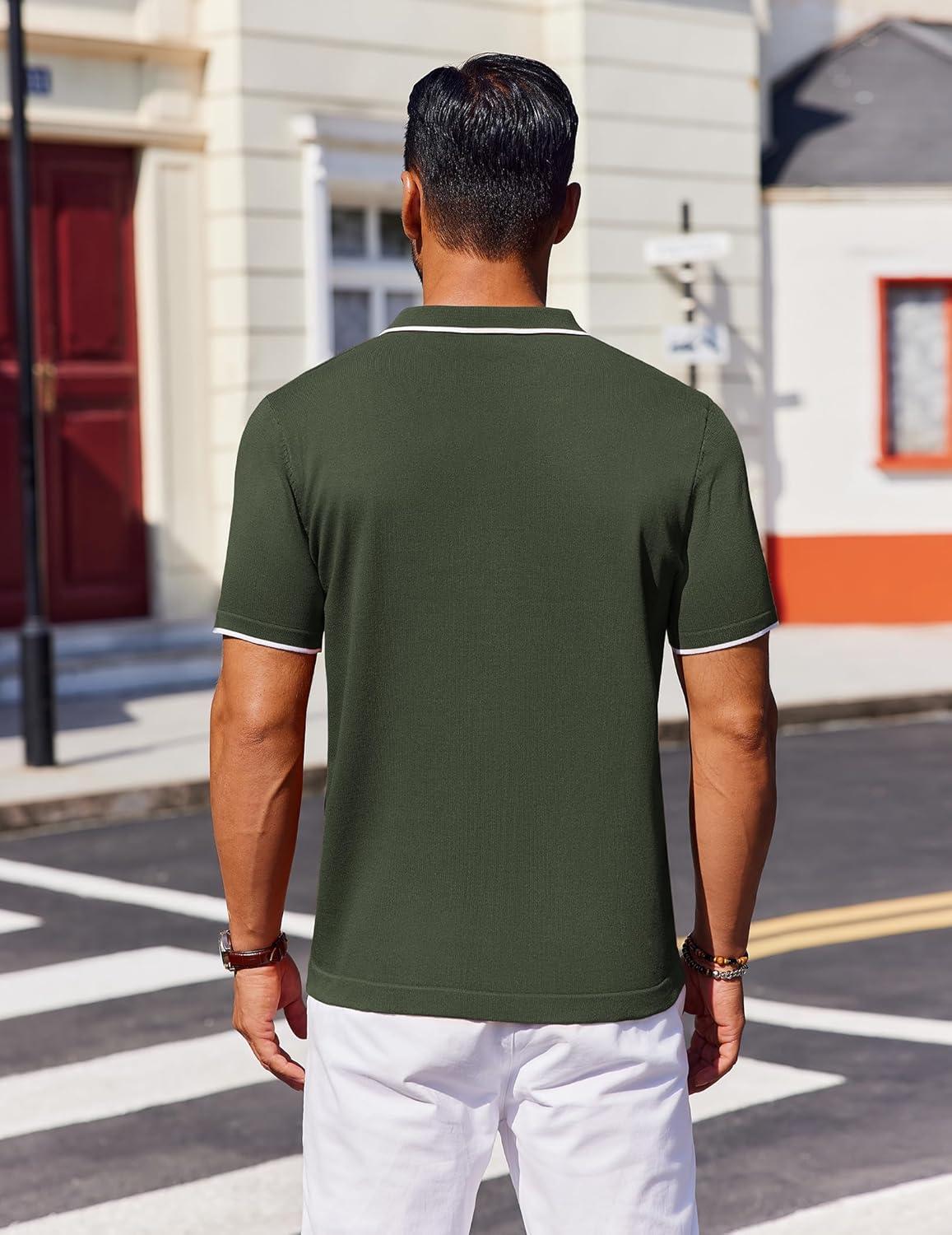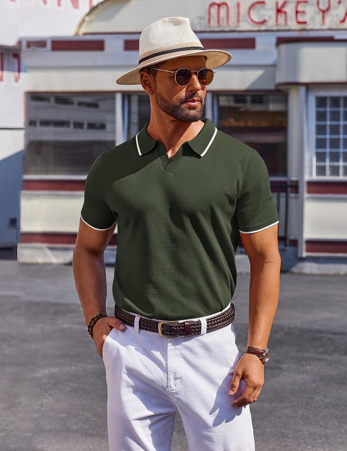 COOFANDY Mens Polo Shirts Short Sleeve Casual Knit Polo Shirt Vintage Golf T Shirts Old Money Tops(Army Green)