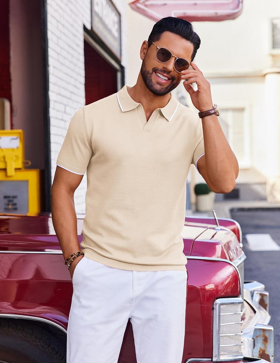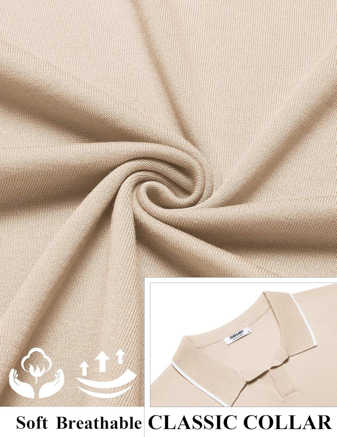 COOFANDY Mens Polo Shirts Short Sleeve Casual Knit Polo Shirt Vintage Golf T Shirts Old Money Tops(Champagne)