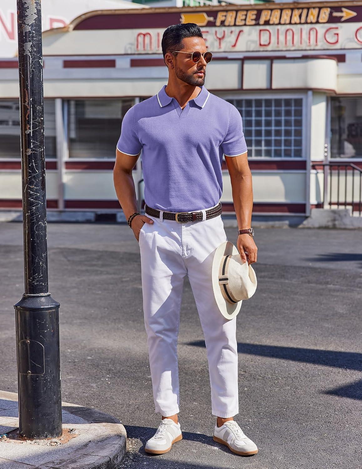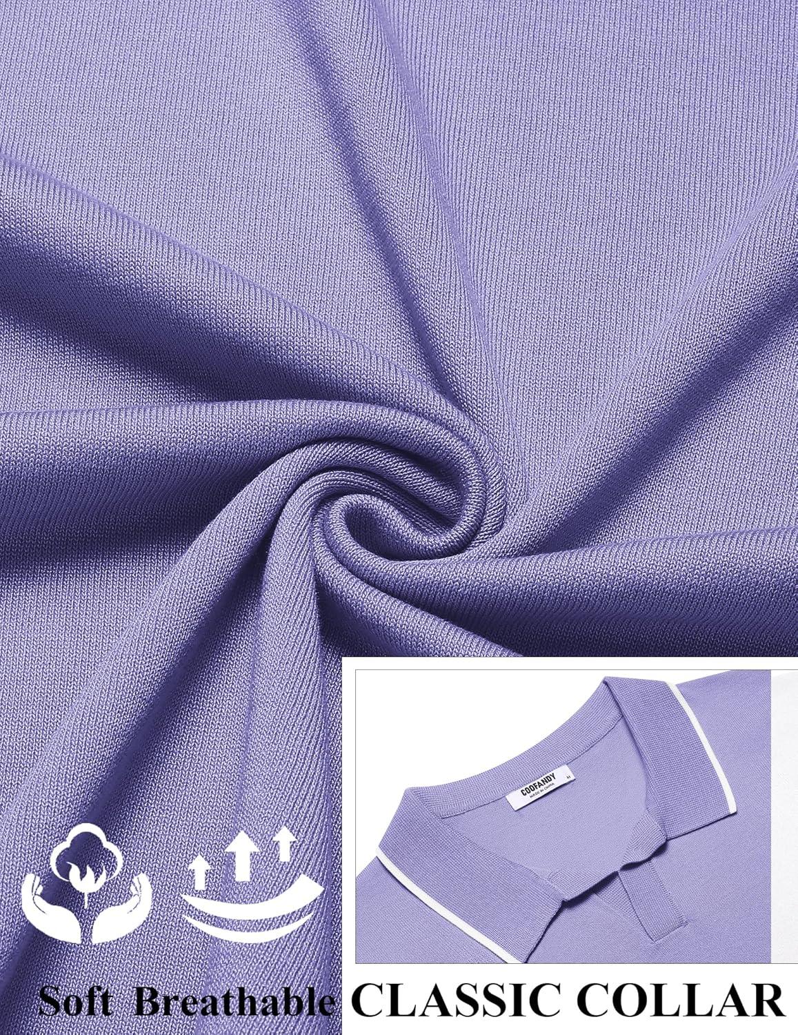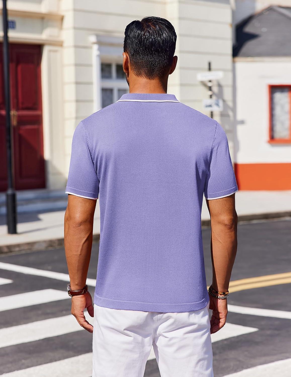 COOFANDY Mens Polo Shirts Short Sleeve Casual Knit Polo Shirt Vintage Golf T Shirts Old Money Tops(Purple)