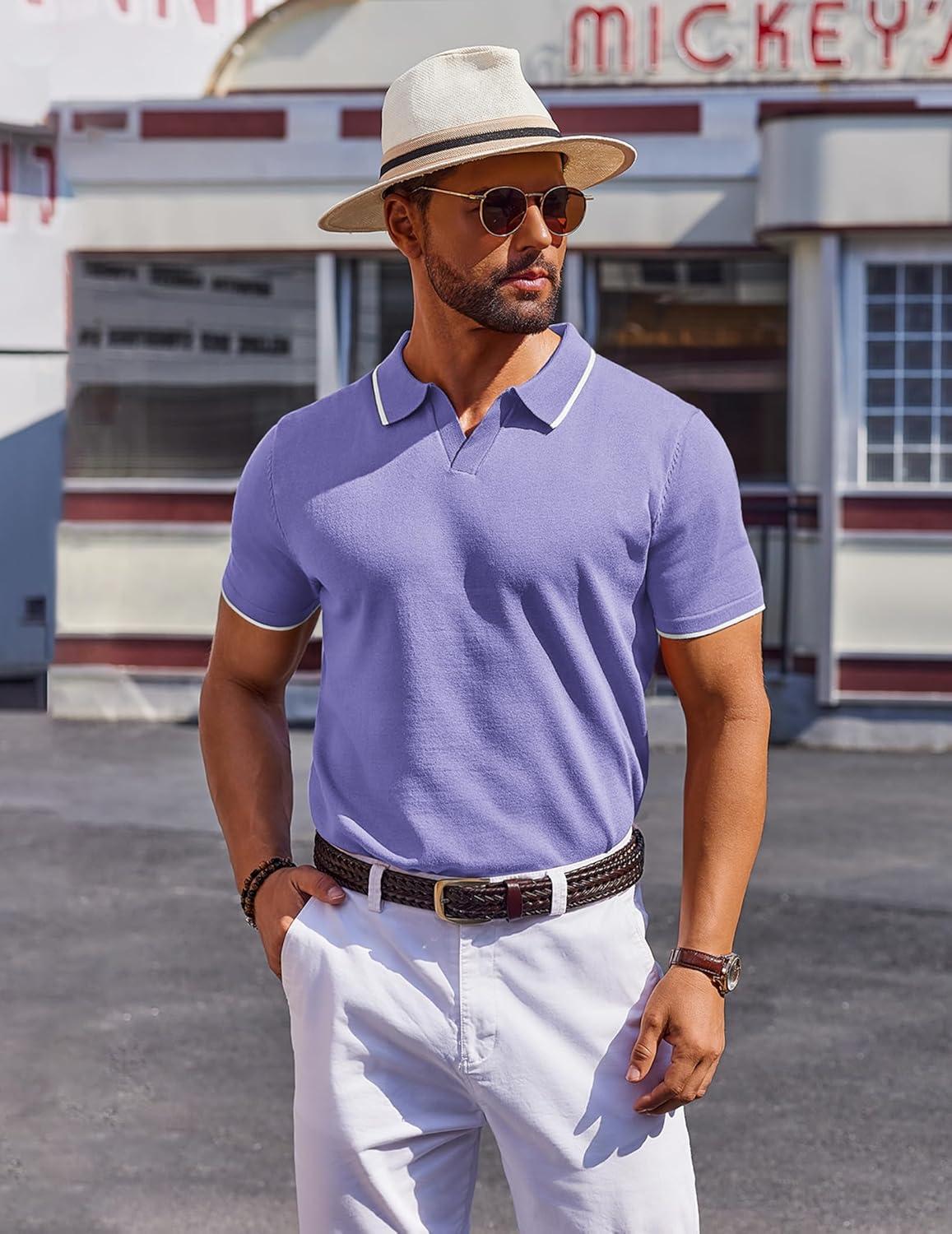 Don’t miss out on our limited-time offer: buy COOFANDY Mens Polo Shirts Short Sleeve Casual Knit Polo Shirt Vintage Golf T Shirts Old Money Tops(Purple), get {accessory} 50% off!