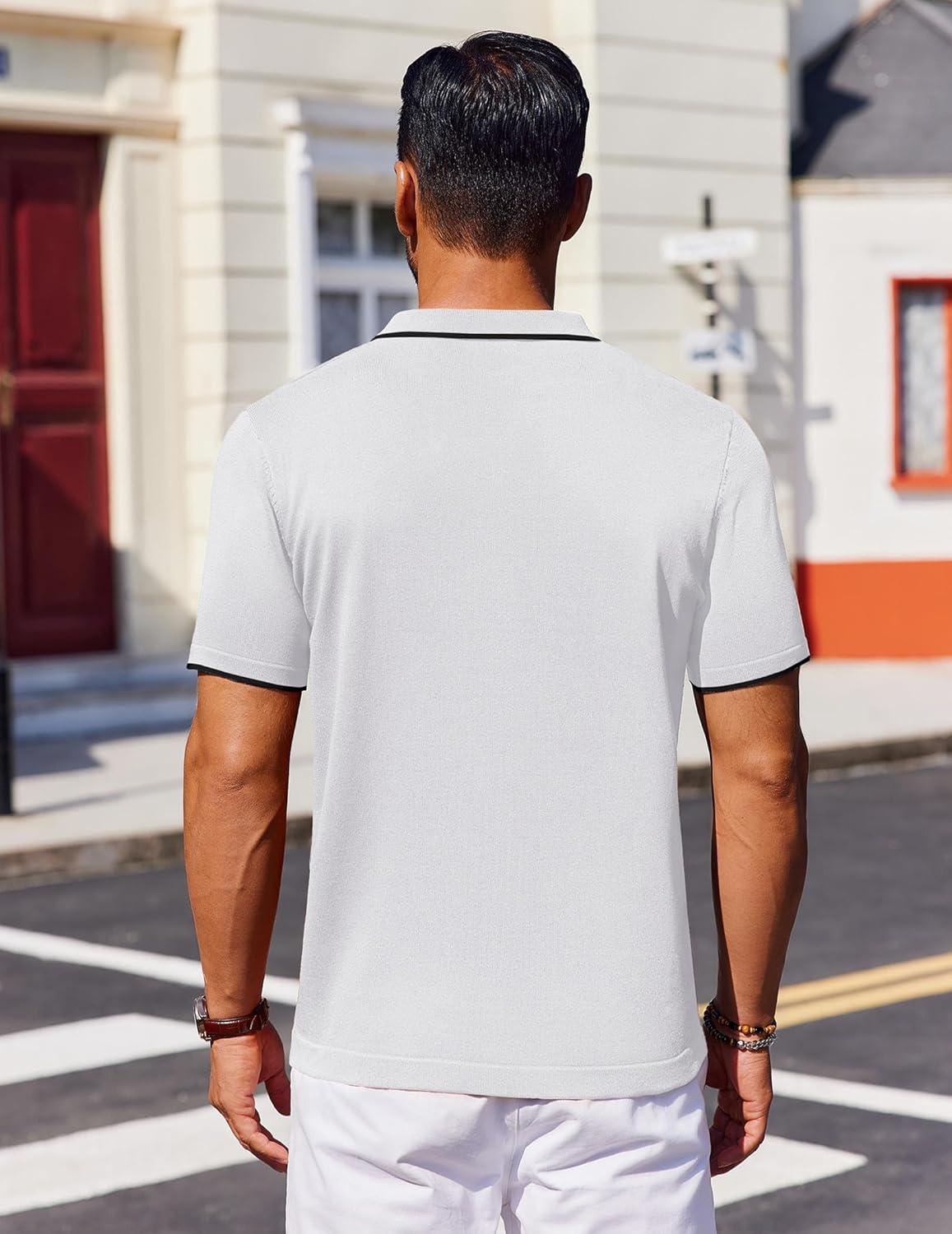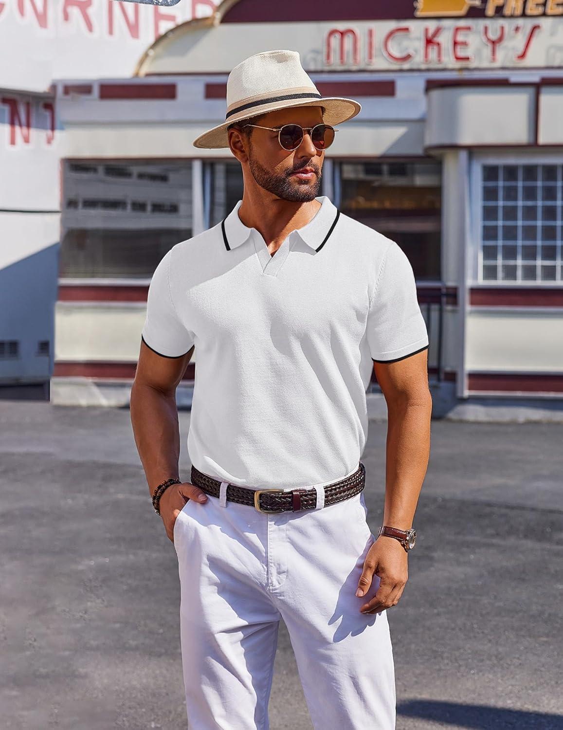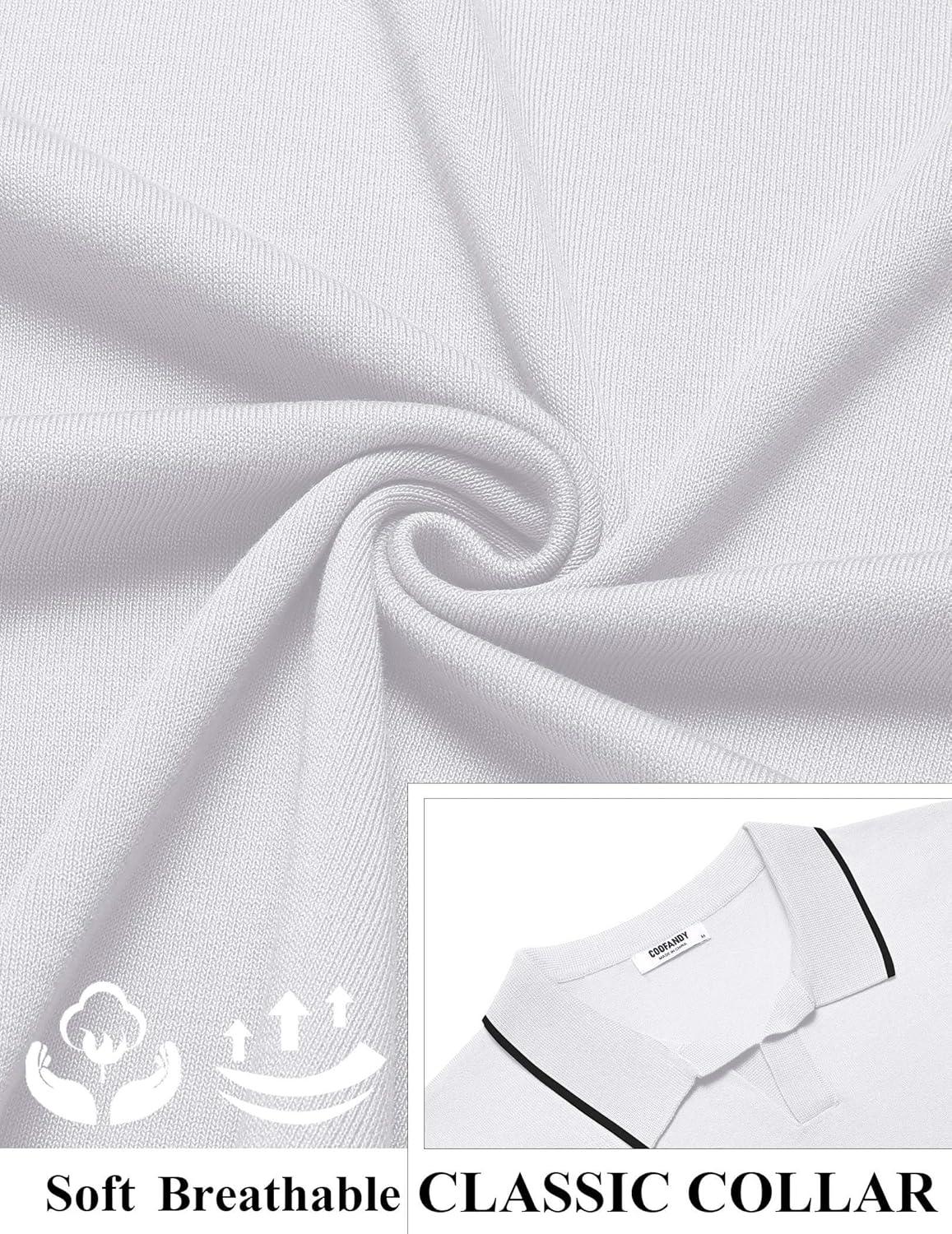 COOFANDY Mens Polo Shirts Short Sleeve Casual Knit Polo Shirt Vintage Golf T Shirts Old Money Tops(White)