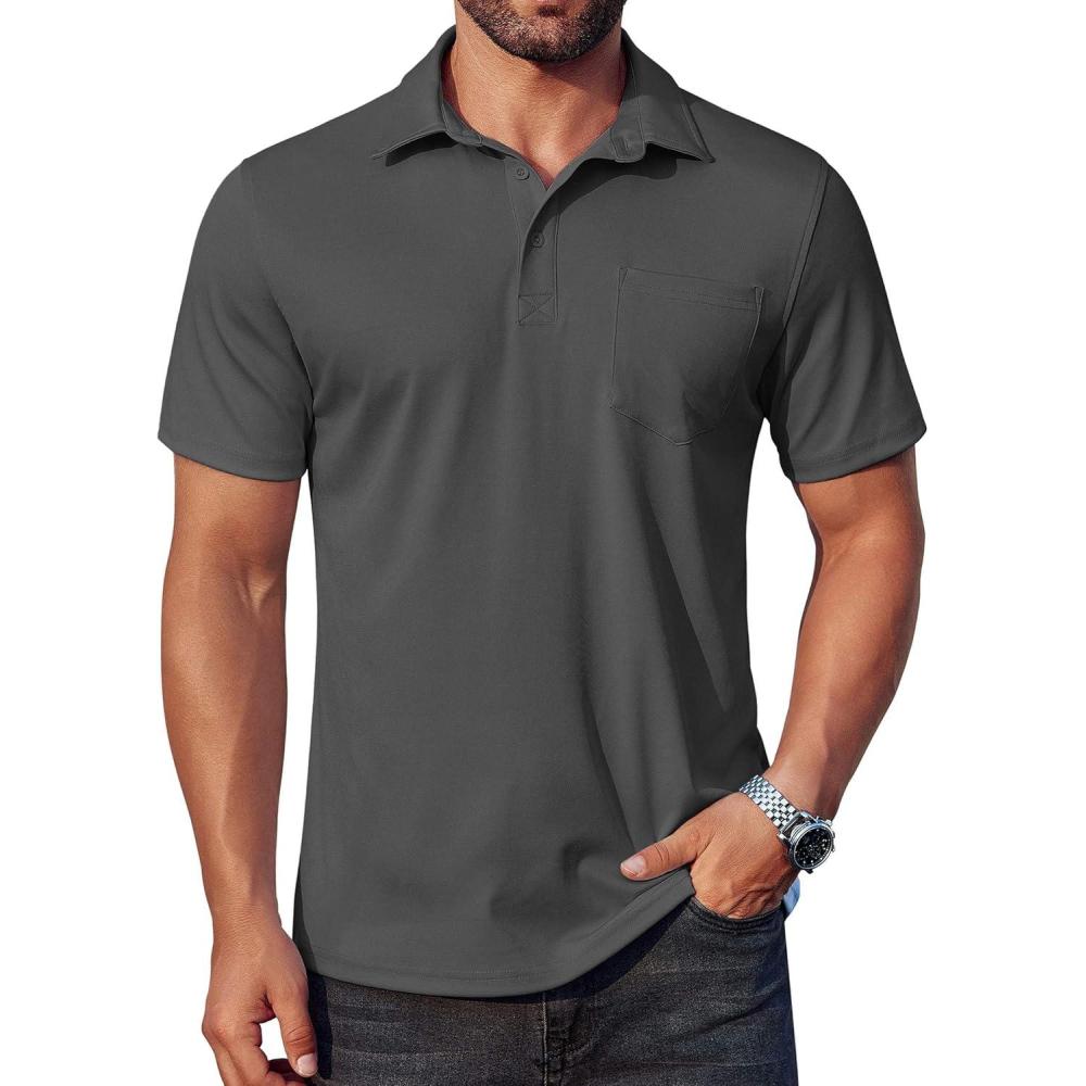 COOFANDY Men's Polo Shirts Short Sleeve Casual Shirts with Pocket(Dark Grey)
