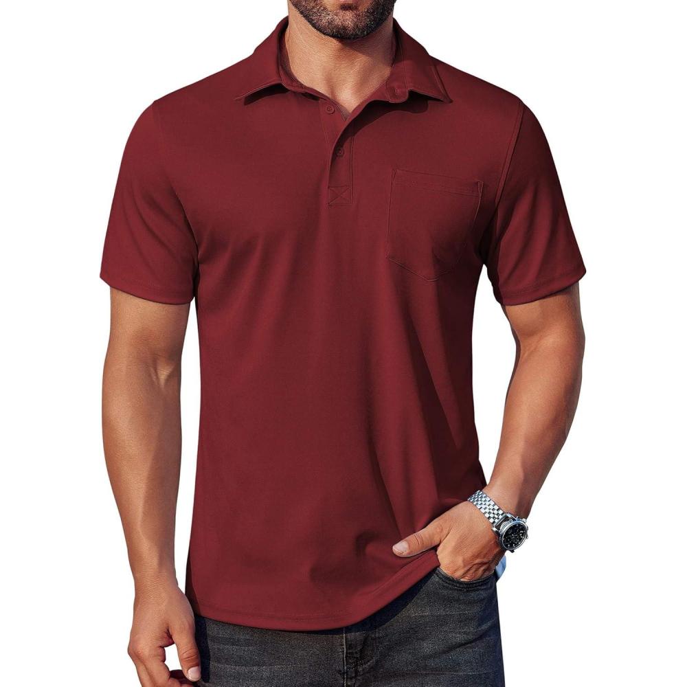 COOFANDY Men's Polo Shirts Short Sleeve Casual Shirts with Pocket(Wine Red)