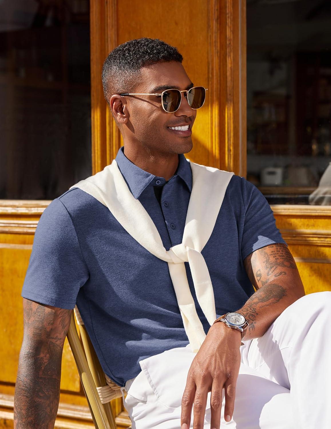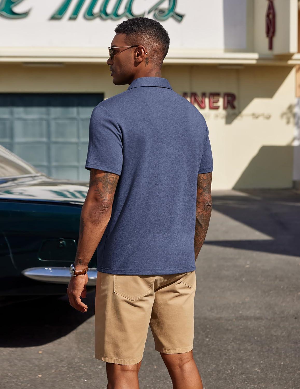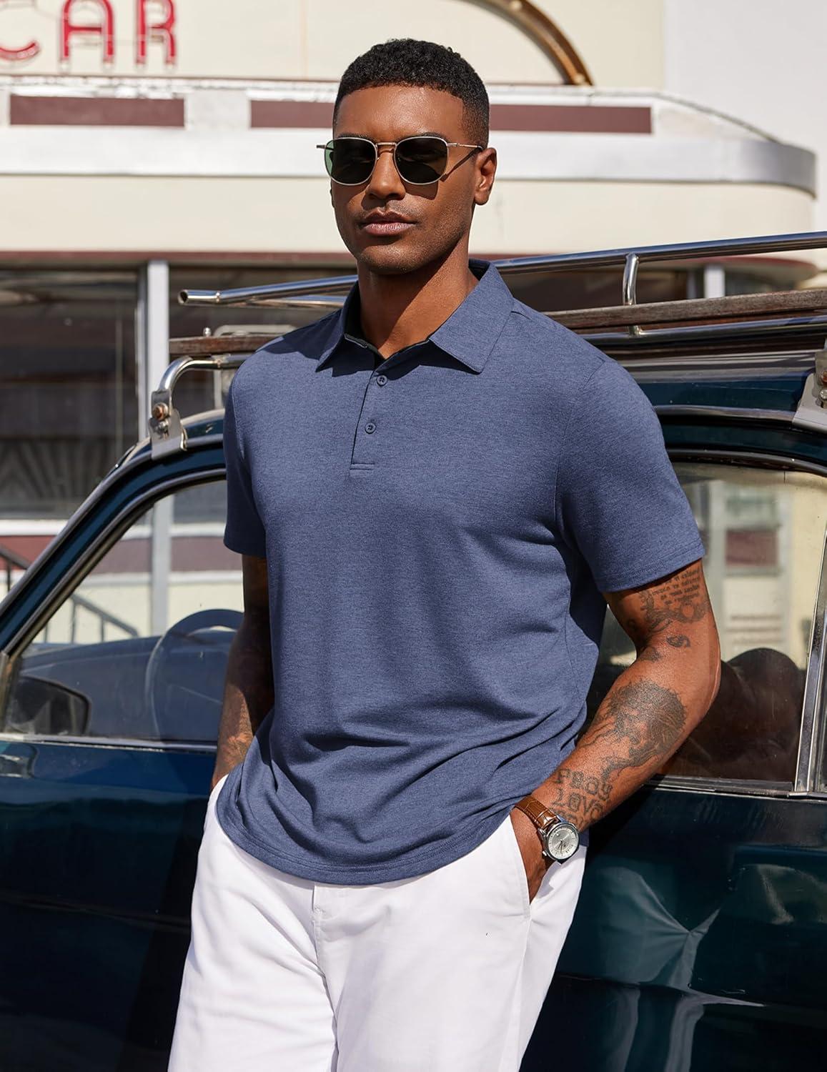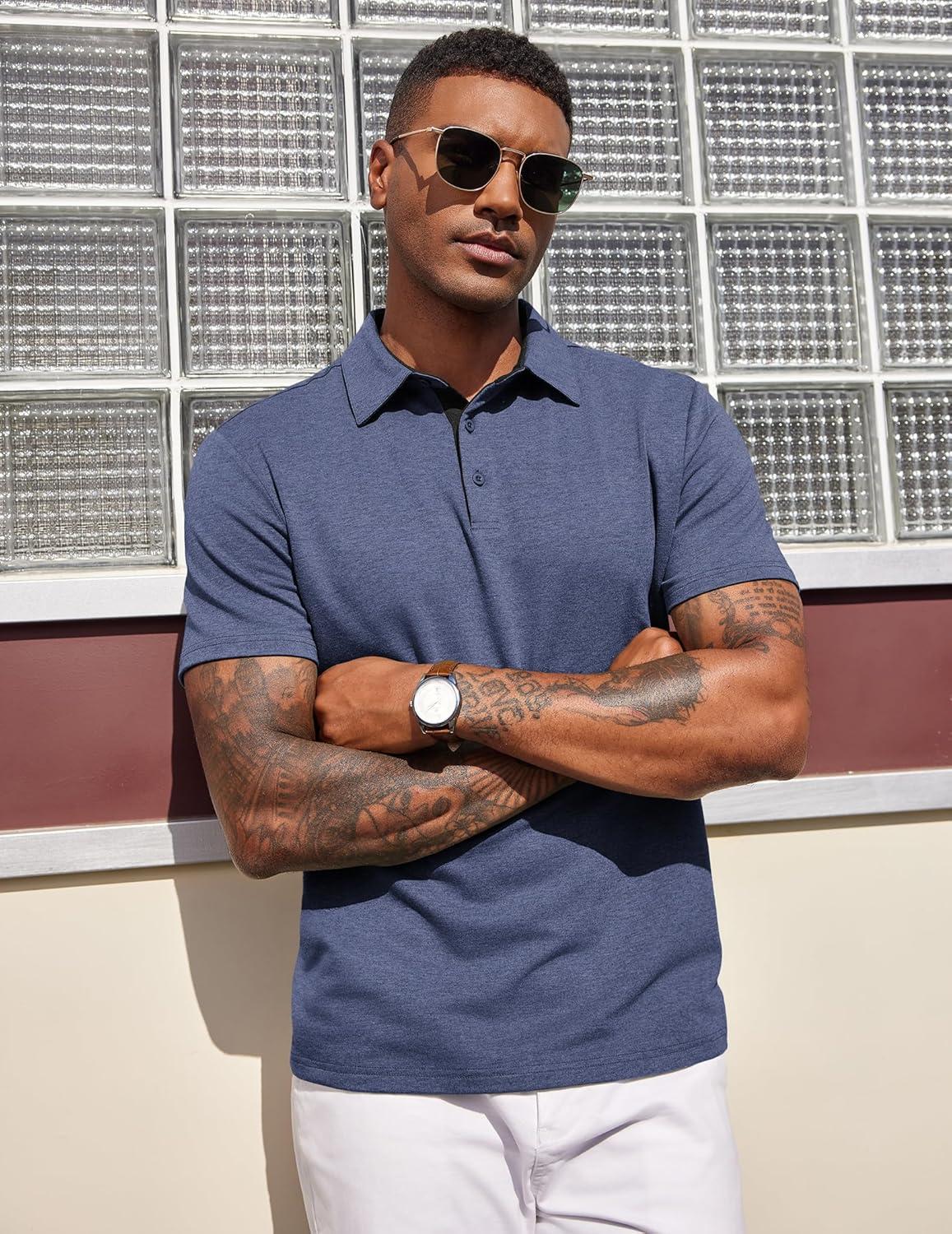 COOFANDY Mens Polo Shirts Short Sleeve Casual Summer Polo Tee Classic Collared Golf Stylish Tops(Navy Blue-new)