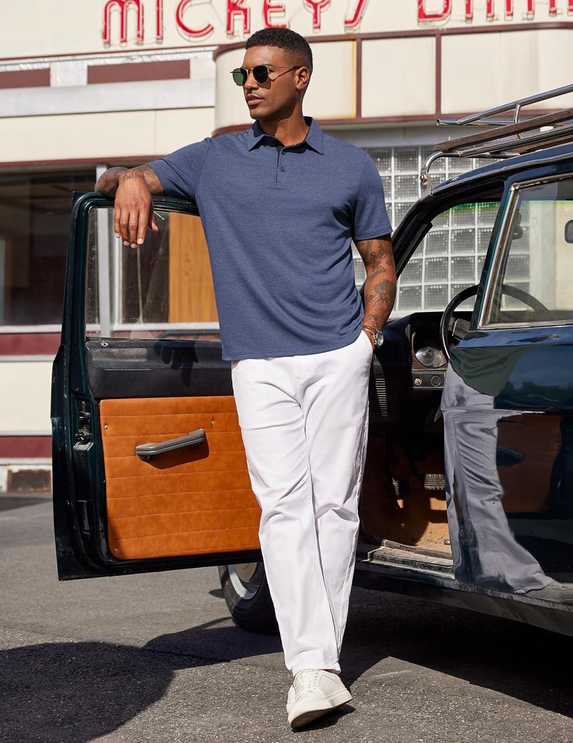 COOFANDY Mens Polo Shirts Short Sleeve Casual Summer Polo Tee Classic Collared Golf Stylish Tops(White)