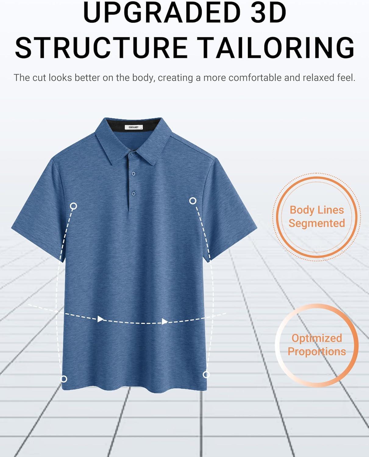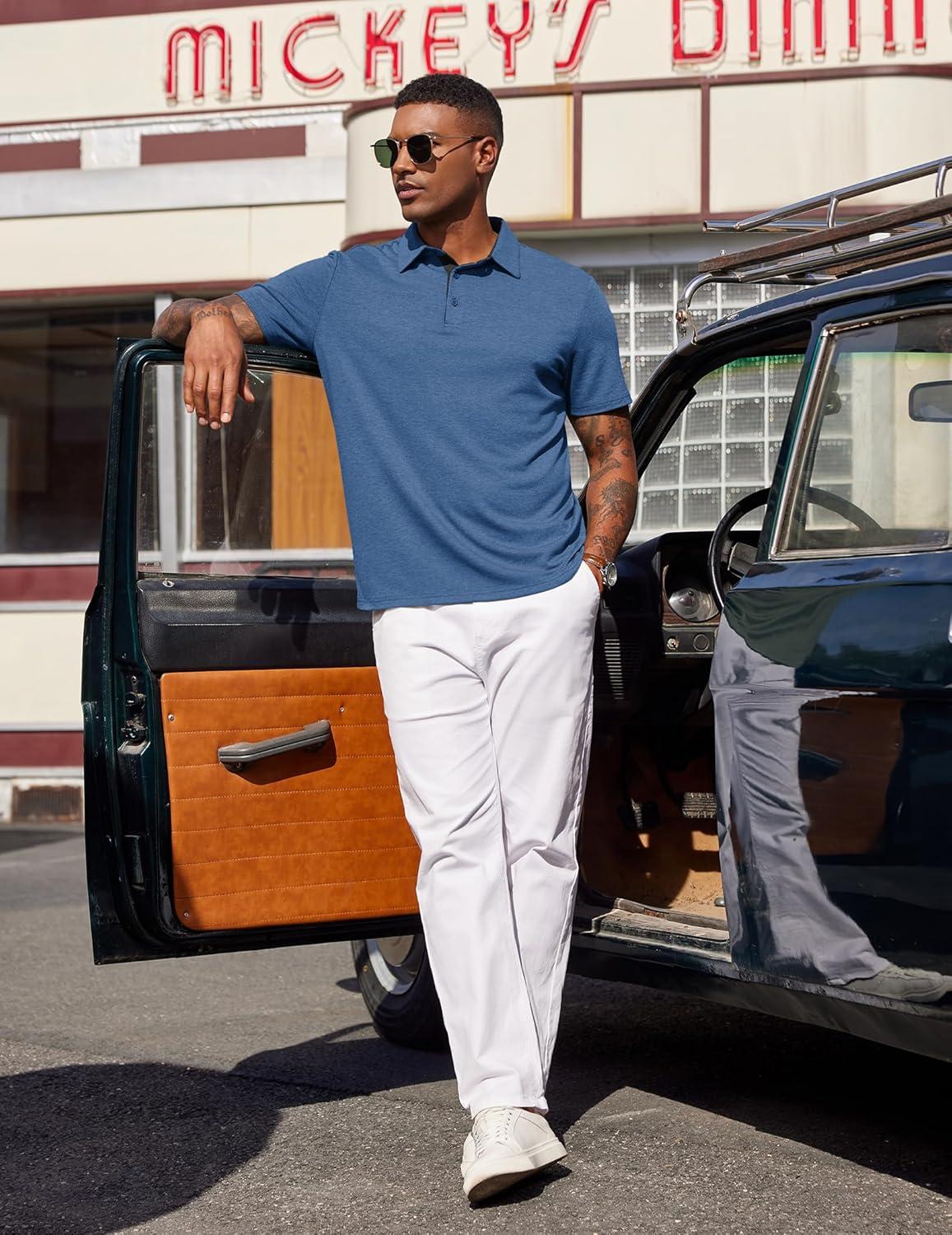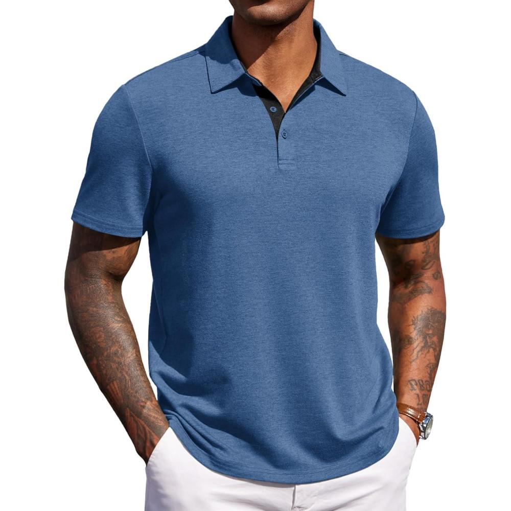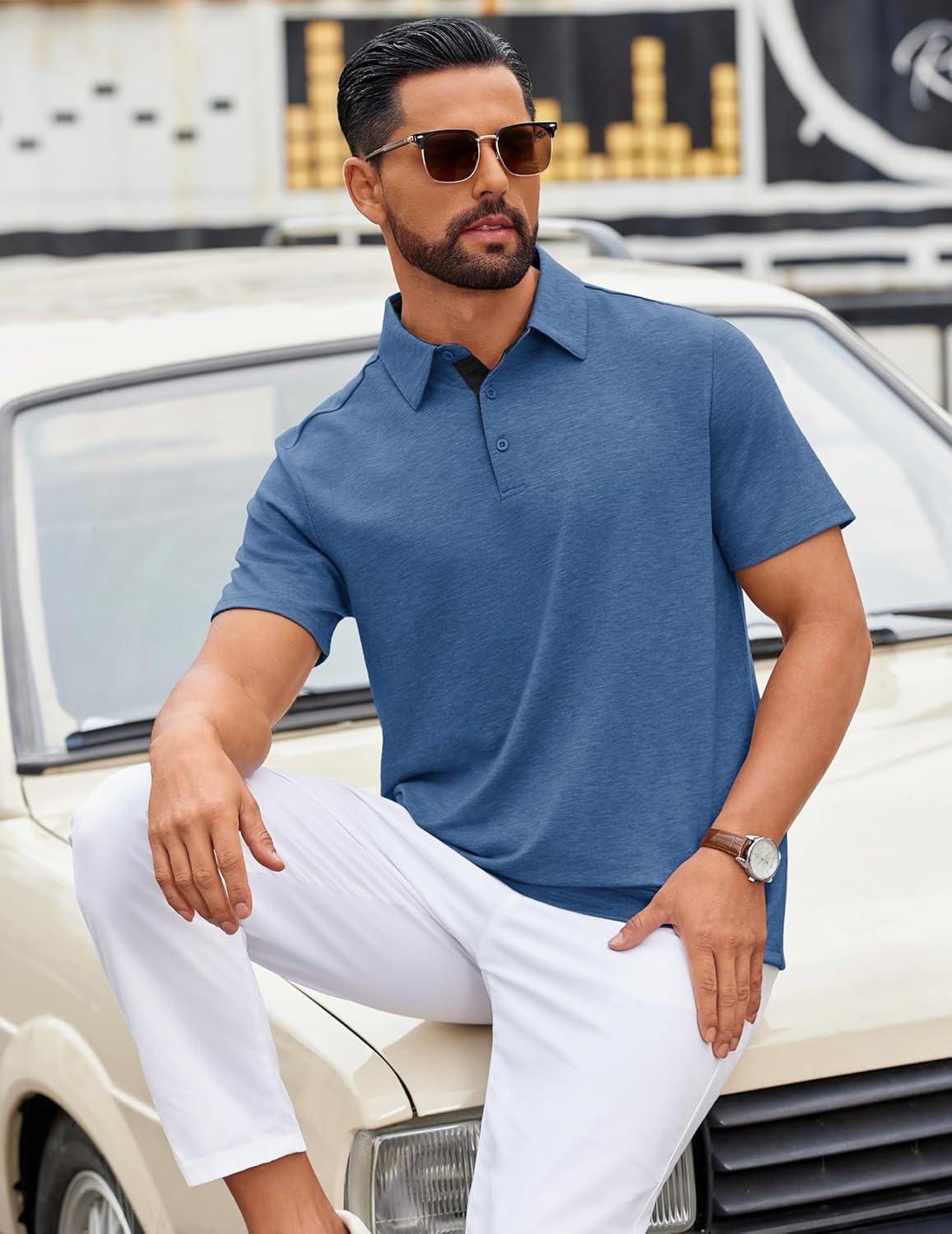 COOFANDY Mens Polo Shirts Short Sleeve Casual Summer Polo Tee Classic Collared Golf Stylish Tops(Blue)