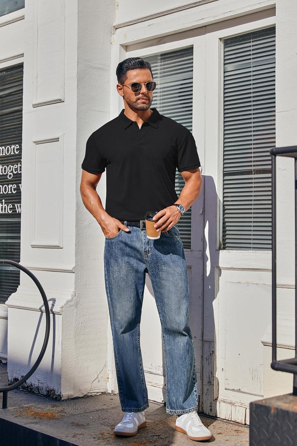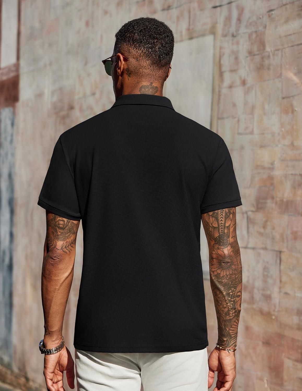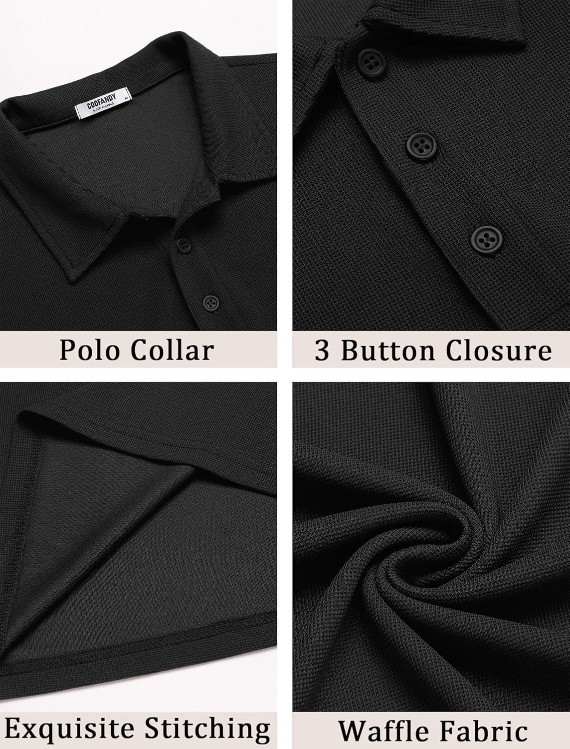 COOFANDY Men's Polo Shirts Short Sleeve Classic Fit Golf Shirts Casual Solid Waffle Collared T Shirt(Black)