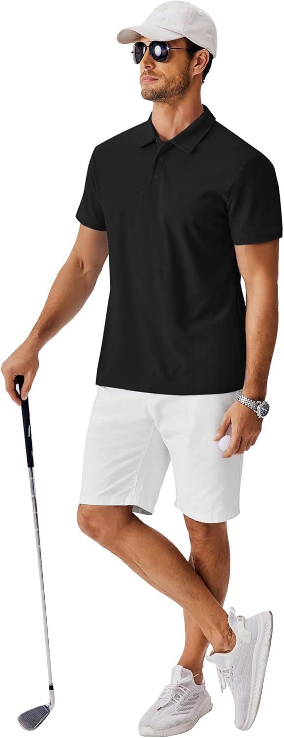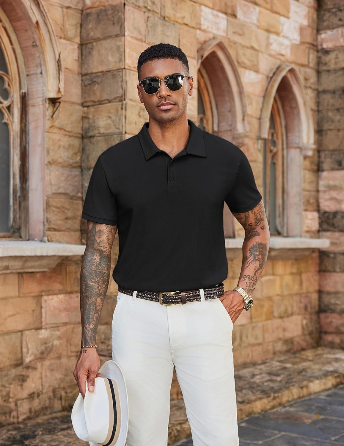 COOFANDY Men’s Polo Shirts Short Sleeve Classic Fit Golf Shirts Casual Solid Waffle Collared T Shirt(Black)