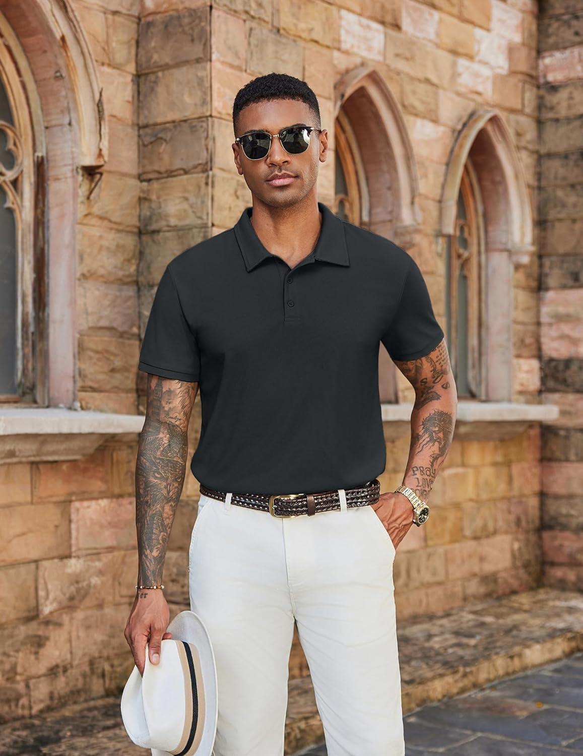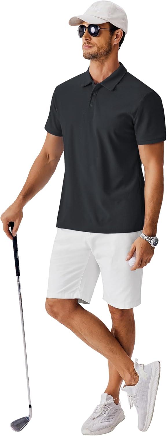 COOFANDY Men’s Polo Shirts Short Sleeve Classic Fit Golf Shirts Casual Solid Waffle Collared T Shirt(Dark Gray)