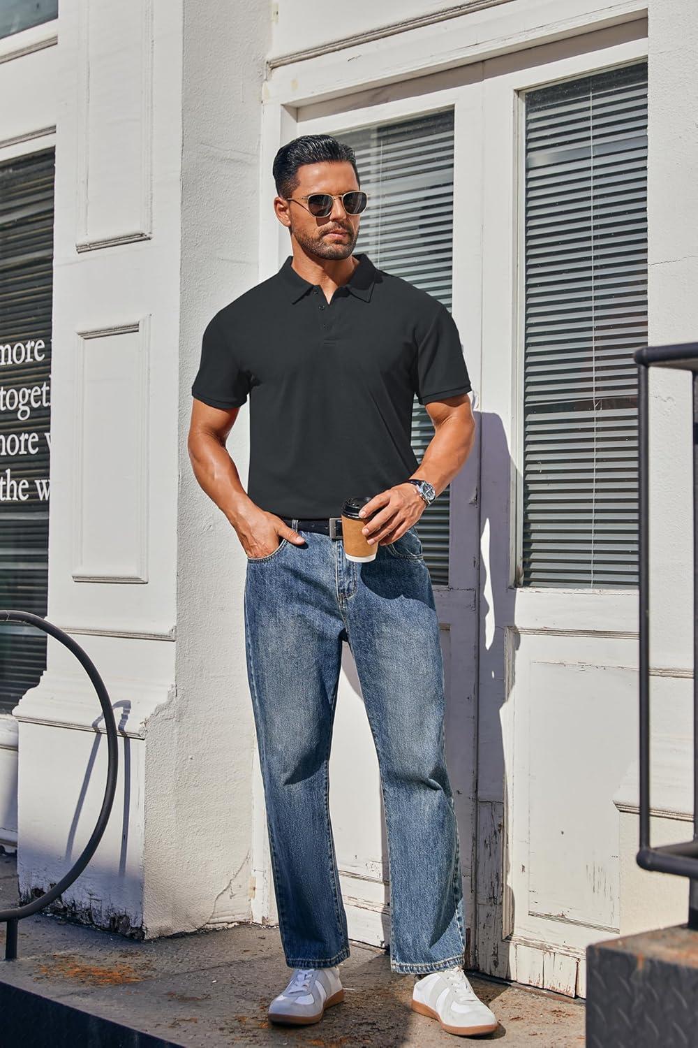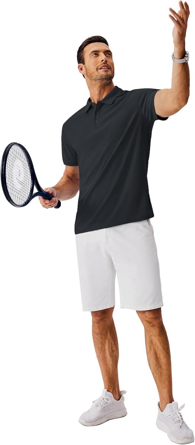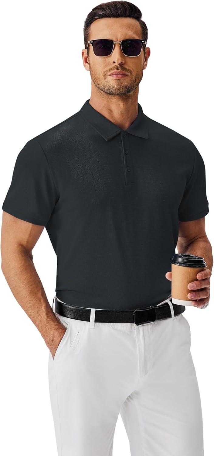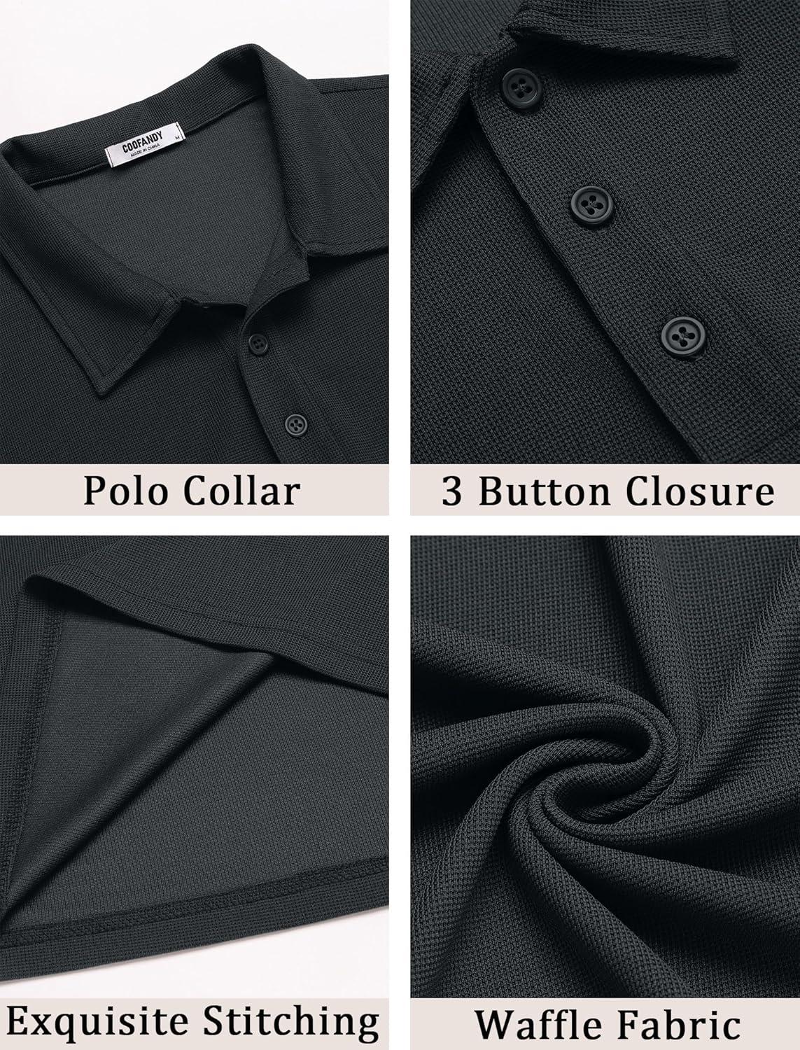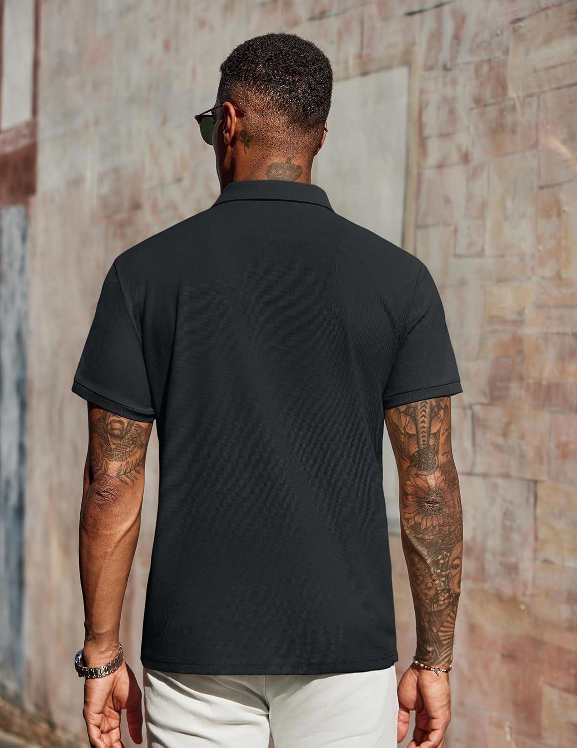 COOFANDY Men's Polo Shirts Short Sleeve Classic Fit Golf Shirts Casual Solid Waffle Collared T Shirt(Dark Gray)