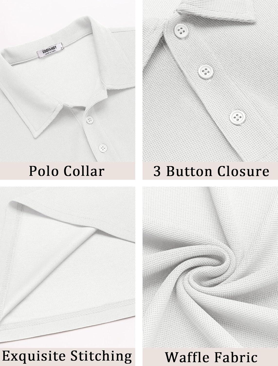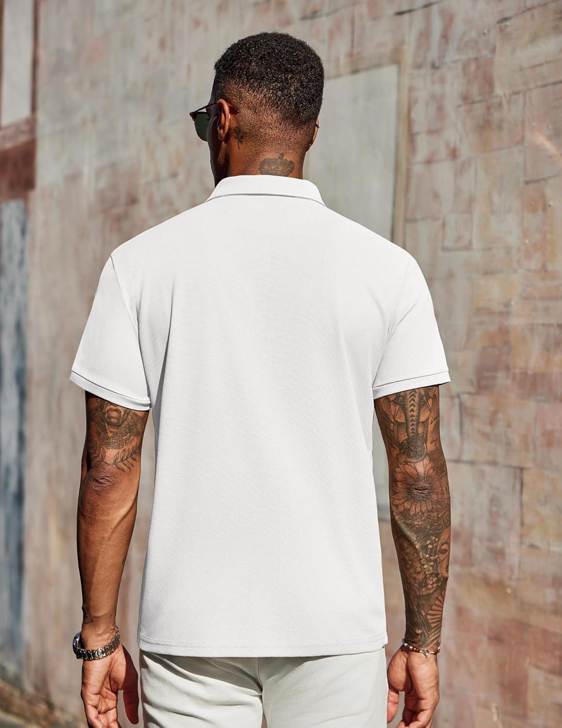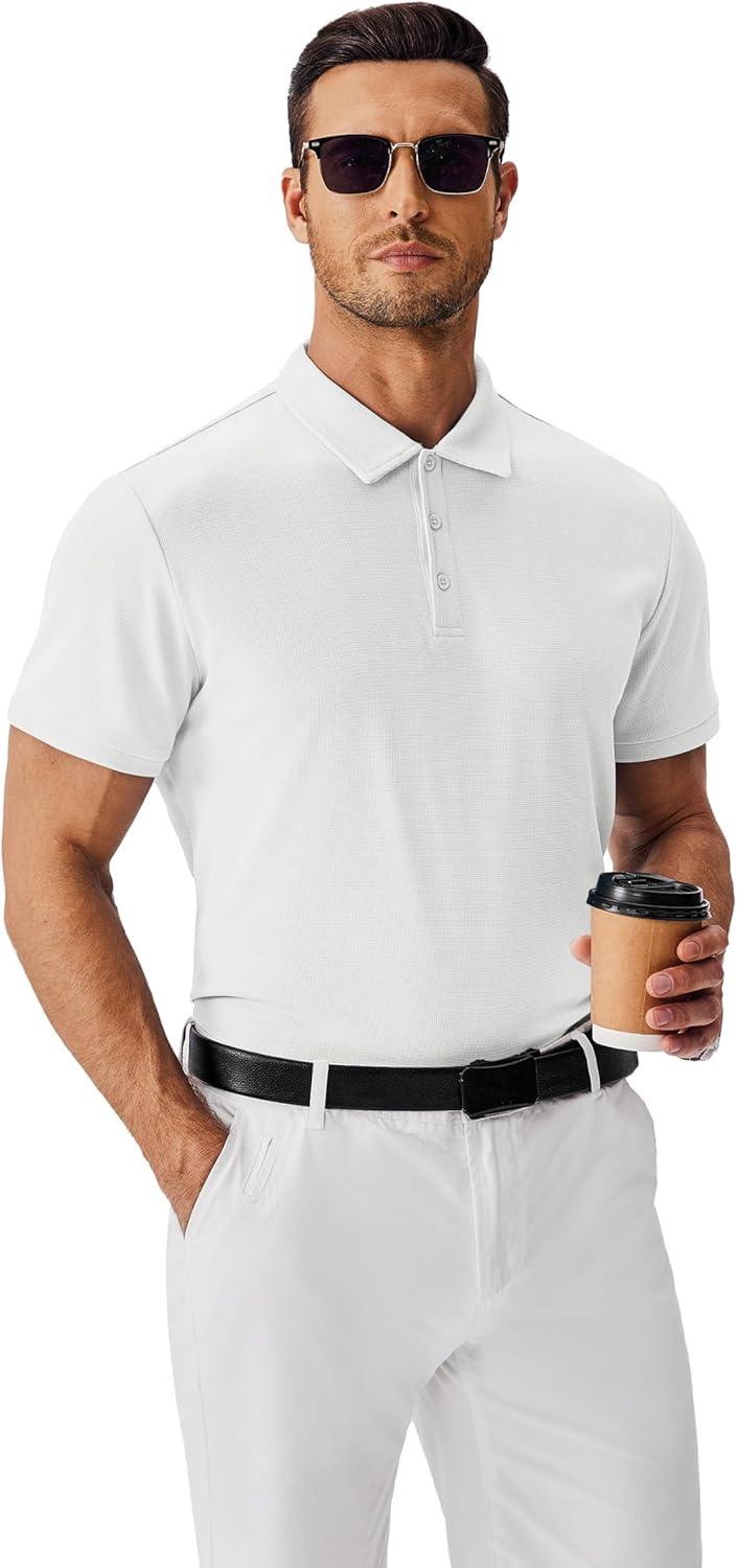 COOFANDY Men’s Polo Shirts Short Sleeve Classic Fit Golf Shirts Casual Solid Waffle Collared T Shirt(White)