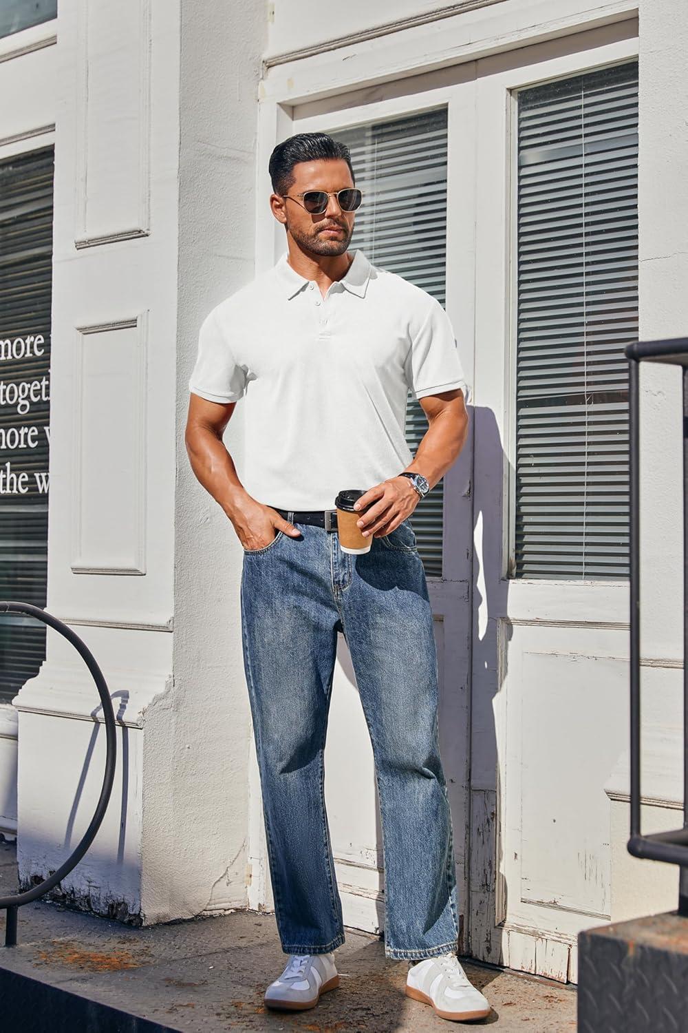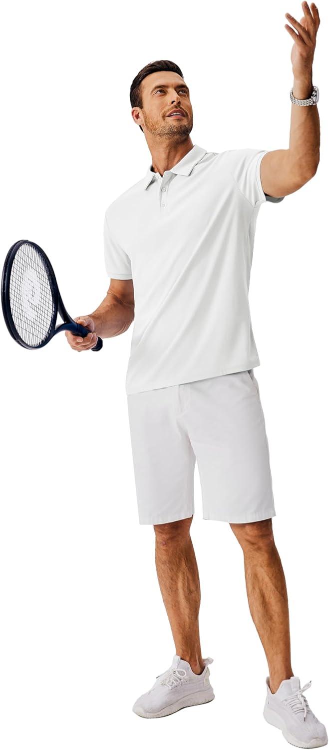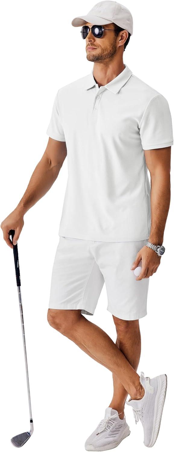 COOFANDY Men’s Polo Shirts Short Sleeve Classic Fit Golf Shirts Casual Solid Waffle Collared T Shirt(White)