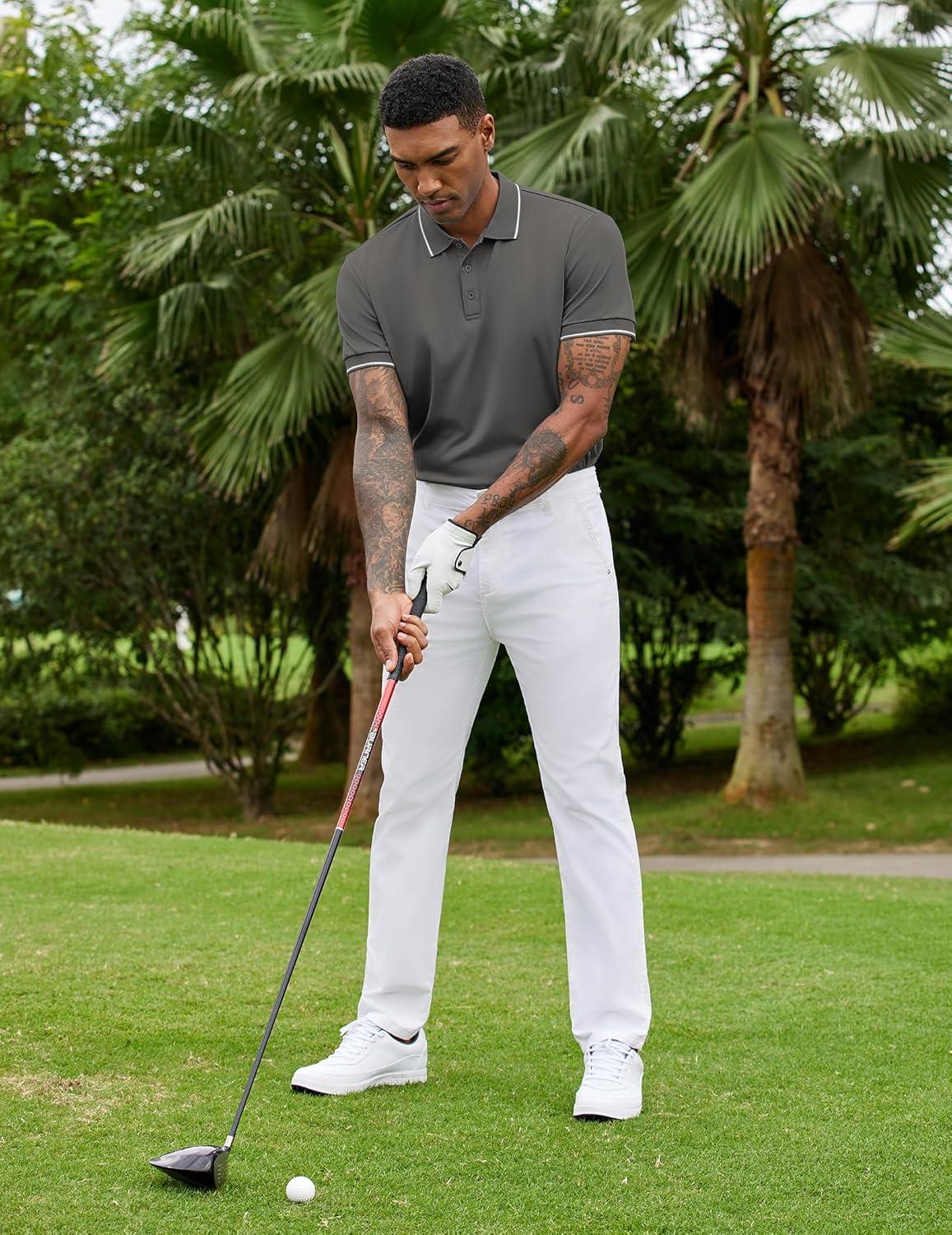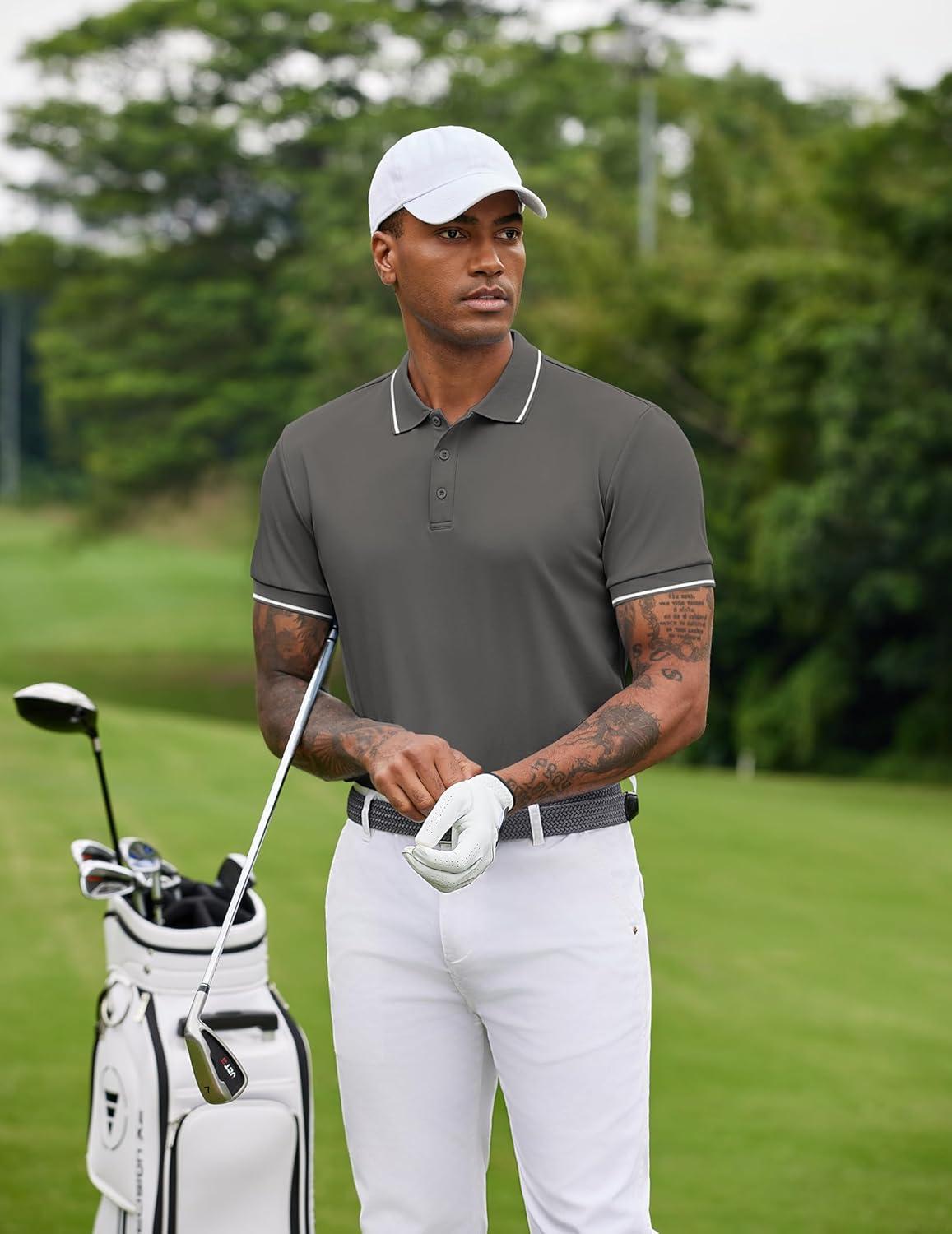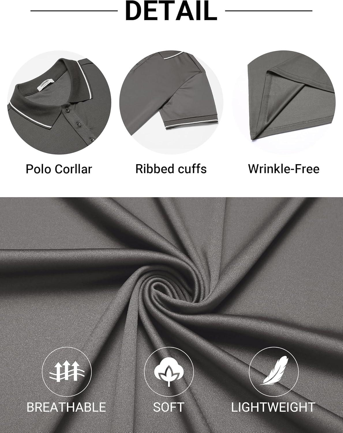COOFANDY Mens Polo Shirts Short Sleeve Golf Polo Button Pullover Casual Contrast Color Basic T Shirt Ribbed Collar(Deep Gray)
