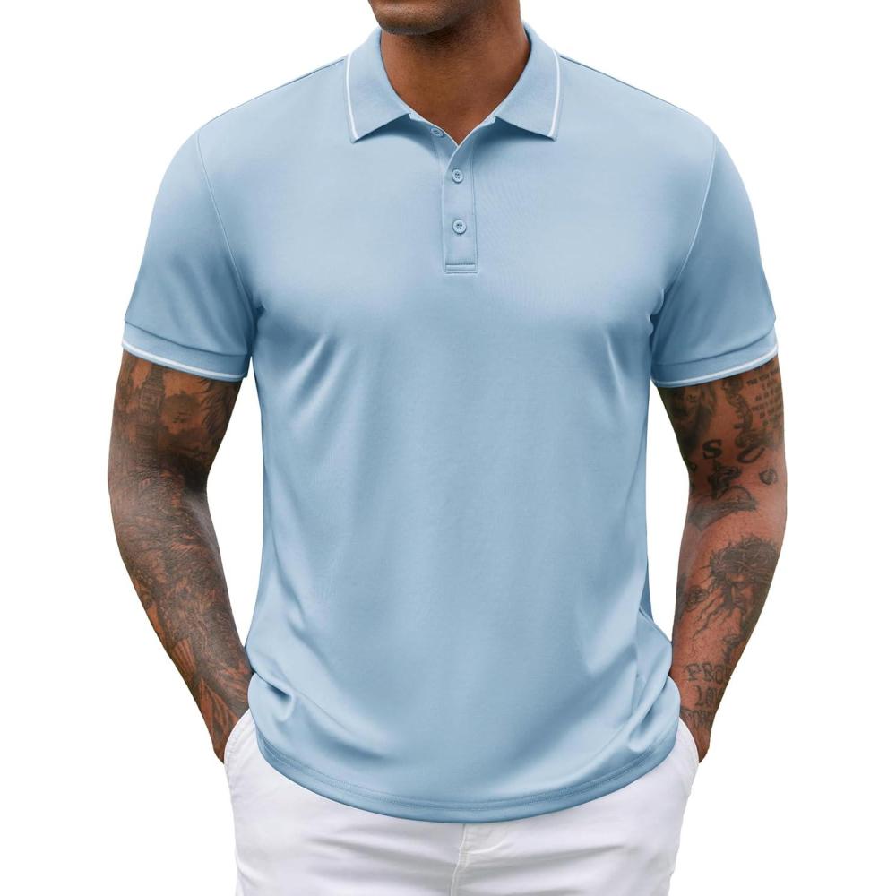 COOFANDY Mens Polo Shirts Short Sleeve Golf Polo Button Pullover Casual Contrast Color Basic T Shirt Ribbed Collar(Light Blue)
