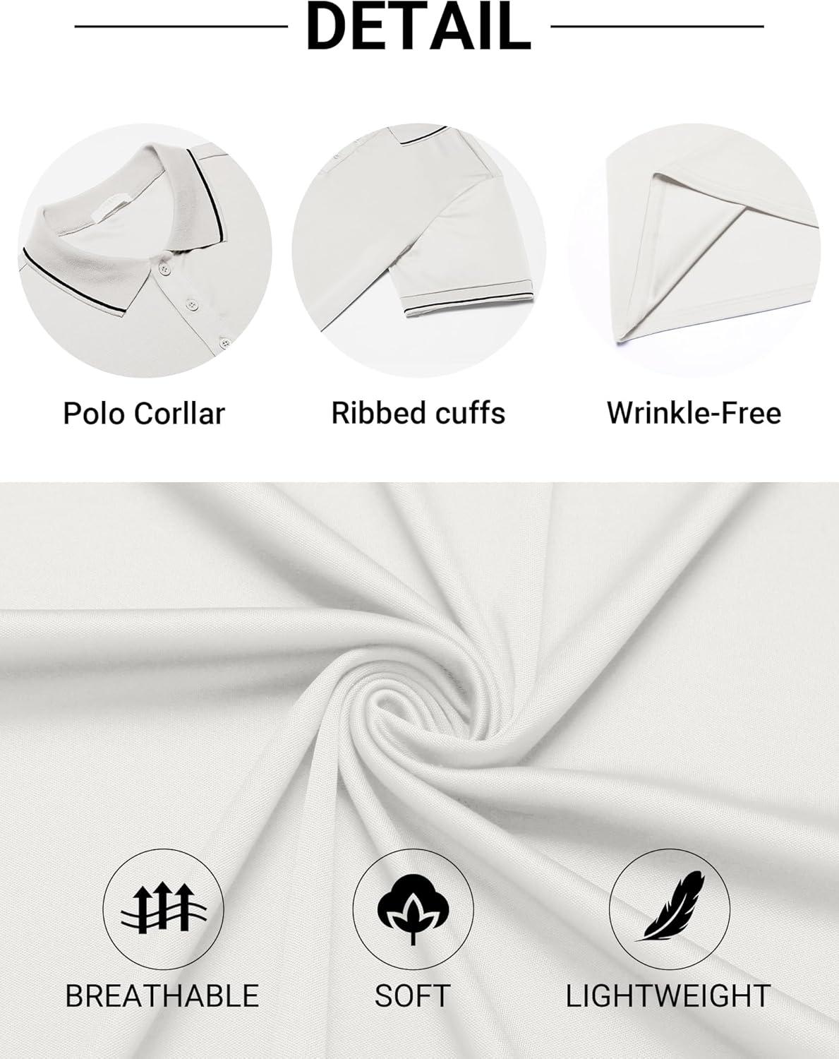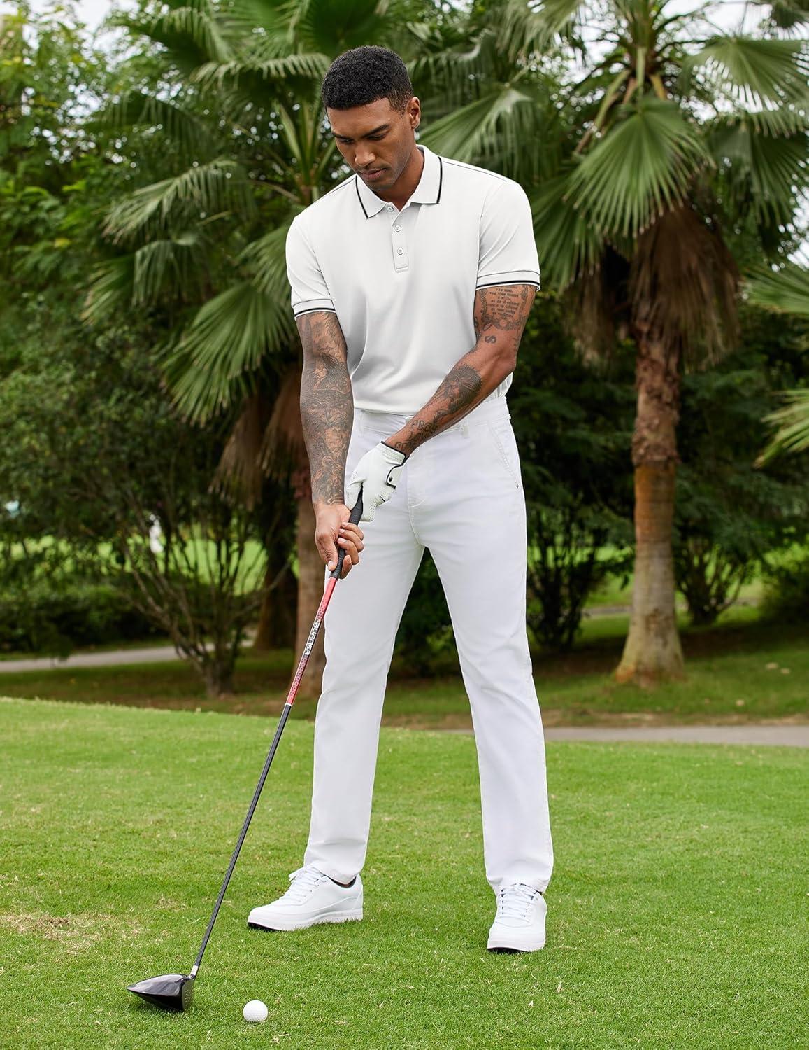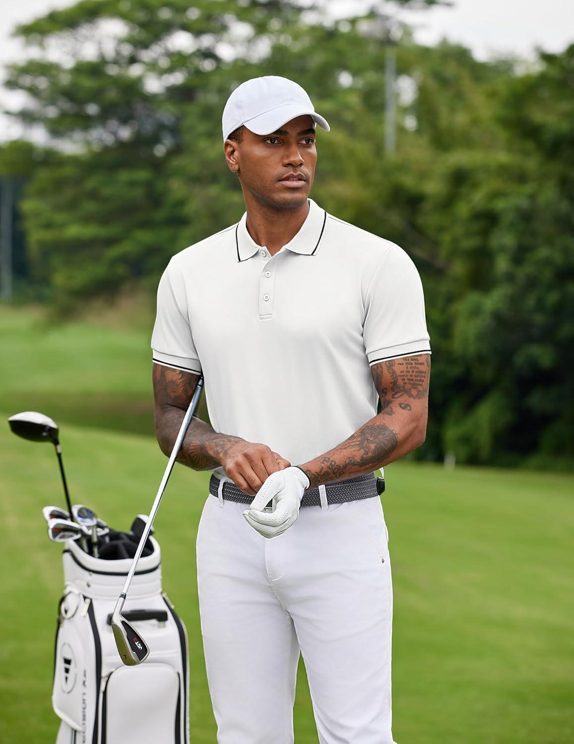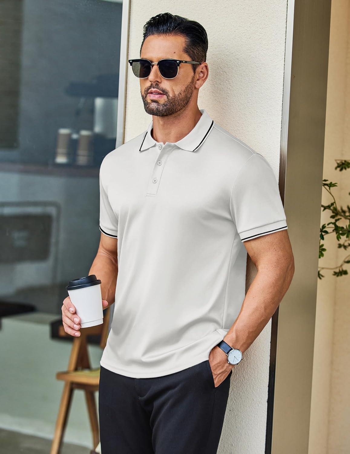 COOFANDY Mens Polo Shirts Short Sleeve Golf Polo Button Pullover Casual Contrast Color Basic T Shirt Ribbed Collar(White)