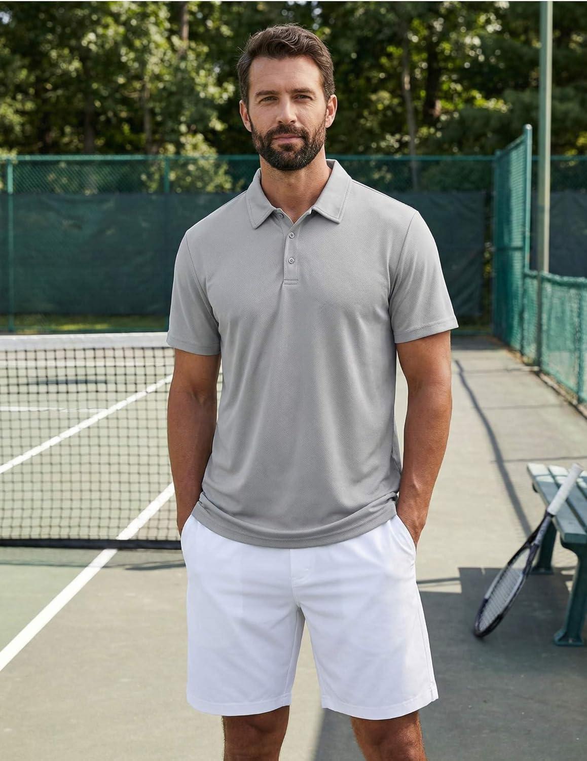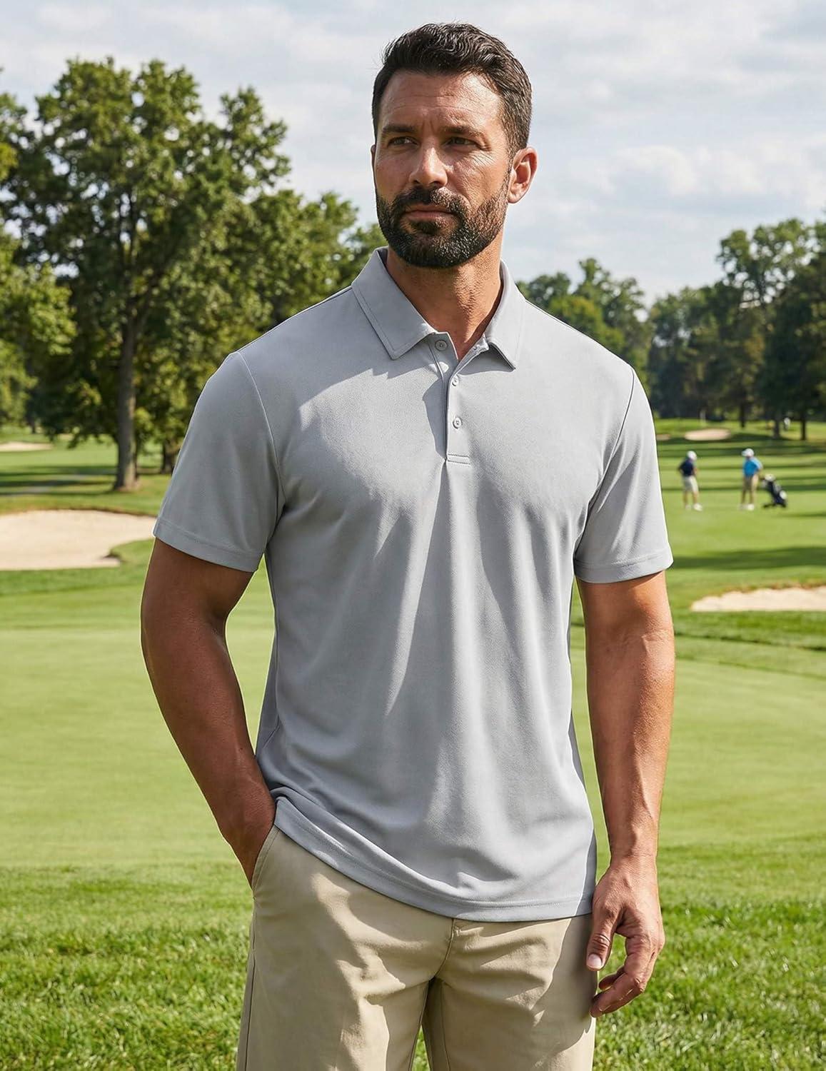 COOFANDY Mens Polo Shirts Short Sleeve Golf Shirt UPF50+ Moisture Wicking Quick Dry Collared Performance Polo Shirts for Men(Grey)