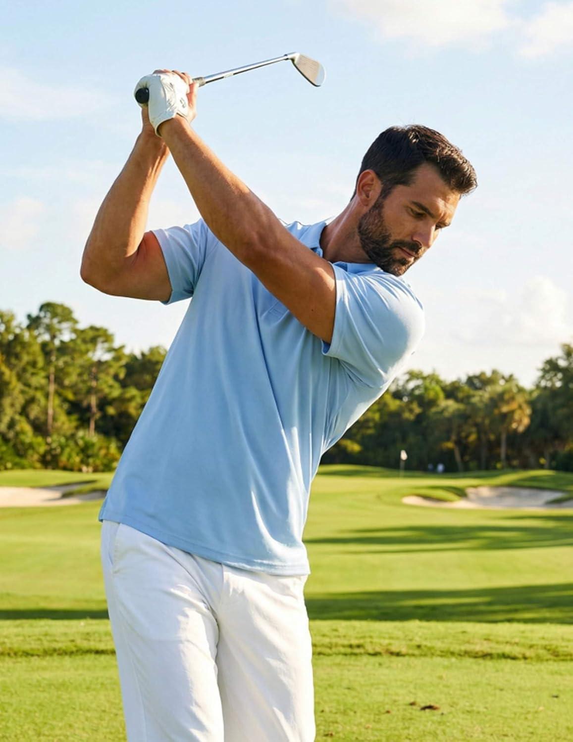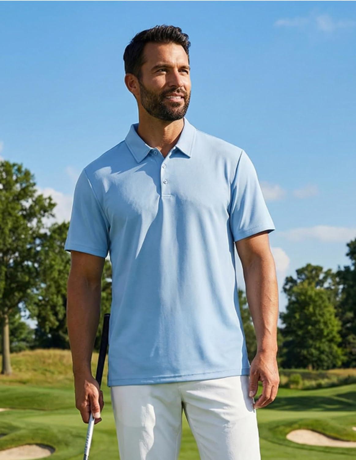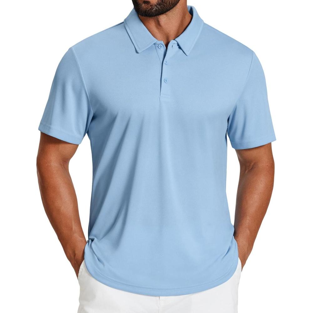 COOFANDY Mens Polo Shirts Short Sleeve Golf Shirt UPF50+ Moisture Wicking Quick Dry Collared Performance Polo Shirts for Men(Light Blue)