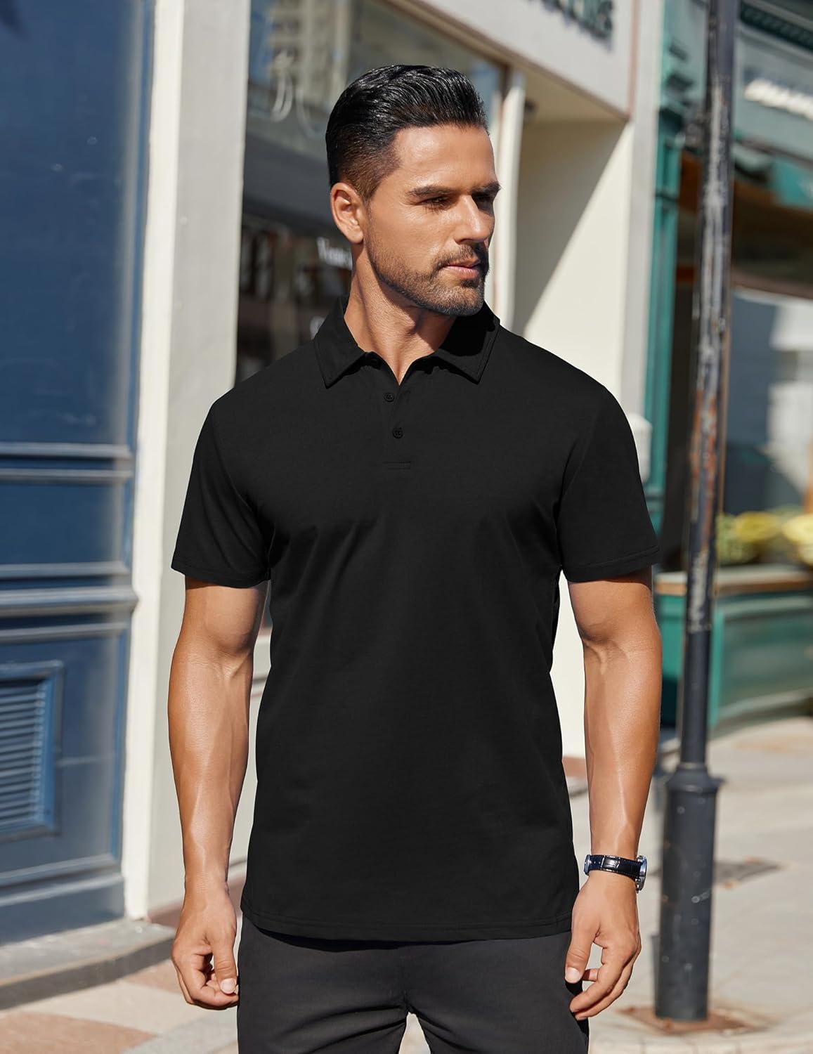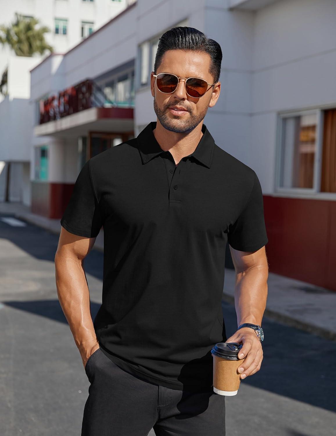 COOFANDY Men's Polo Shirts Short Sleeve Moisture Wicking Golf Shirt Fashion Casual Collared T-Shirt(Black)