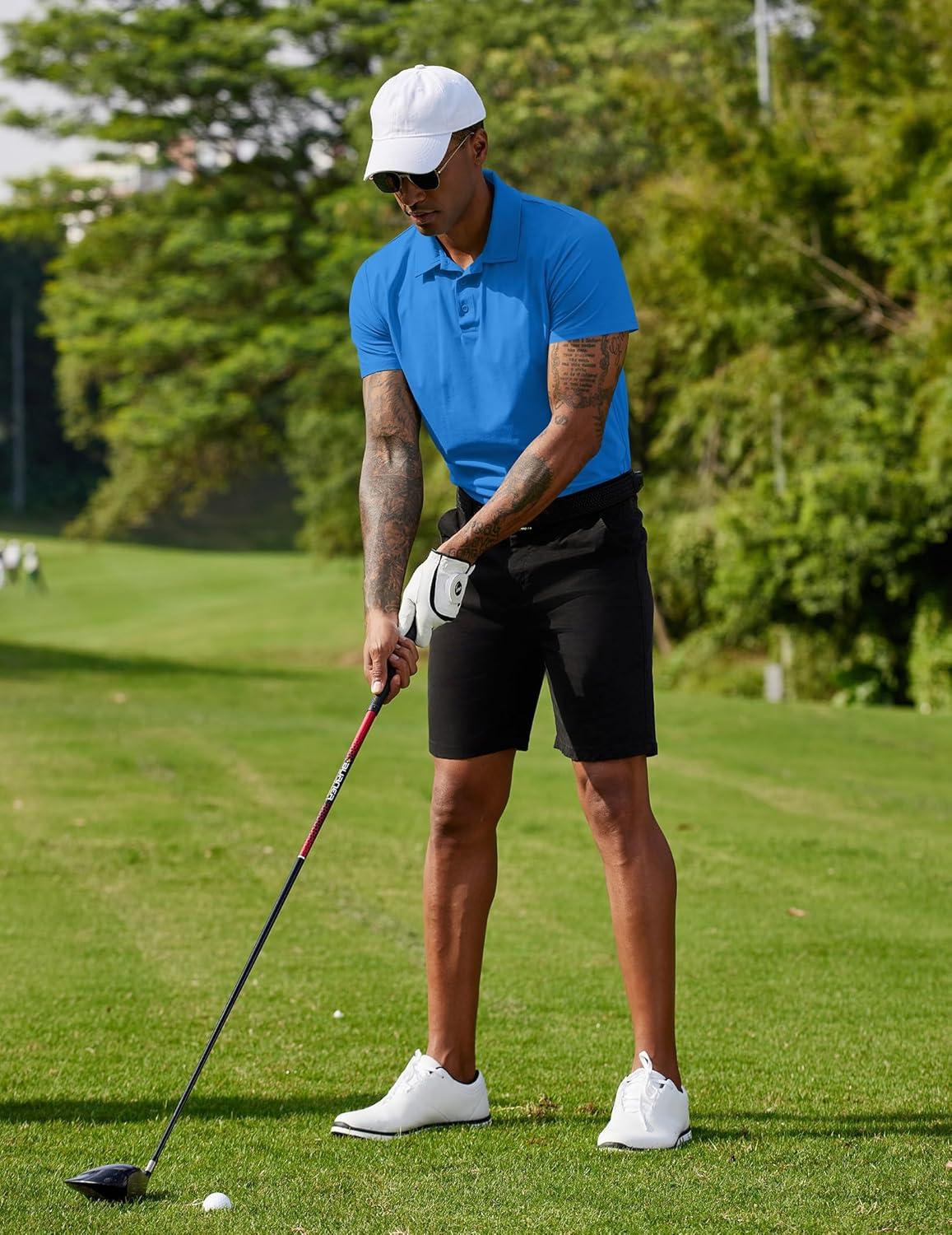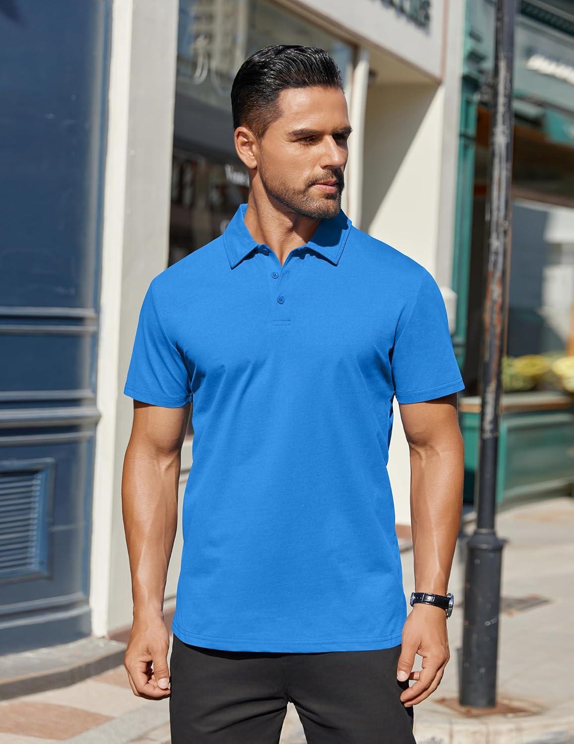 COOFANDY Men's Polo Shirts Short Sleeve Moisture Wicking Golf Shirt Fashion Casual Collared T-Shirt(Blue)