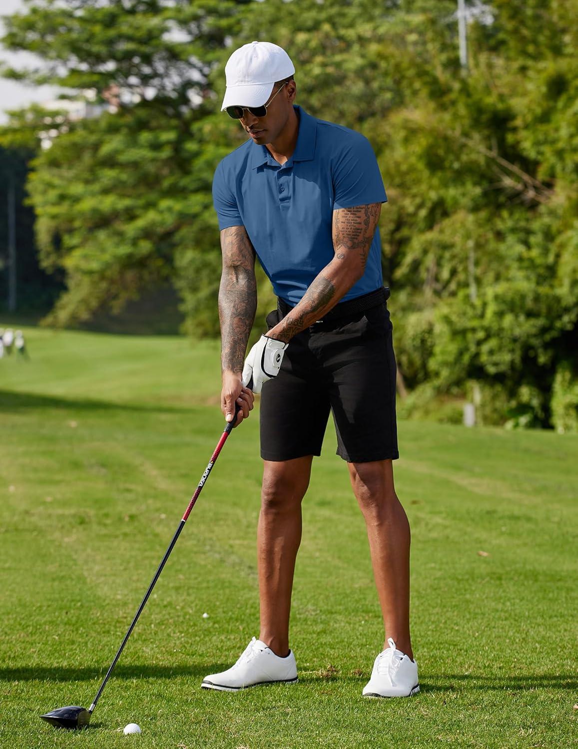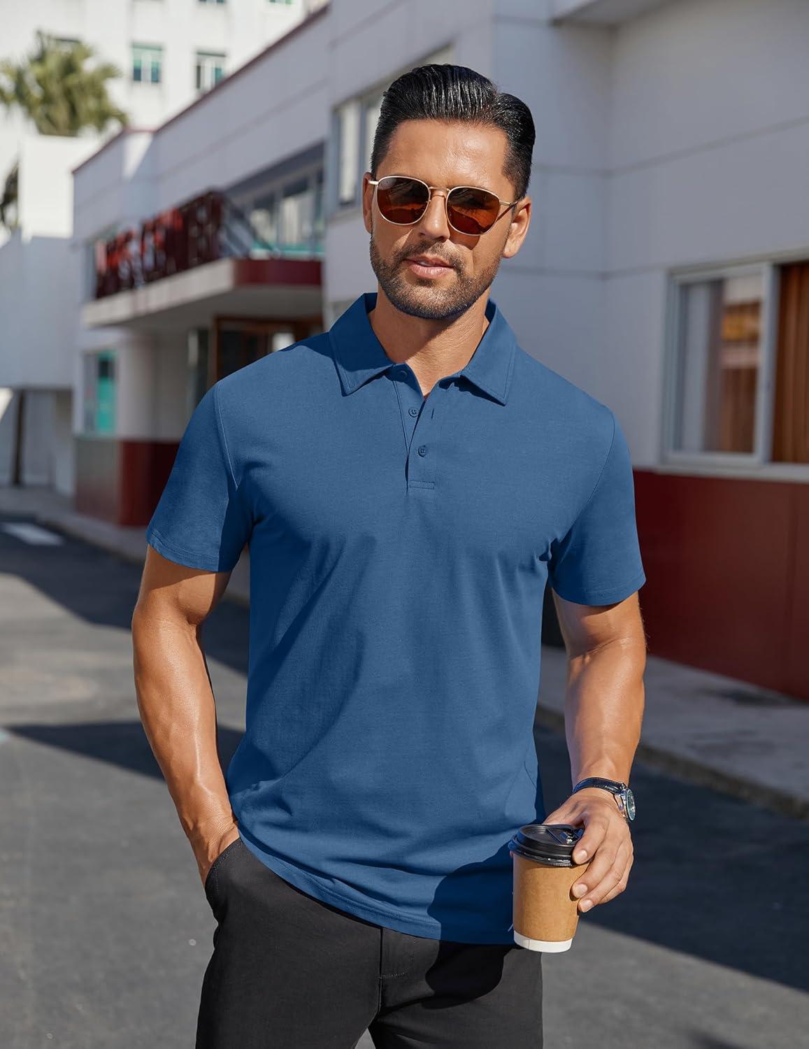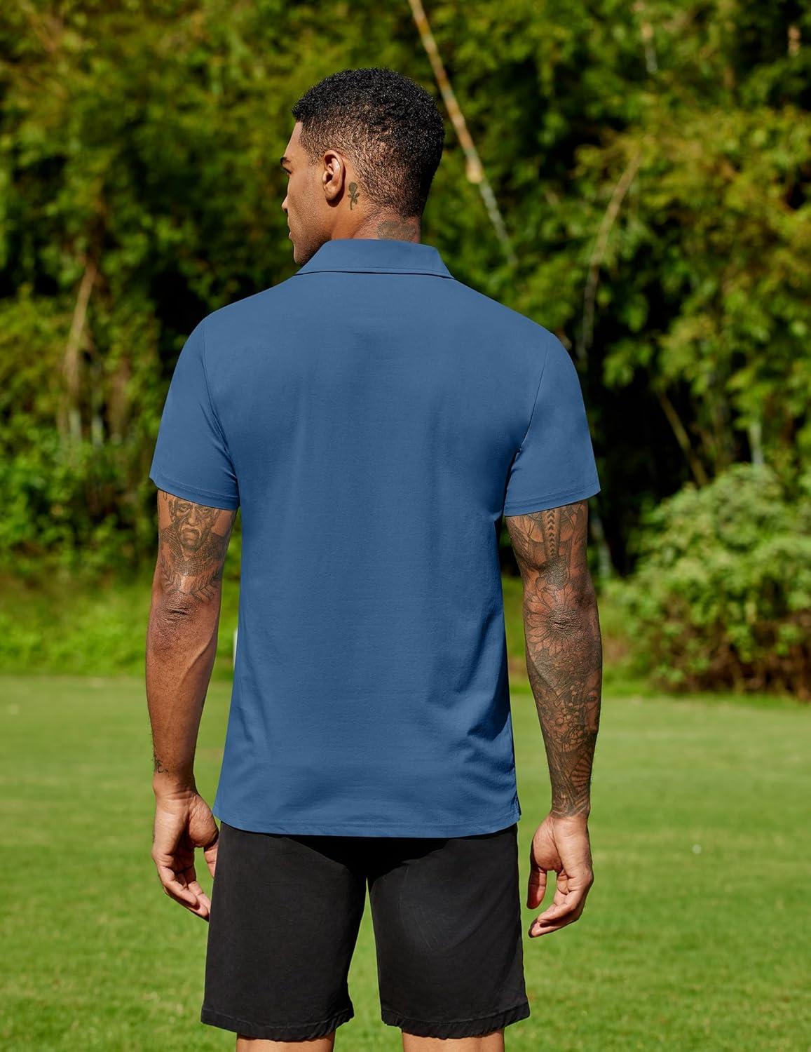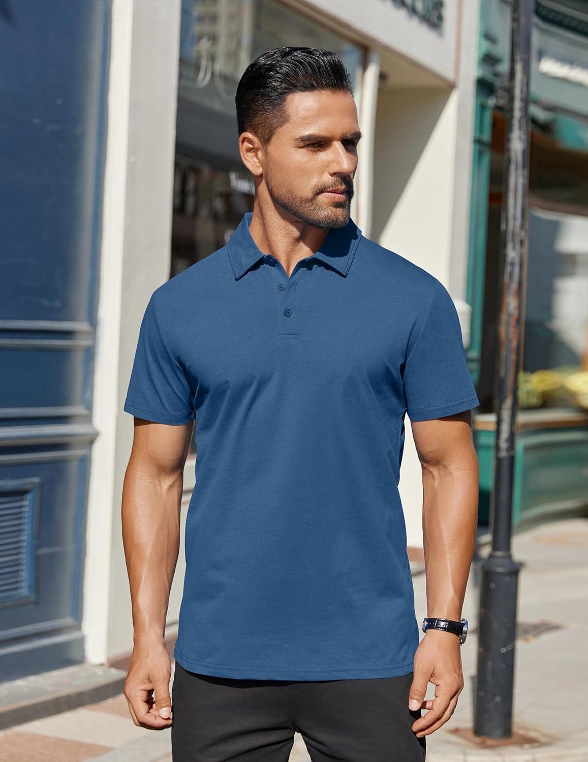 COOFANDY Men's Polo Shirts Short Sleeve Moisture Wicking Golf Shirt Fashion Casual Collared T-Shirt(Denim Blue)