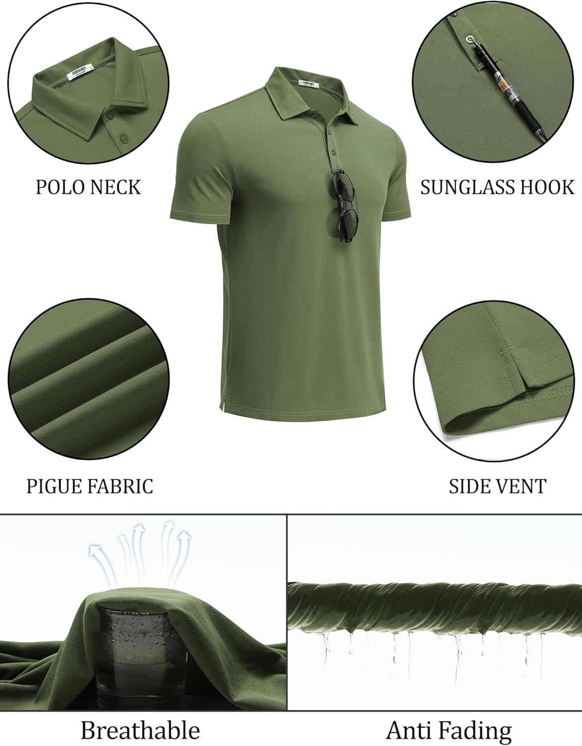 COOFANDY Men’s Polo Shirts Short Sleeve Pique Jersey Golf Shirt Casual Summer Collared T-Shirts(Army Green)