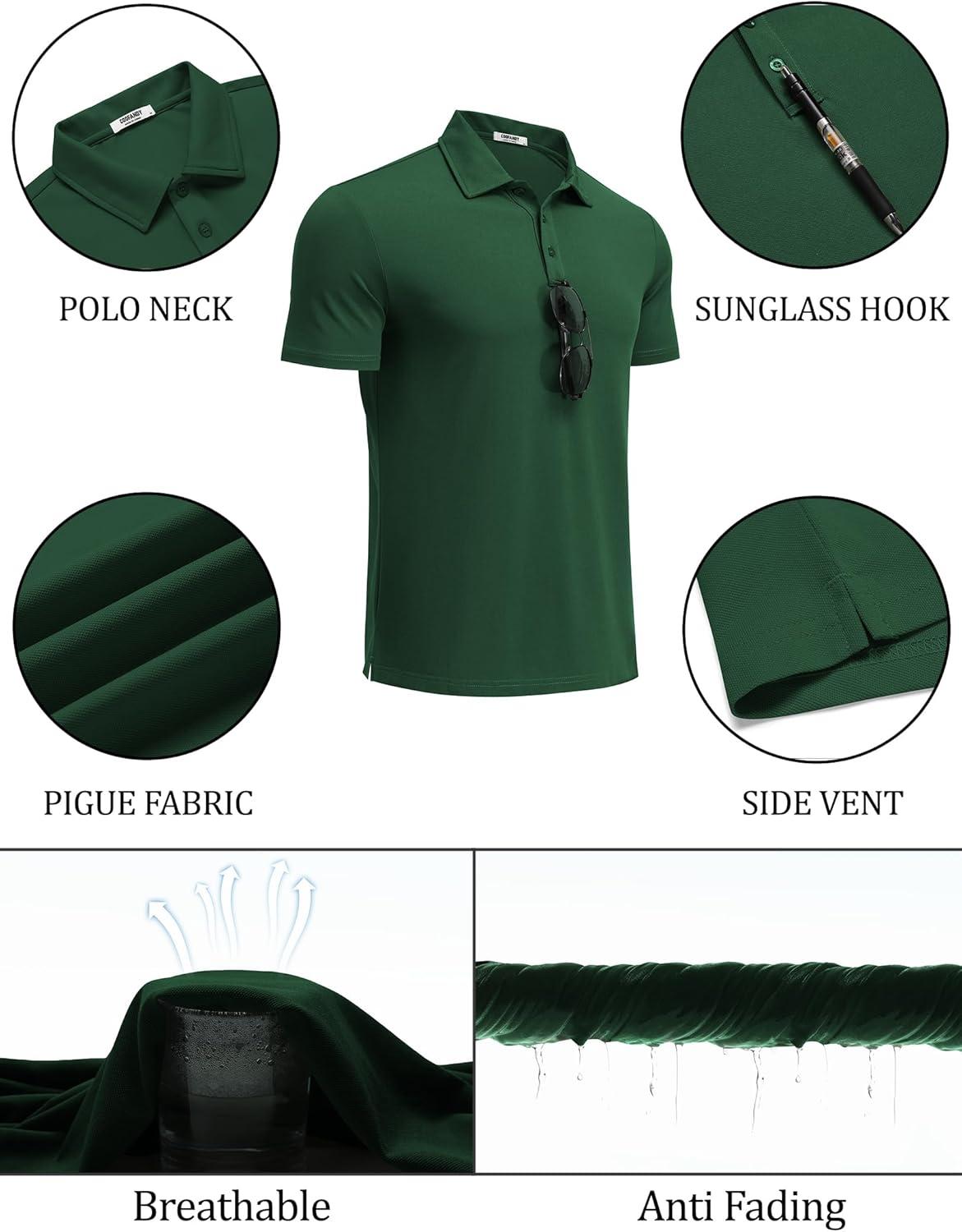 COOFANDY Men's Polo Shirts Short Sleeve Pique Jersey Golf Shirt Casual Summer Collared T-Shirts(Dark Green)