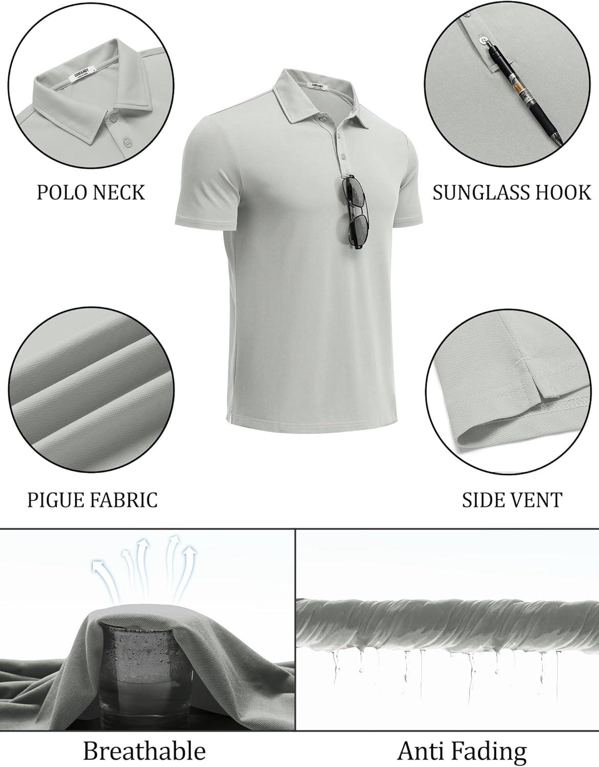 COOFANDY Men's Polo Shirts Short Sleeve Pique Jersey Golf Shirt Casual Summer Collared T-Shirts(Light Grey)